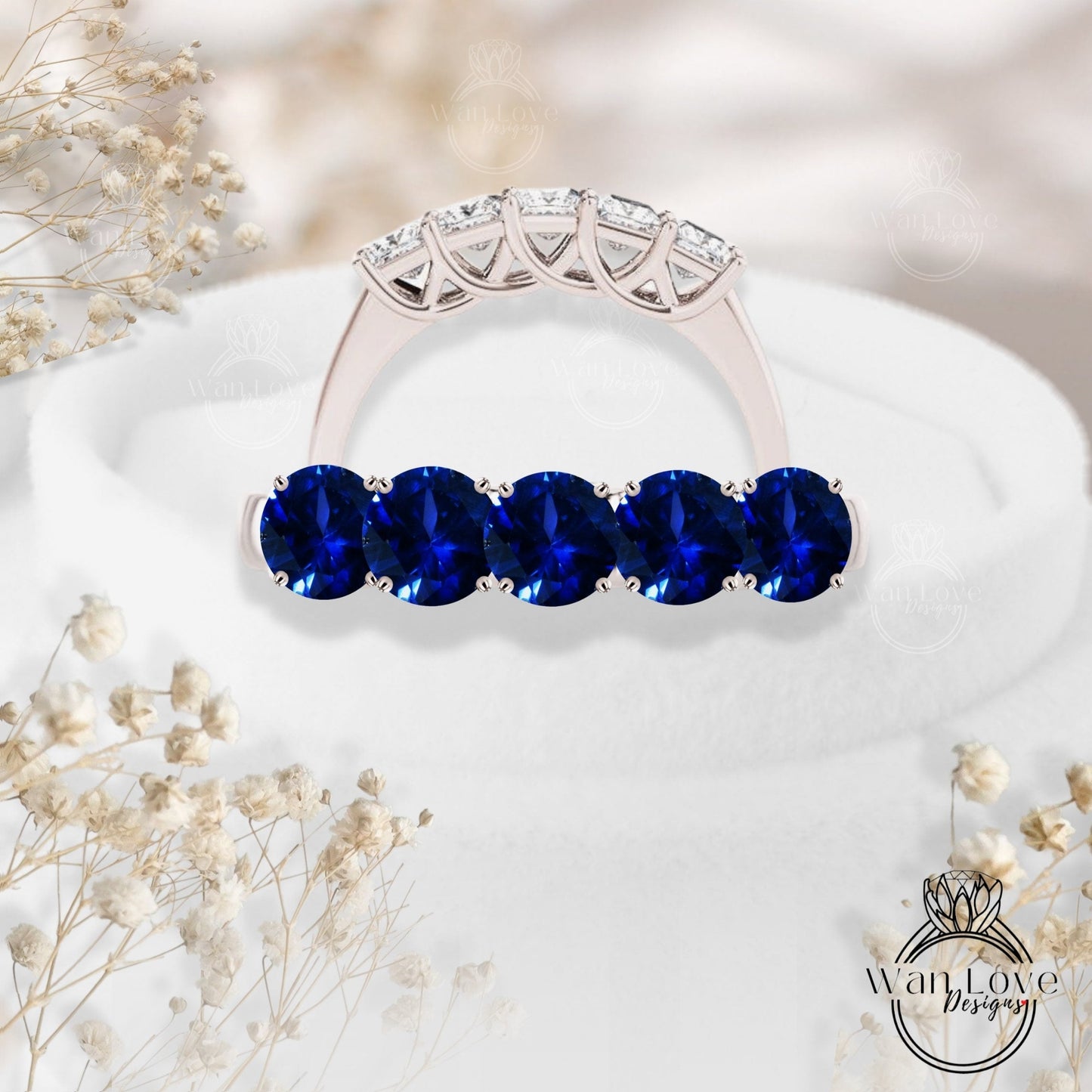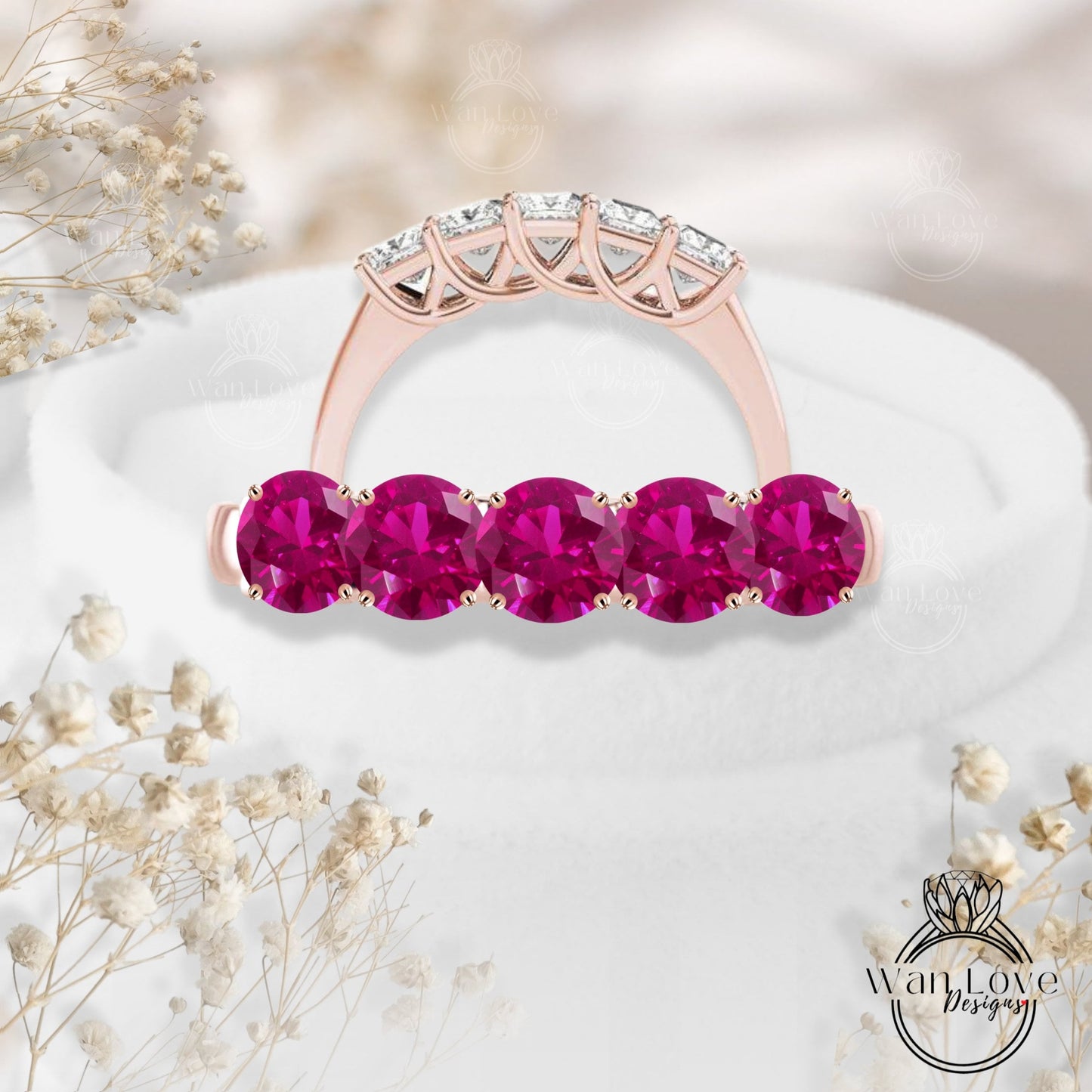 1 Carat Diamond Ring 5 gem stone Wedding Ring Dainty Trellis Stacking Matching Wedding Band Unique Bridal band Anniversary Birthstone Ring