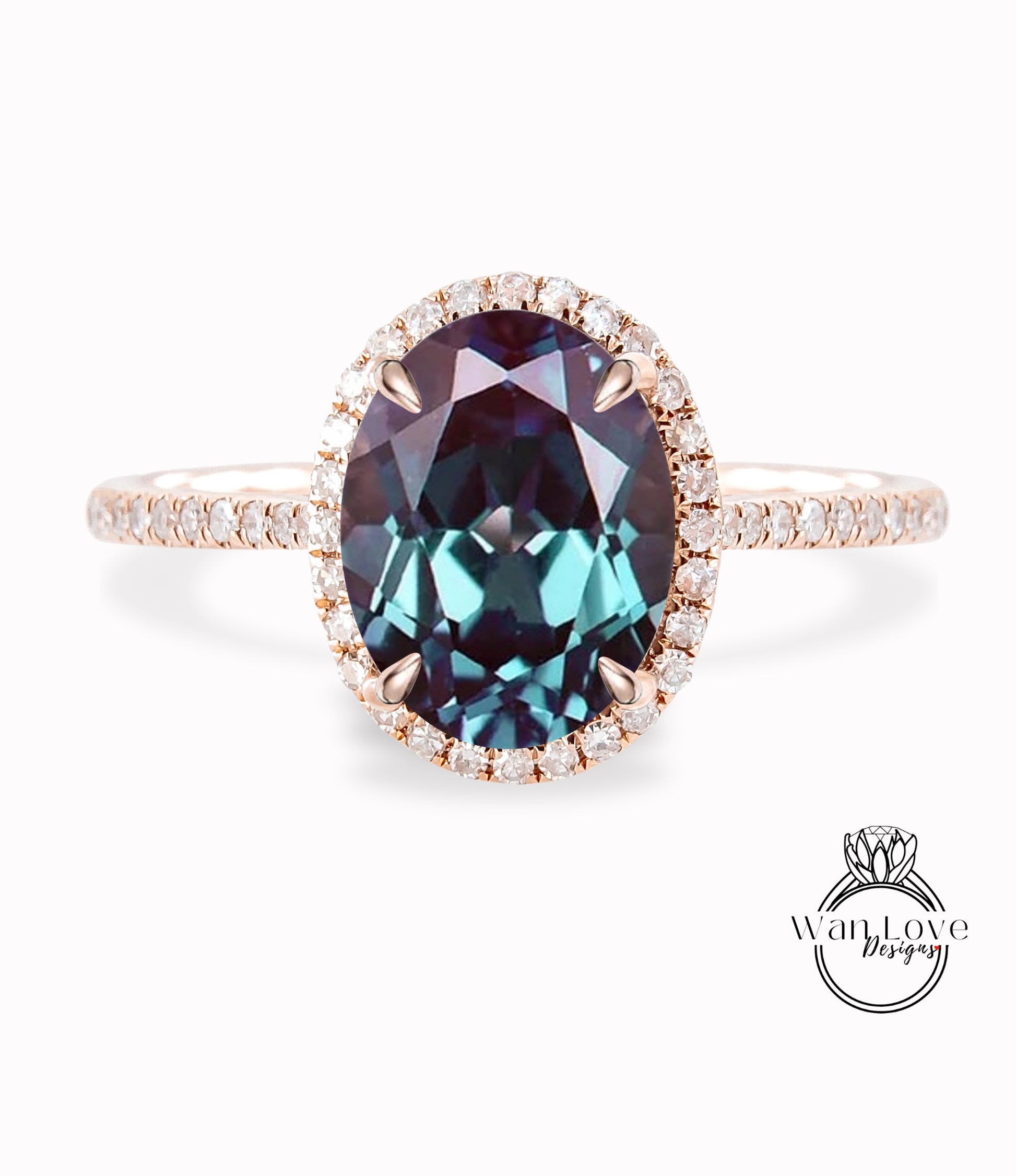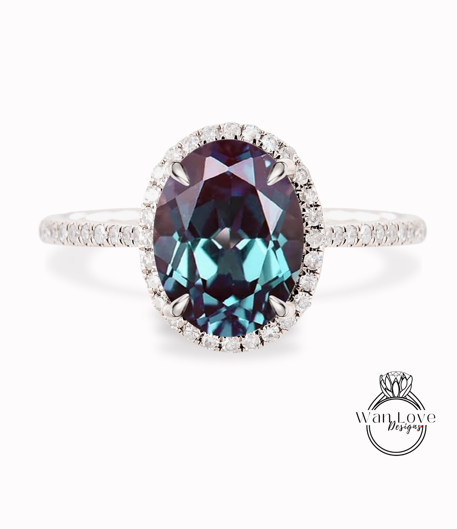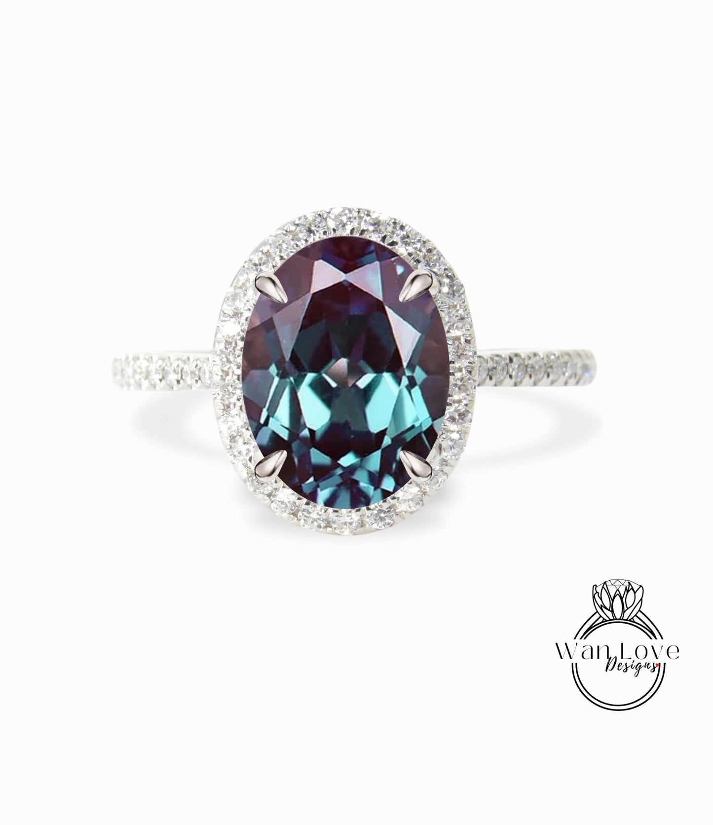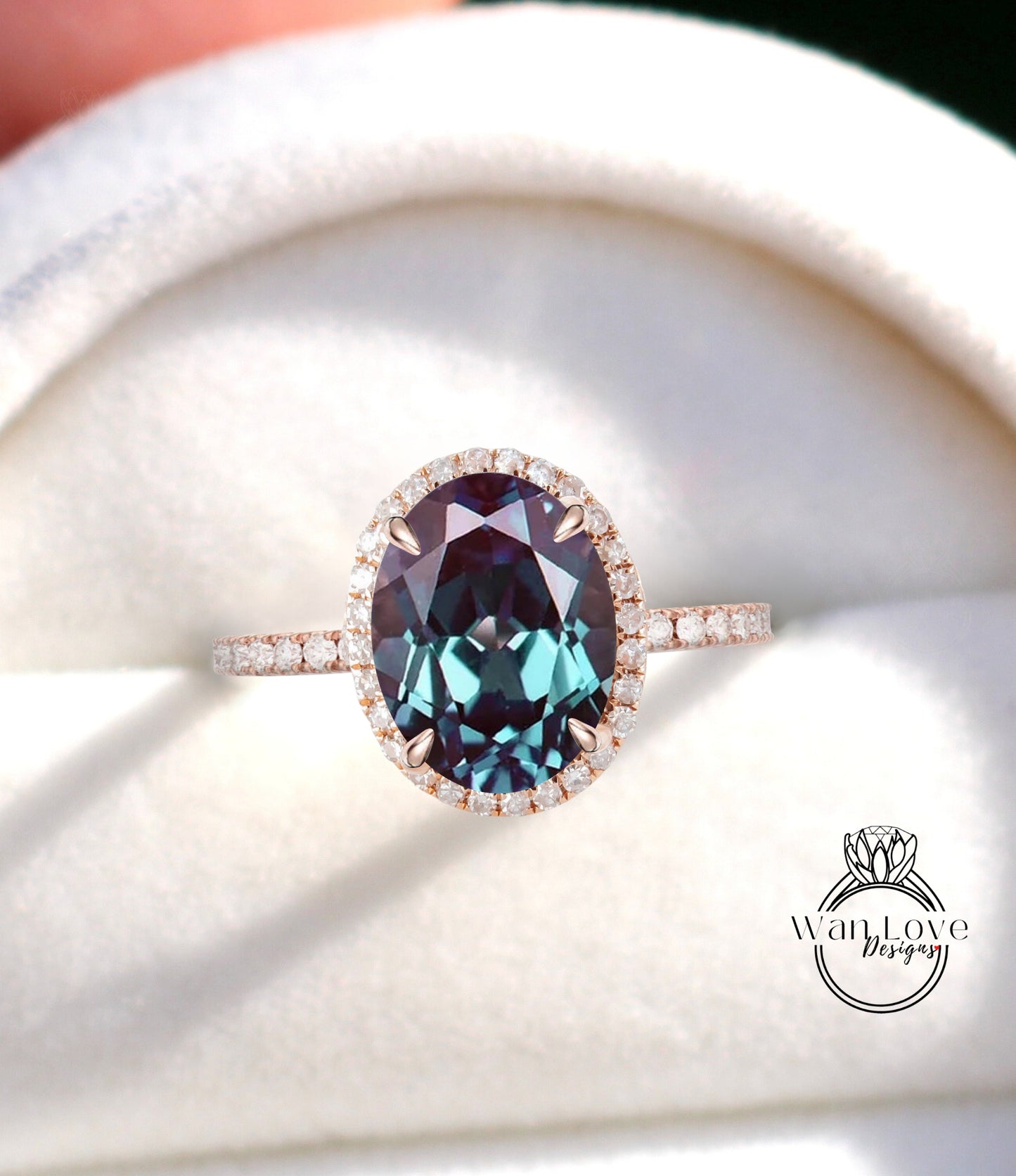 Diamond Halo Ring Alexandrite & Diamond Oval Halo Engagement Ring Art Deco Diamond Halo Ring wedding anniversary bridal promise ring