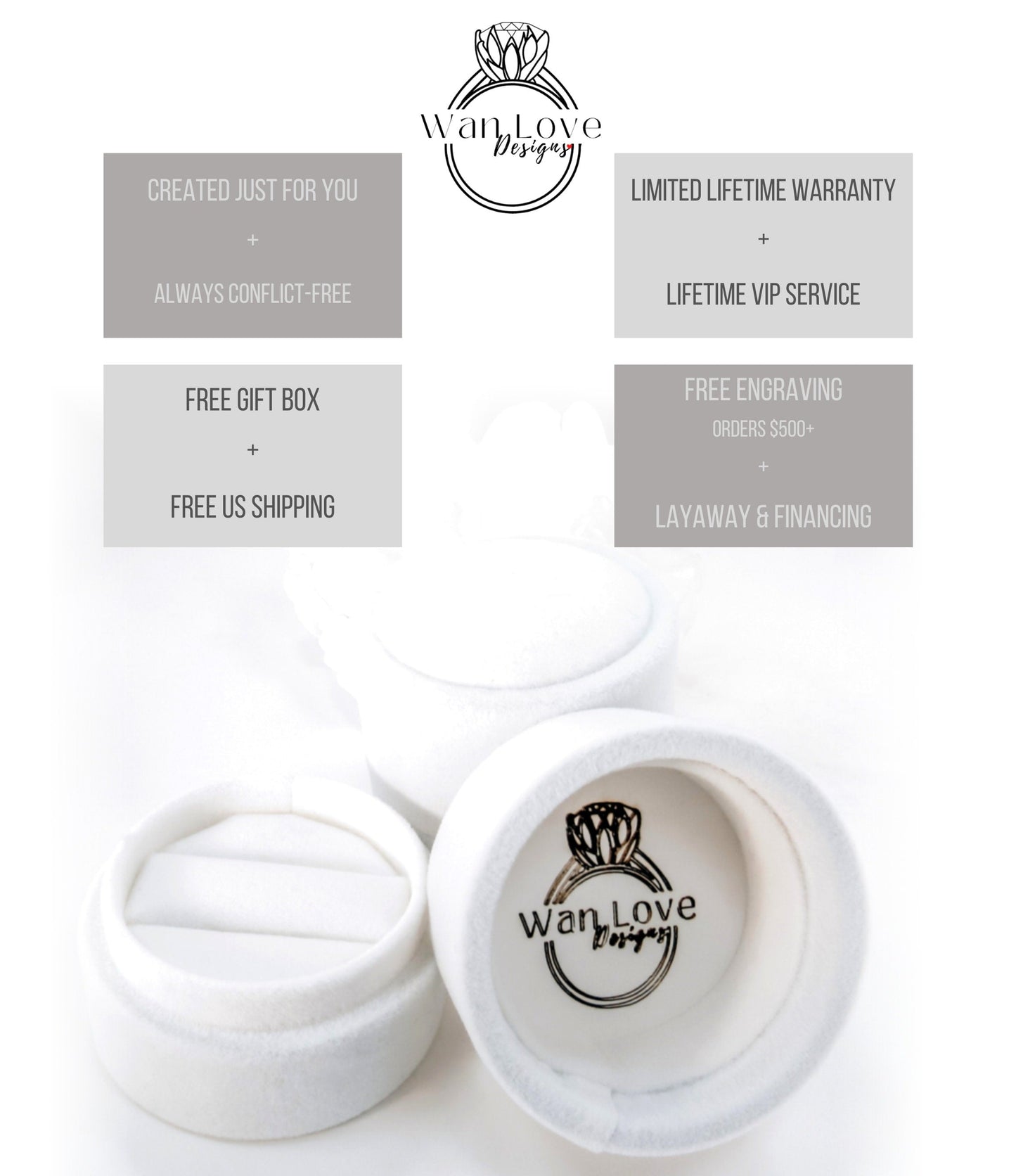 If you happen to order the wrong size, don't worry—we offer resizing services! The cost typically ranges from $35 to $65 (higher for some larger sizes), plus shipping. Please note that rings can only be resized within a certain range. If the size adjustment needed is too significant, the ring may need to be remade at an additional cost. Eternity bands cannot be resized.