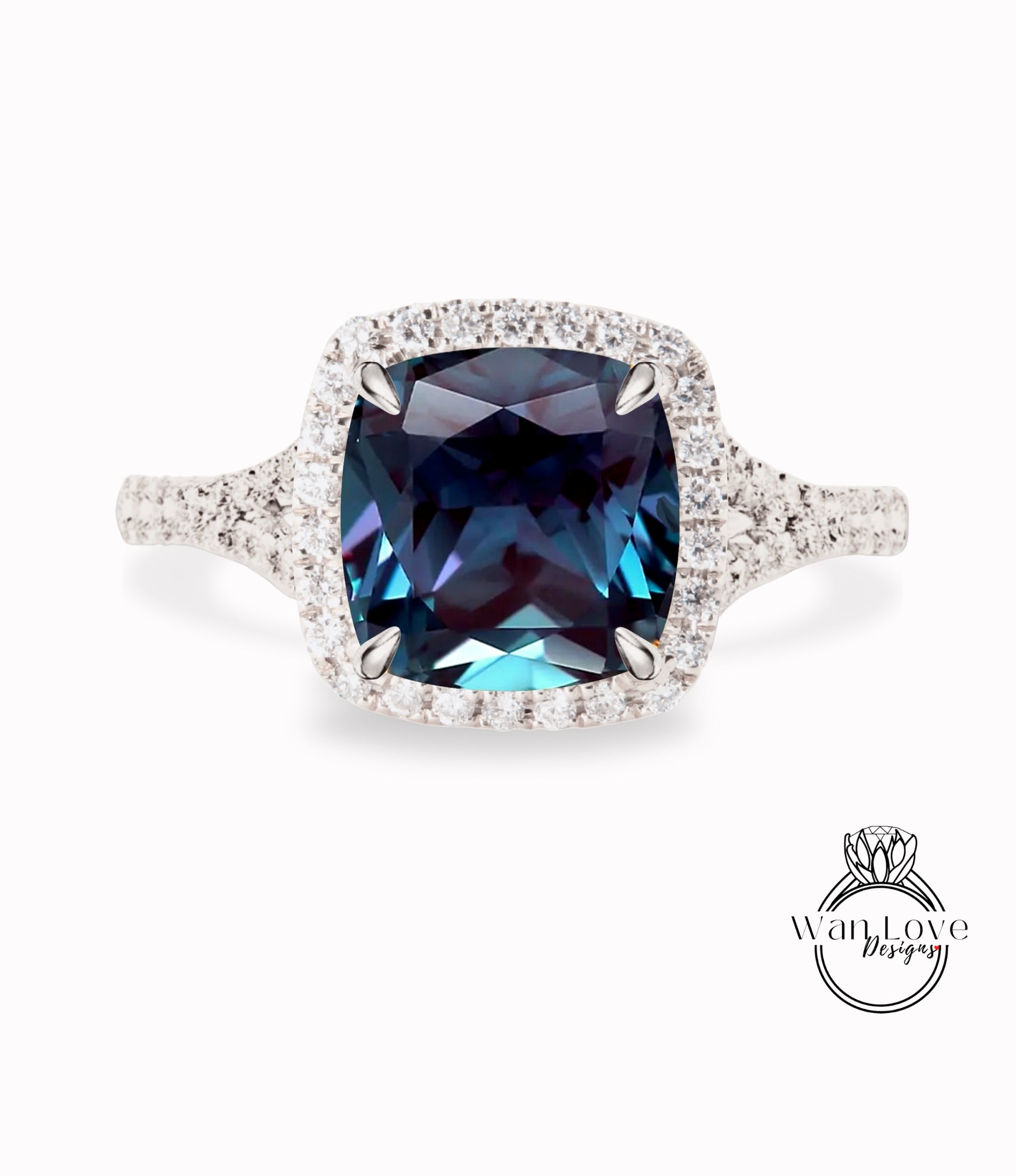 Alexandrite & Diamond Cushion Halo Split Shank engagement ring rose gold art deco bridal wedding ring Anniversary gift