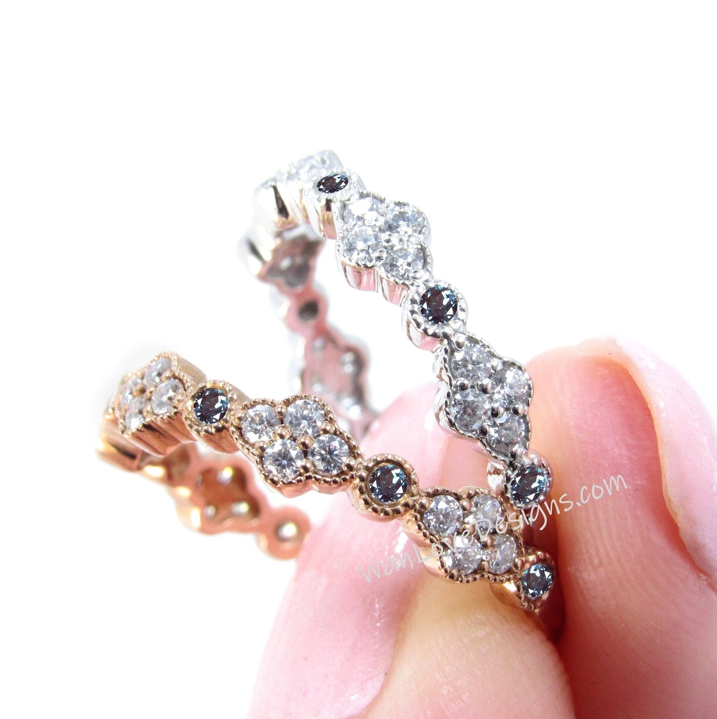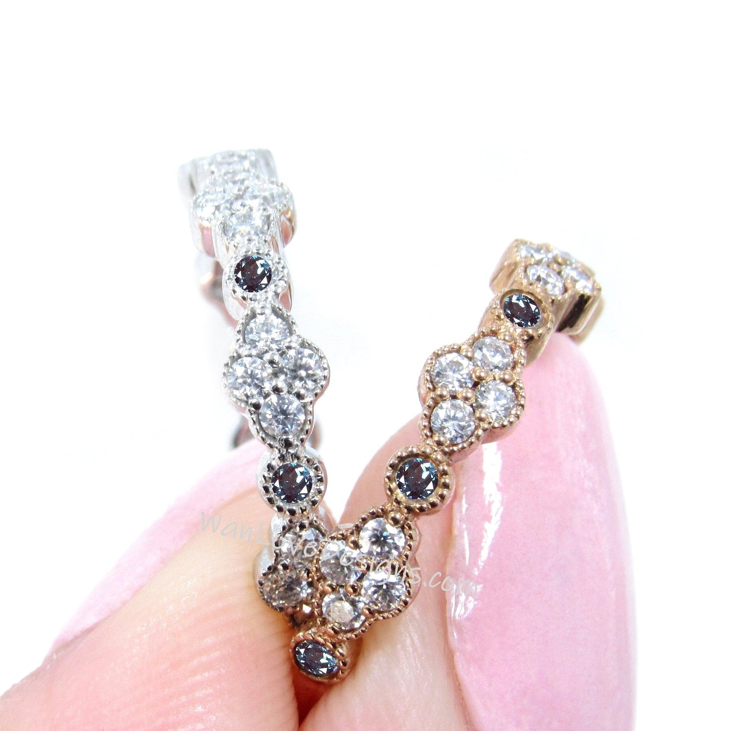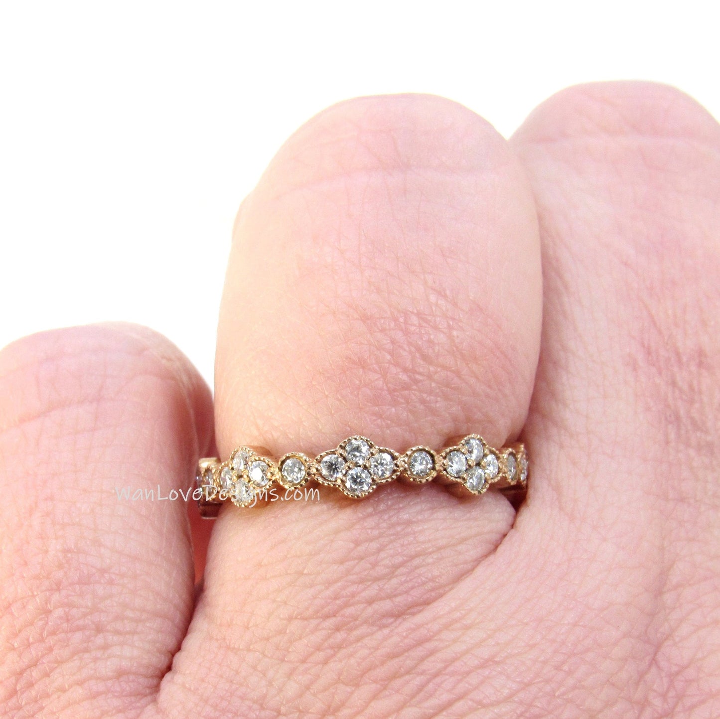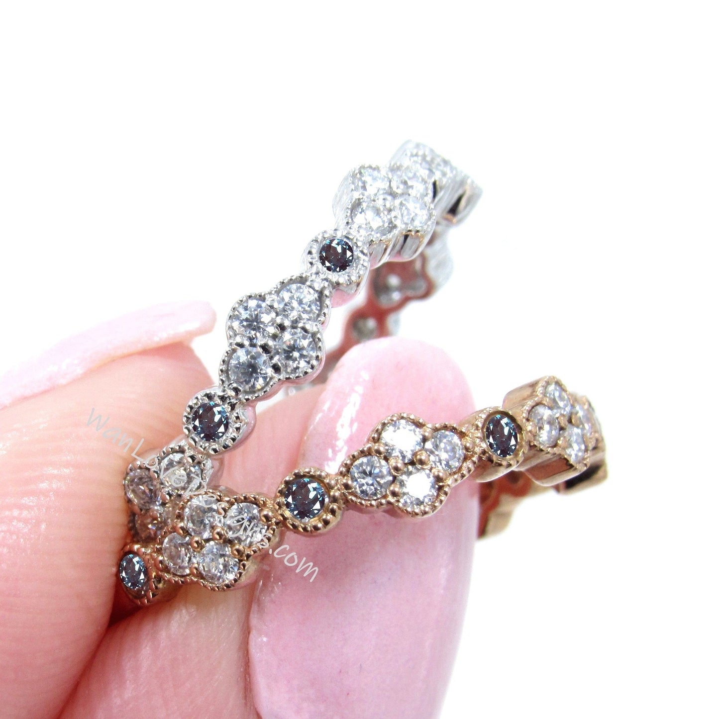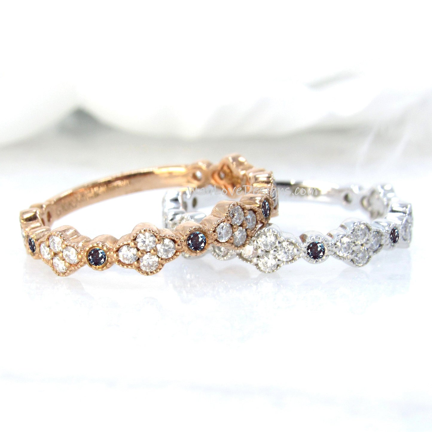Alexandrite Diamond Round Clover Wedding Ring, Quatrefoil Band in 14K Rose Gold, Wedding Jewelry, Bridal Bands, Matching Band, Unique Ring
