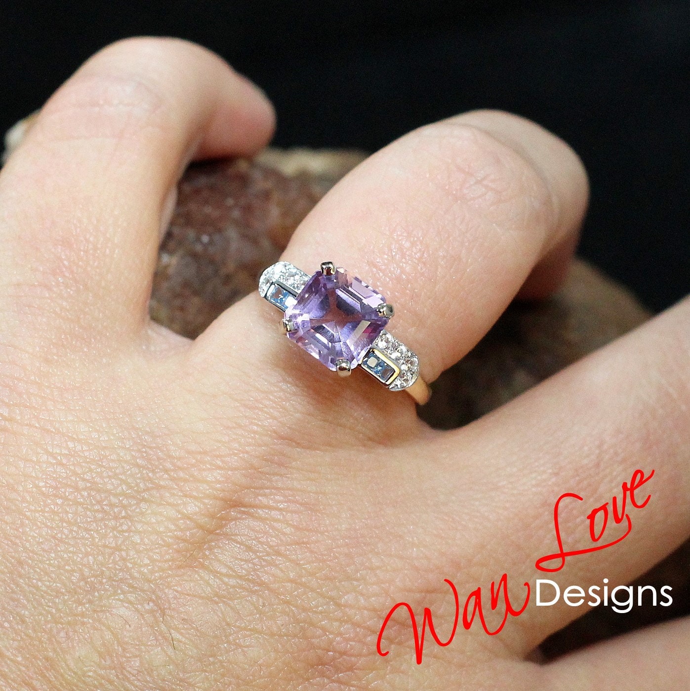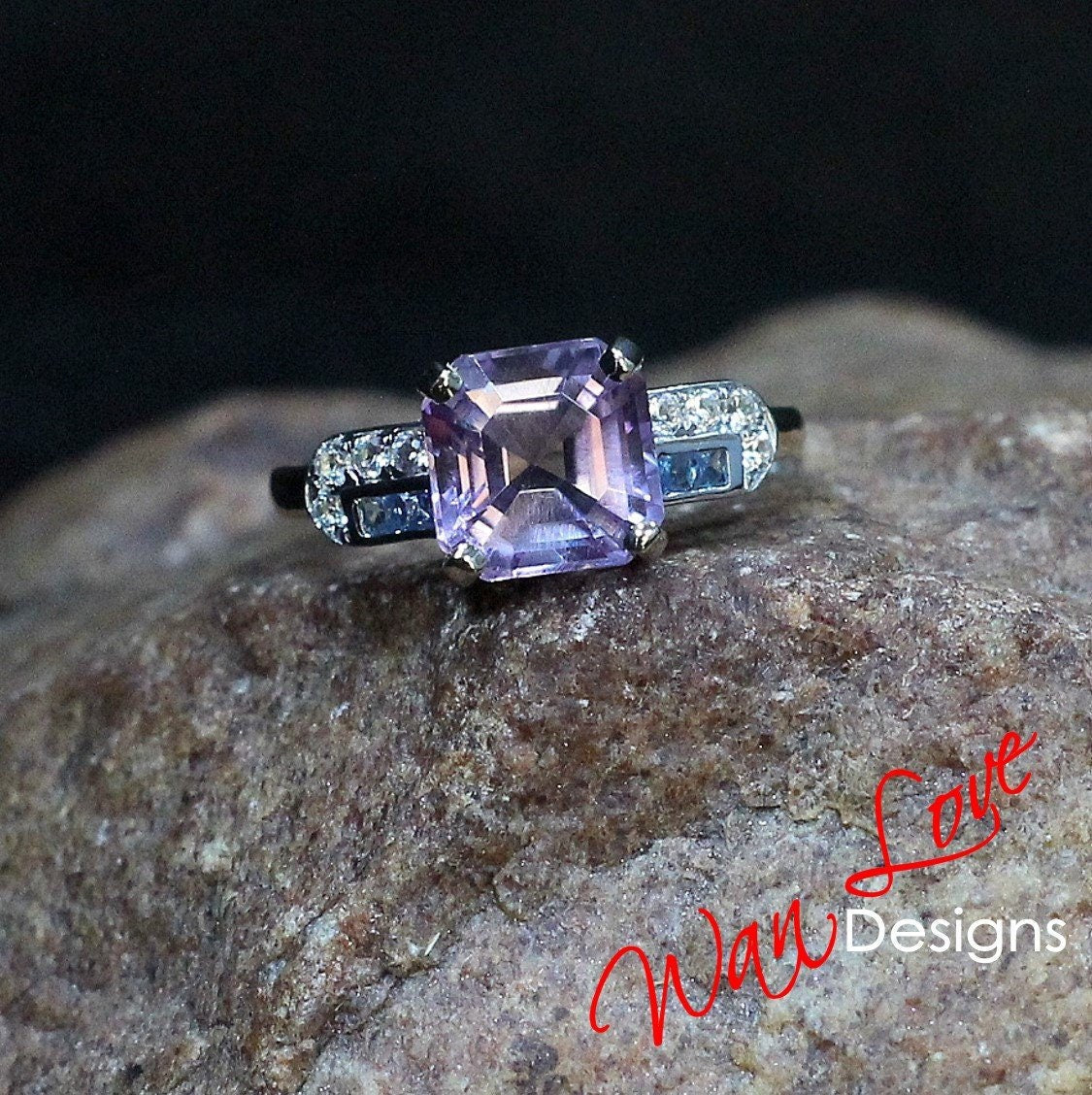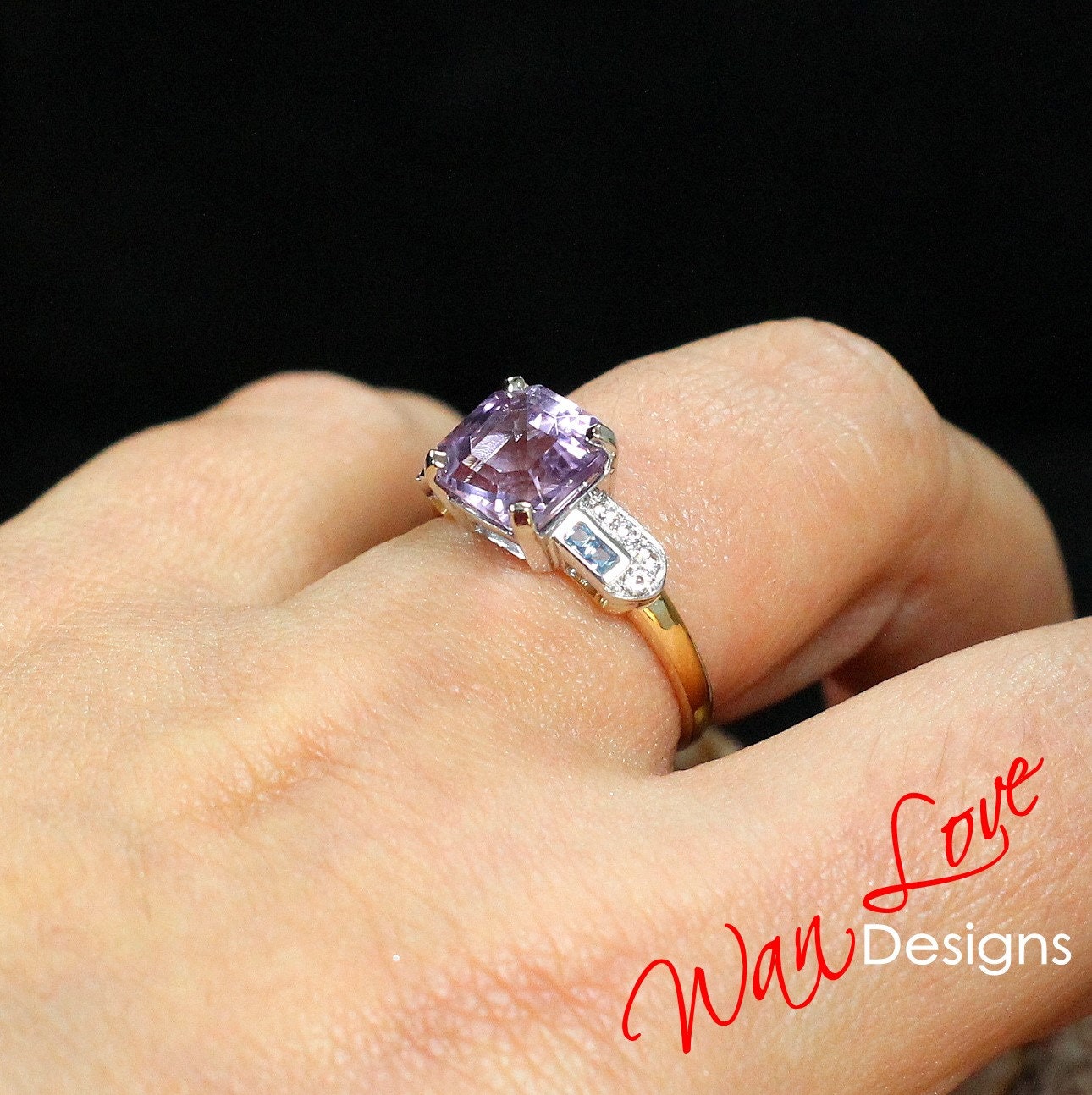 Amethyst White Sapphire Blue Spinel Engagement Ring, 3ct 8mm, Custom, Wedding, Anniversary, 10k 14k 18k White Yellow Rose Gold, Platinum