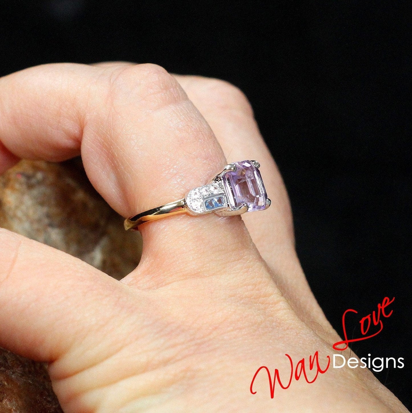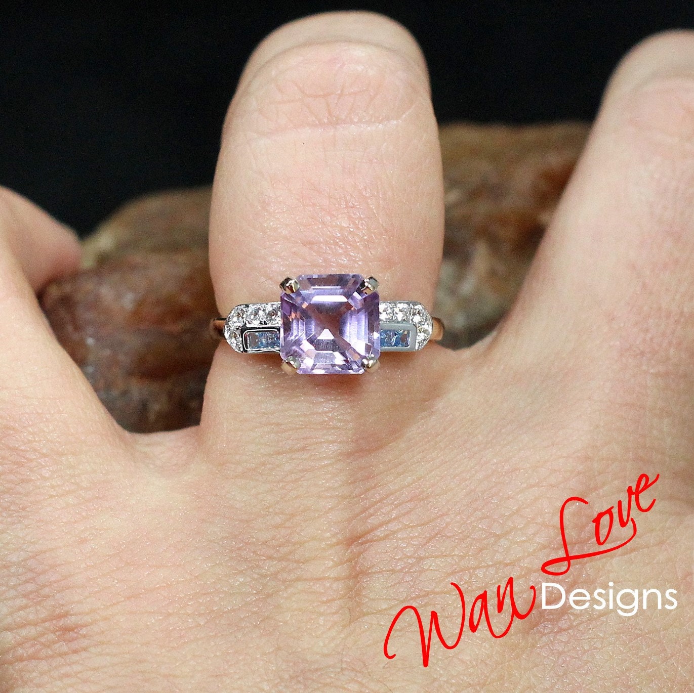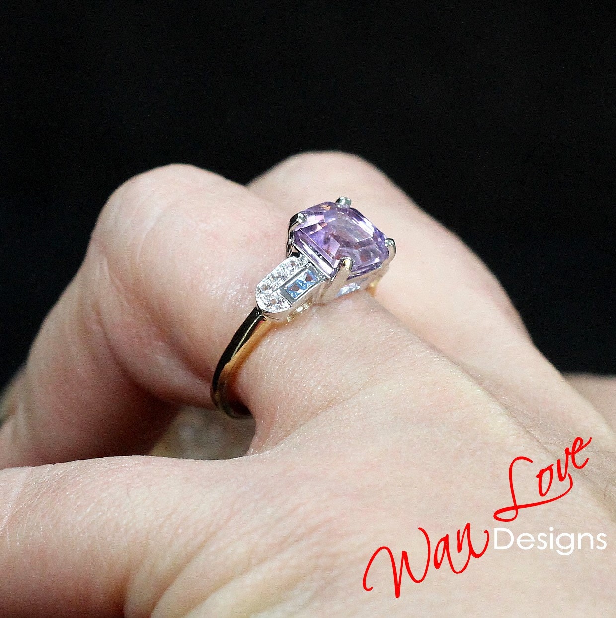 Amethyst White Sapphire Blue Spinel Engagement Ring, 3ct 8mm, Custom, Wedding, Anniversary, 10k 14k 18k White Yellow Rose Gold, Platinum