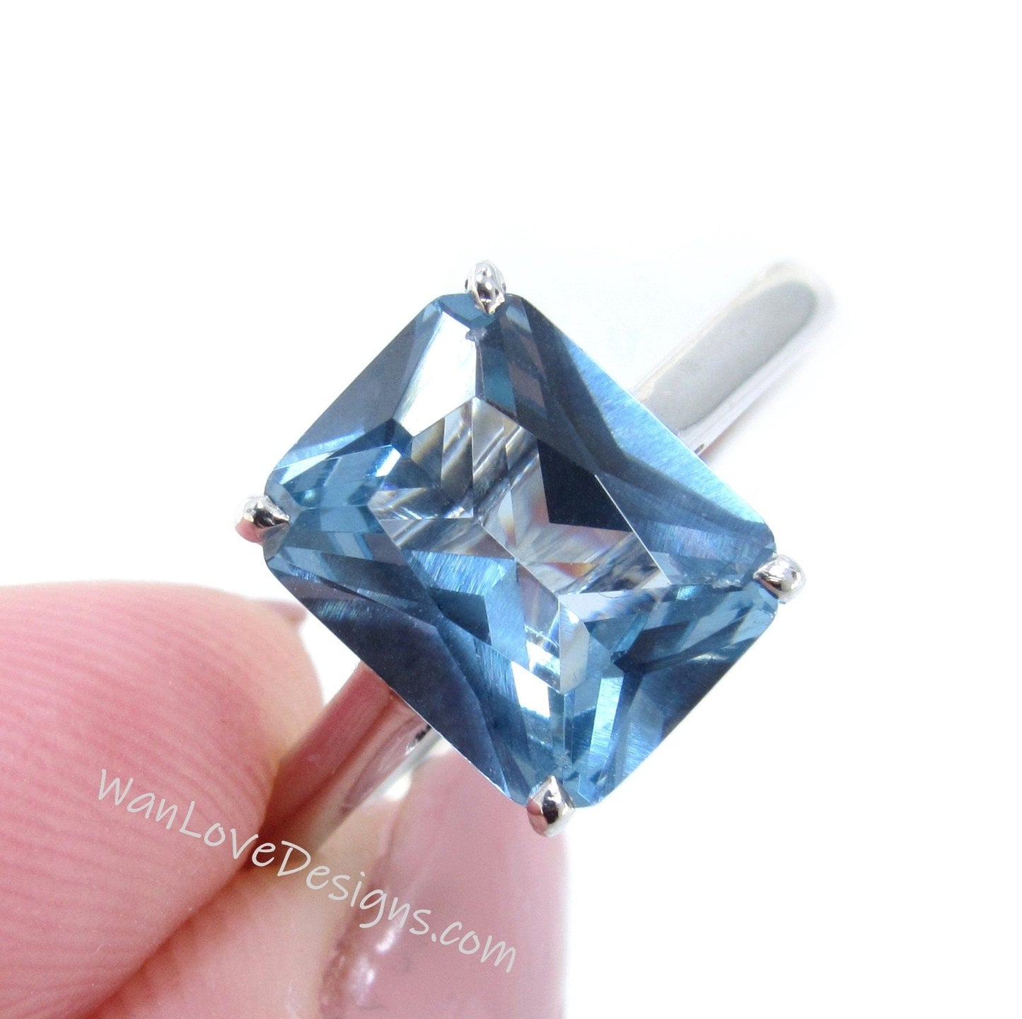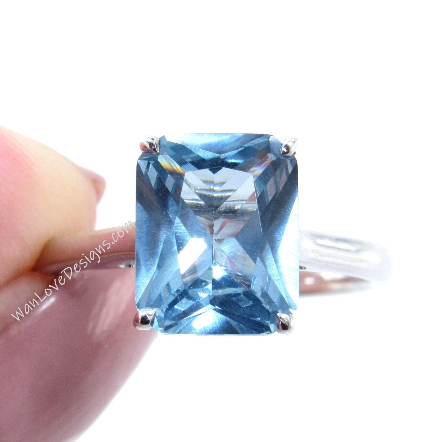 Aquamarine Light Blue Spinel Emerald cut Engagement Ring Solitaire Radiant 4ct 10x8mm promise bridal wedding Anniversary ring-Ready to ship