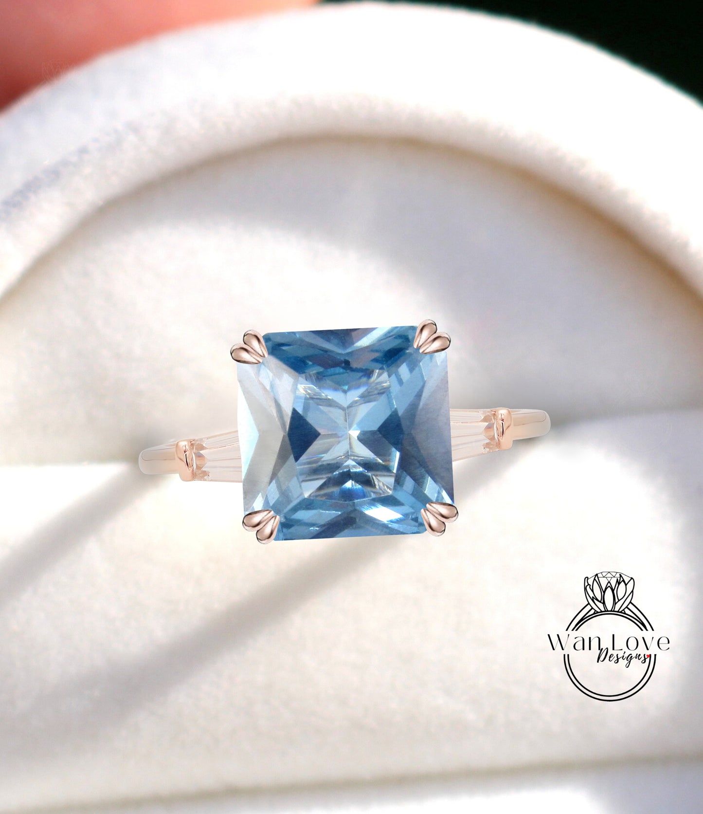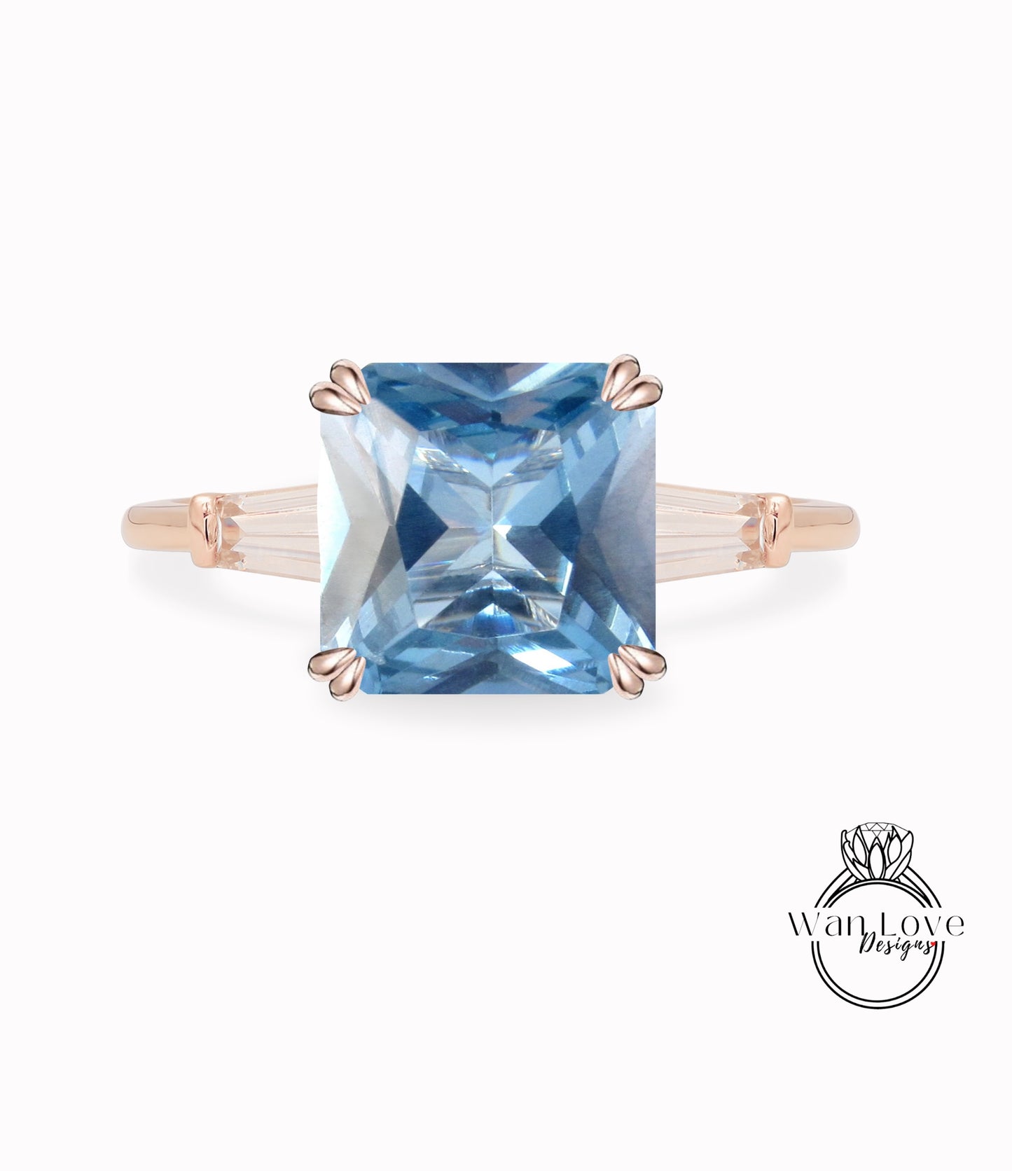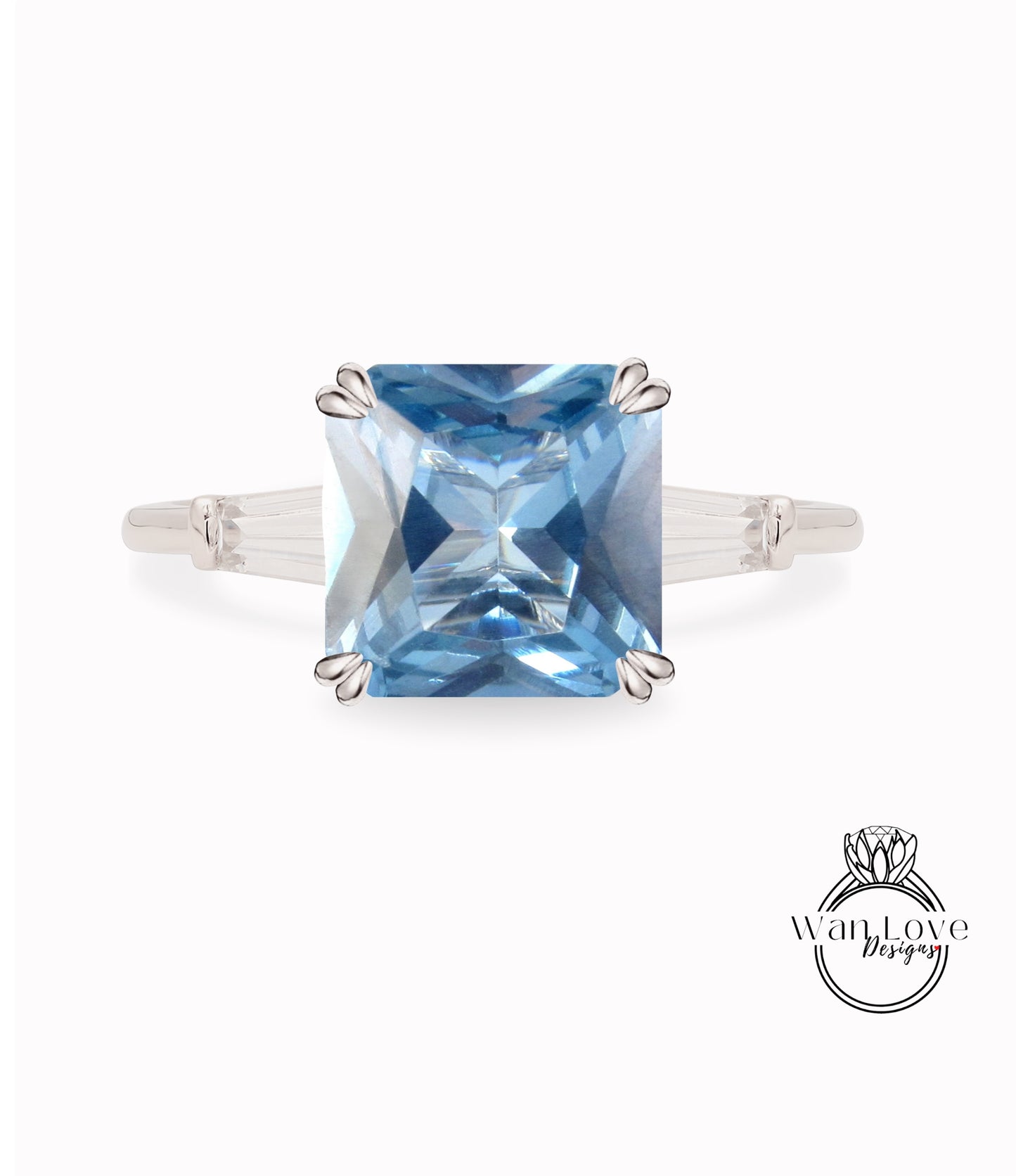 Aquamarine Spinel Princess Radiant Moissanite Tapered Baguette Engagement Ring 14kt 18kt Gold Platinum Custom Wedding Anniversary Gift