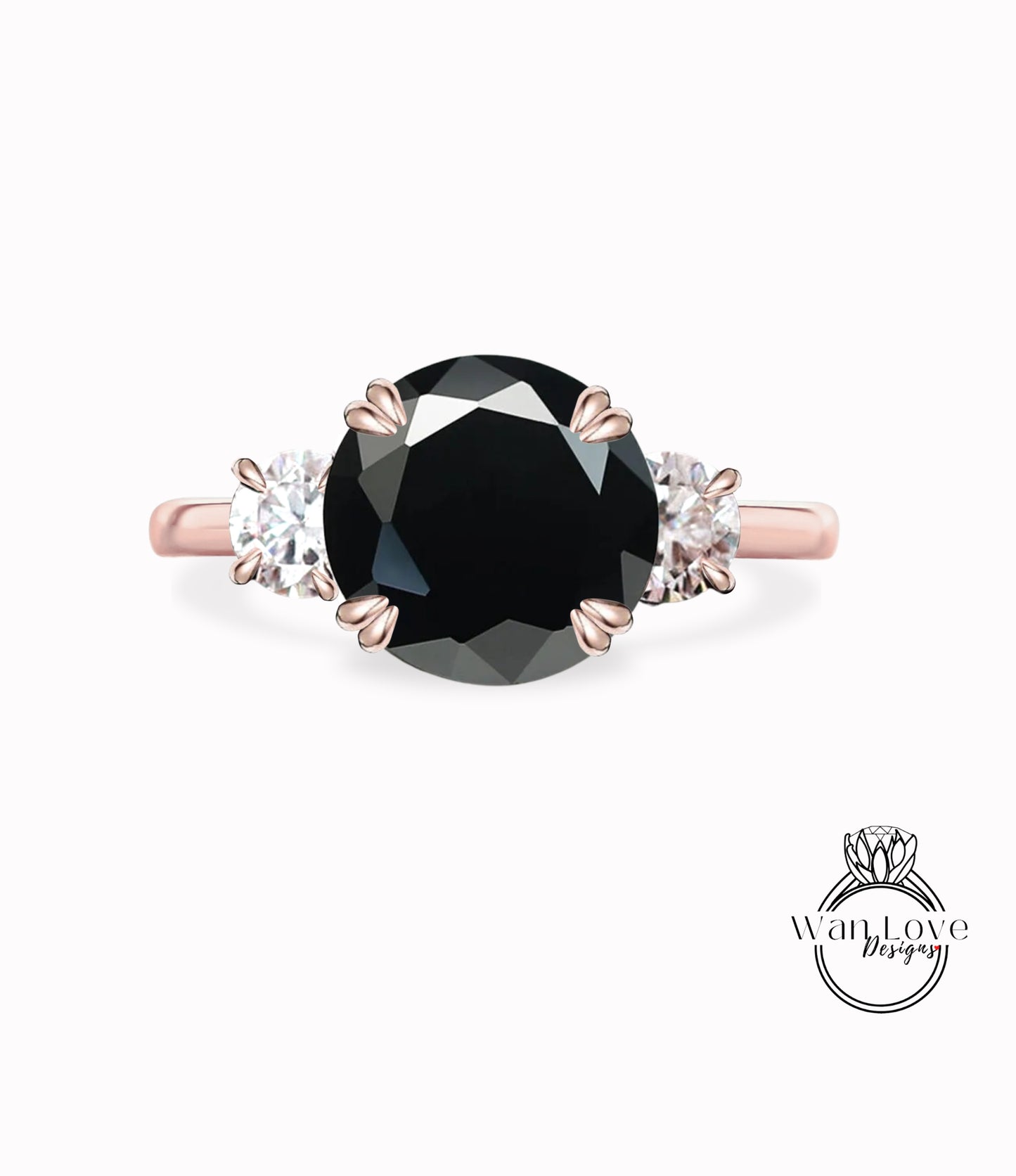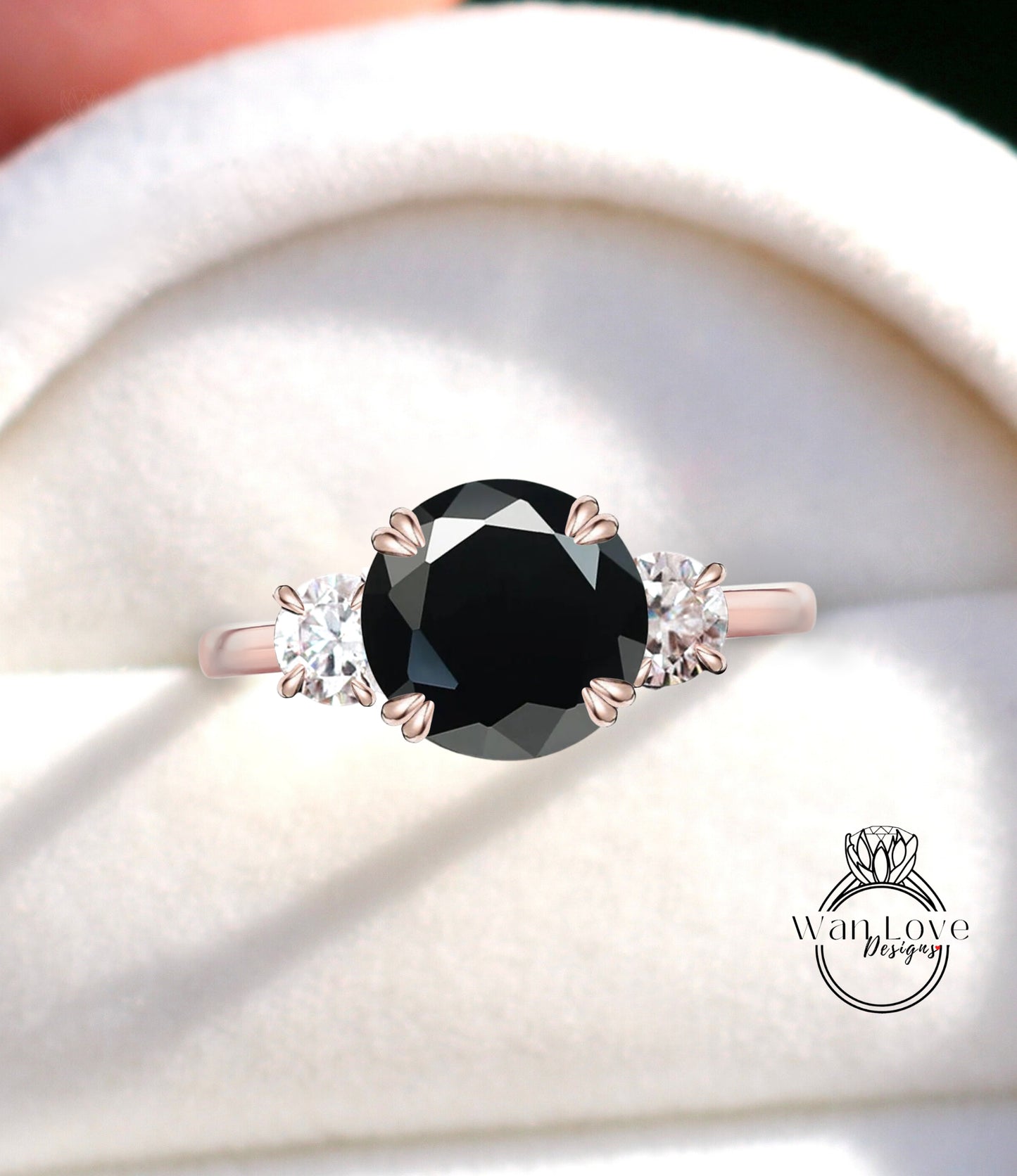 Black Spinel & Diamond round 3 Gem stone Engagement Ring 14k 18k White Yellow Rose Gold-Platinum-Custom three gemstone moissanite diamond bridal wedding ring Anniversary Gift
