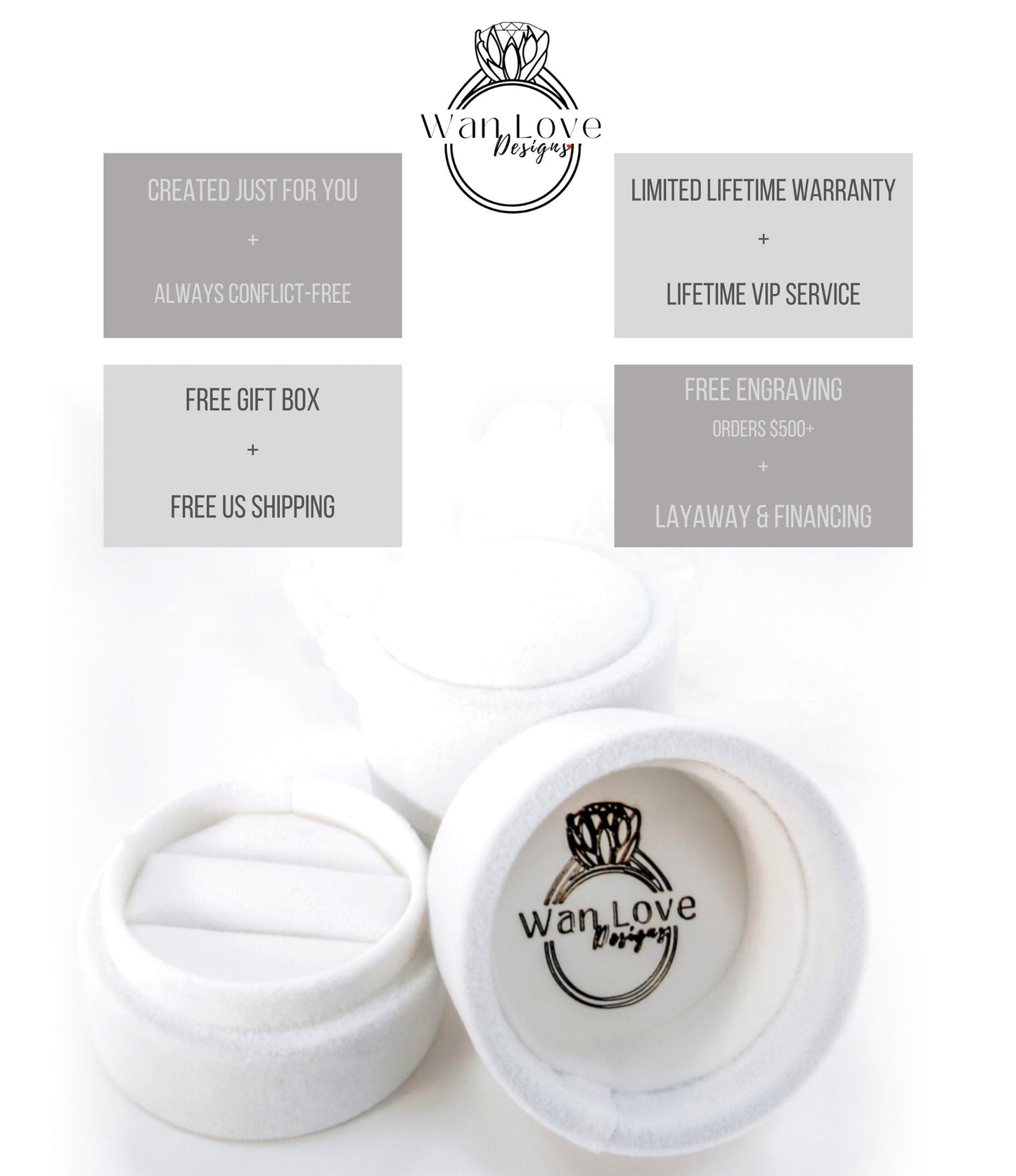 If you happen to order the wrong size, don't worry—we offer resizing services! The cost typically ranges from $35 to $65 (higher for some larger sizes), plus shipping. Please note that rings can only be resized within a certain range. If the size adjustment needed is too significant, the ring may need to be remade at an additional cost. Eternity bands cannot be resized.