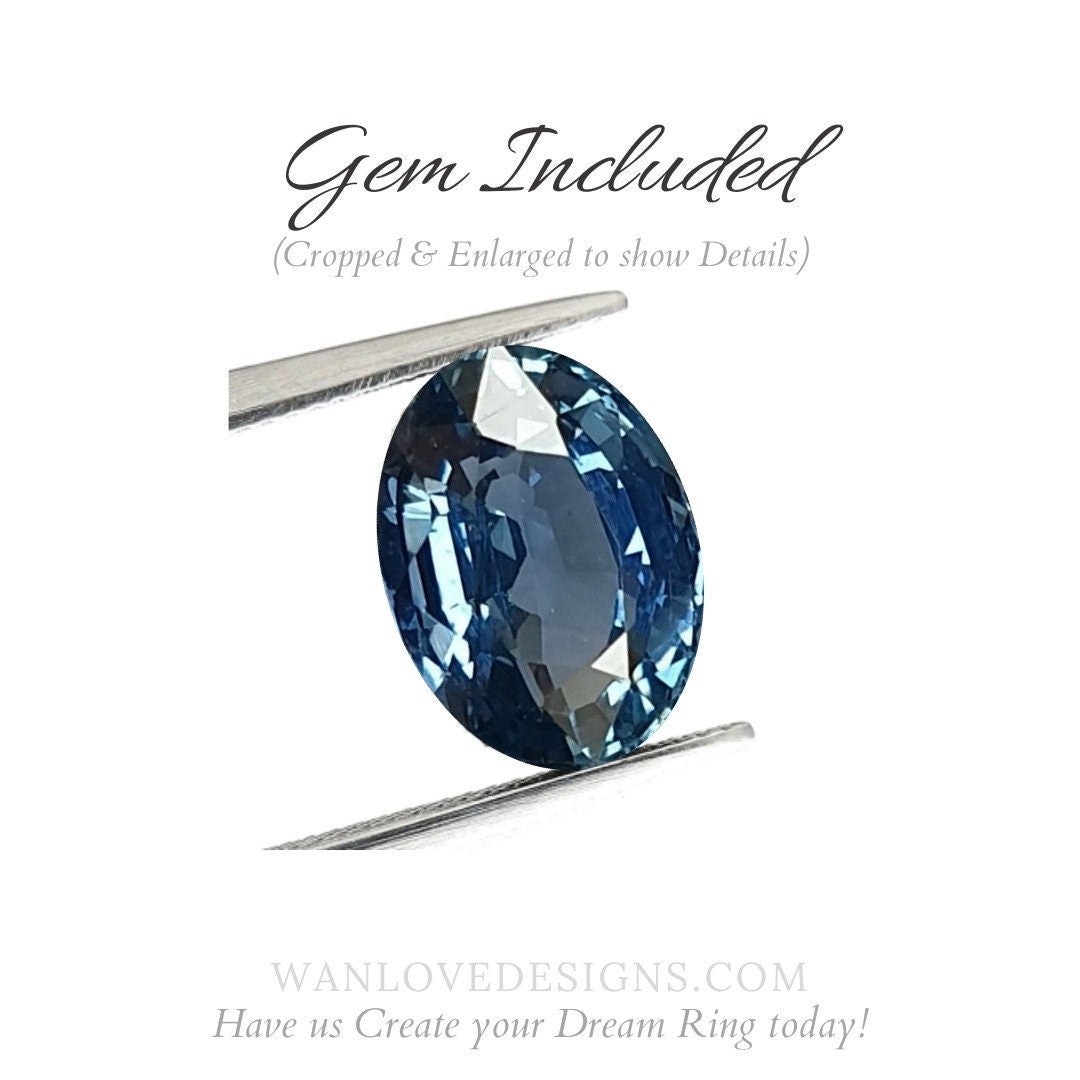 Blue Sapphire Engagement Ring Unique Custom Oval shaped Ring Vintage cluster Diamond white gold ring promise Anniversary ring prong ring