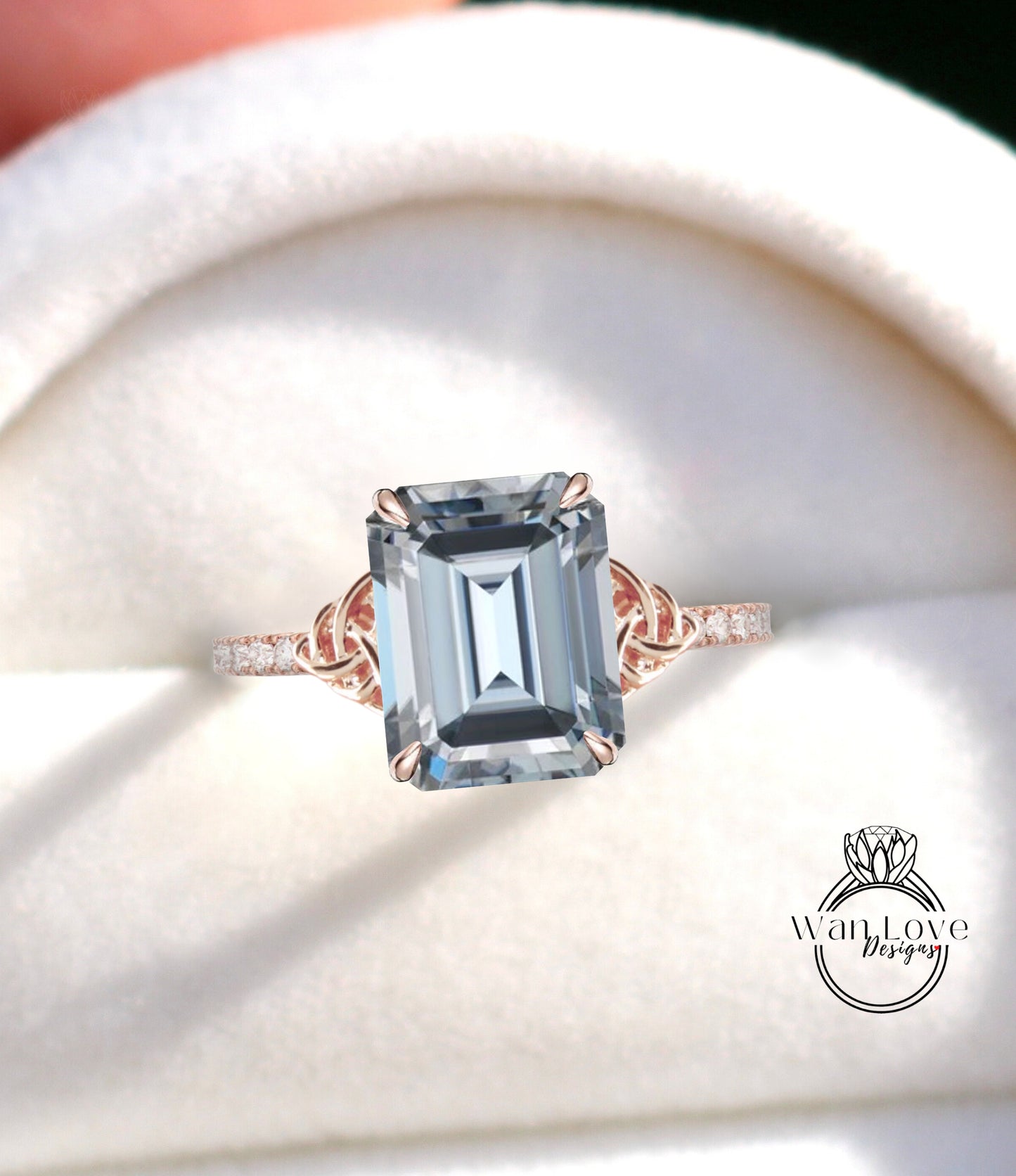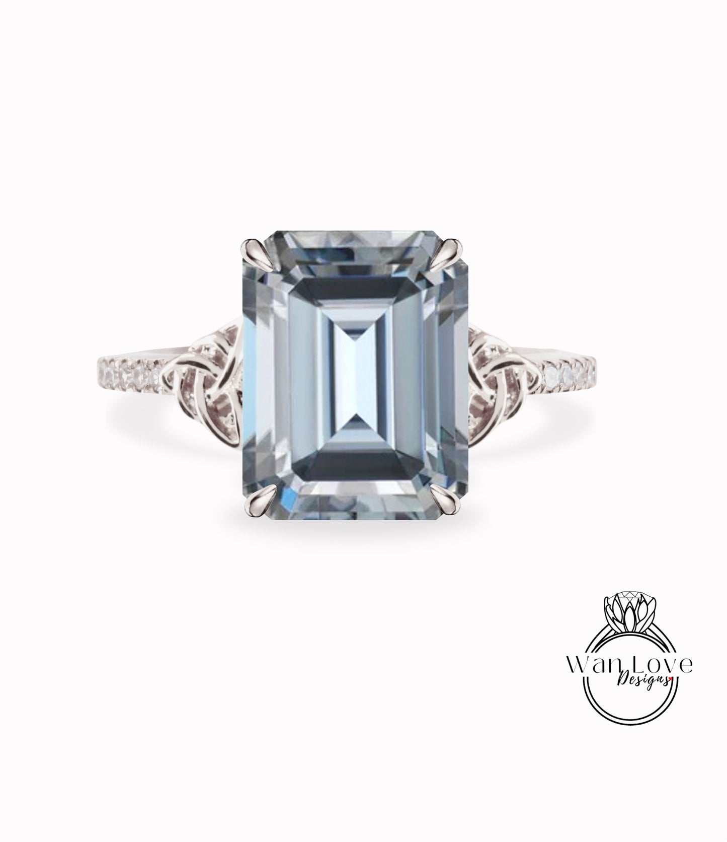 Celtic Knot Grey Moissanite & Diamond Radiant Engagement Ring Celtic Moissanite diamond half eternity ring Emerald Bridal Anniversary Ring