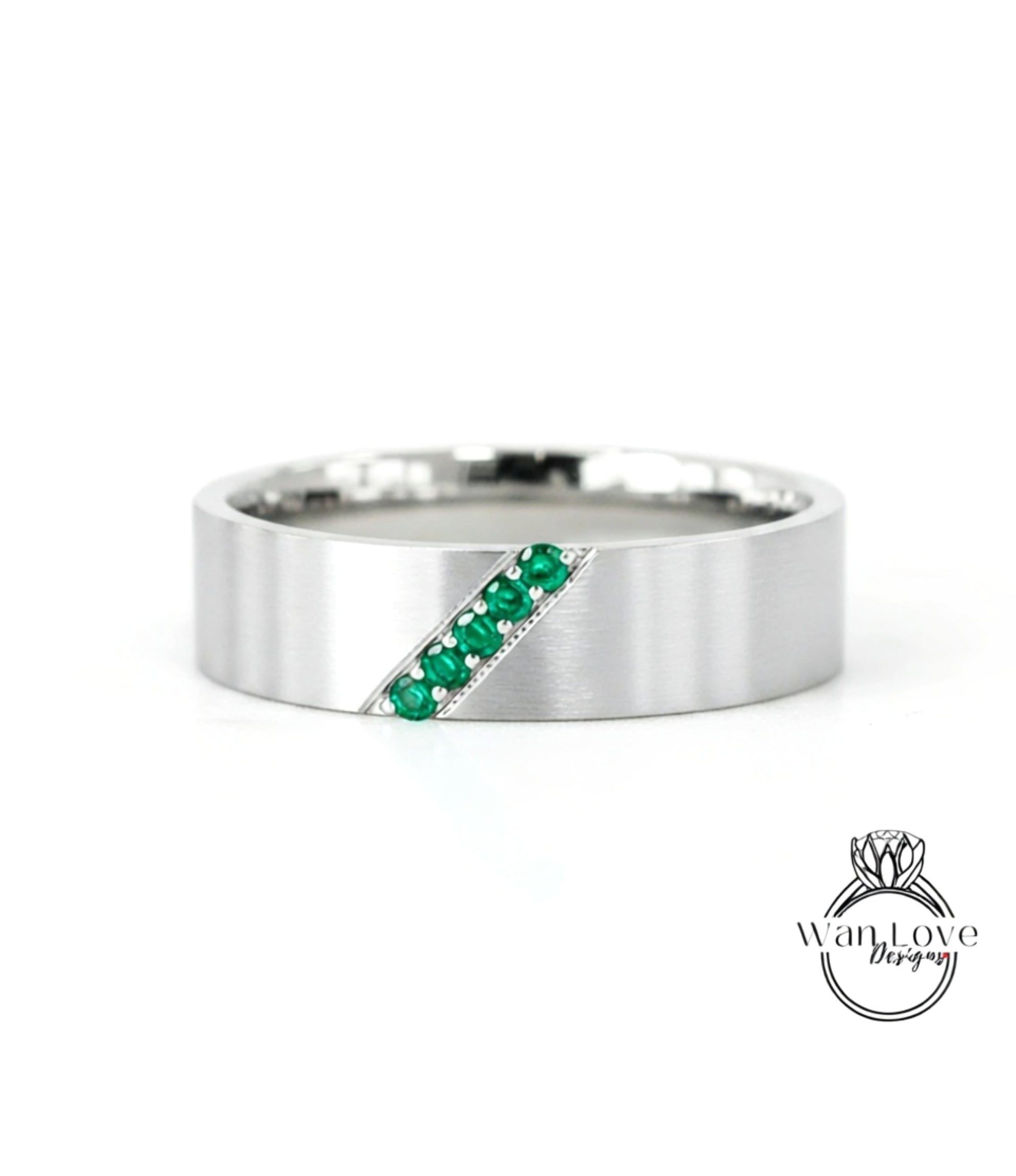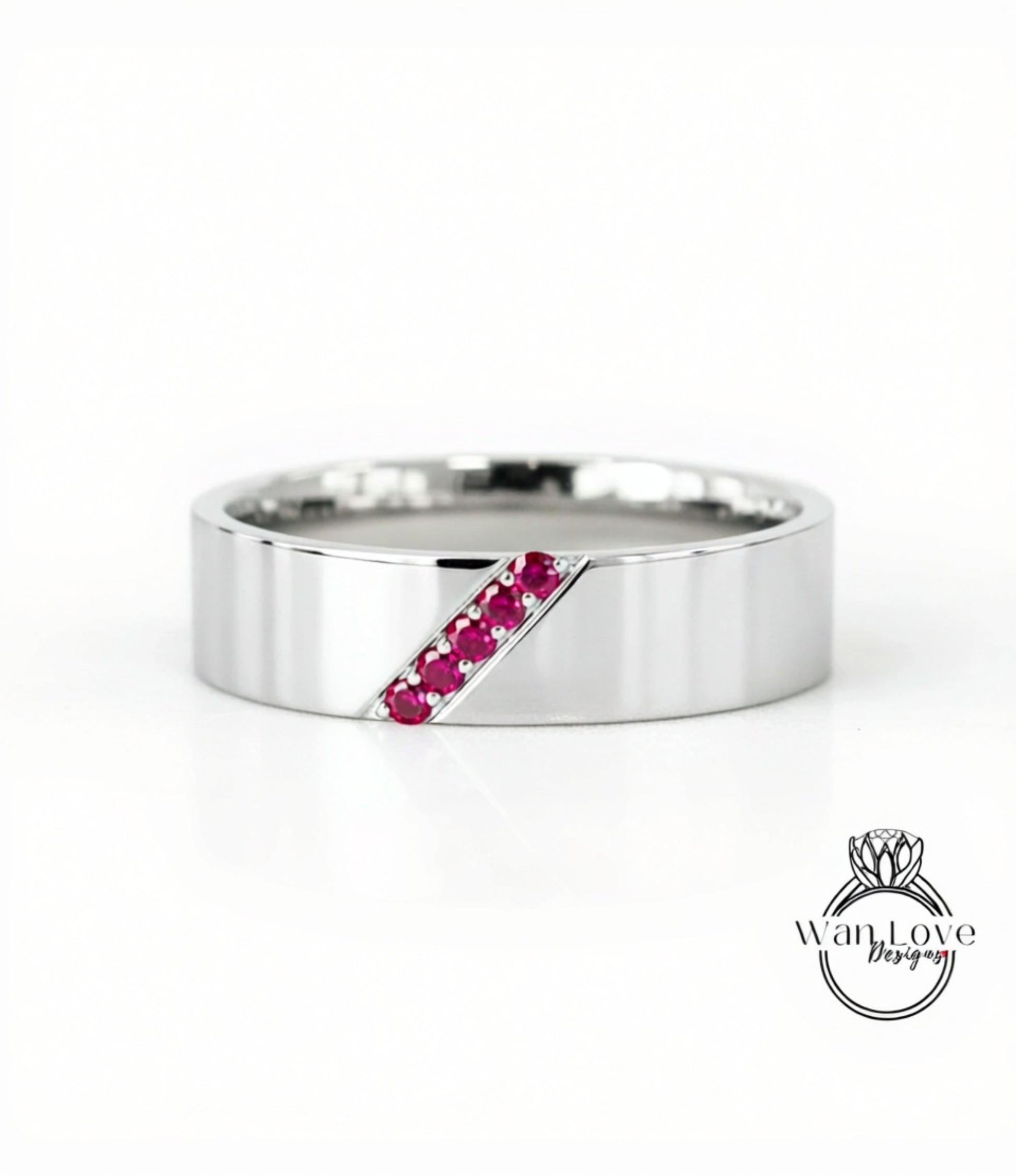 Diagonal Men's Sapphire Ring - Sapphire Ring Men - Diamonds Wedding Band - 5mm Band Moissanite - Unique Mens Band - 14k Gold - Ring For Men