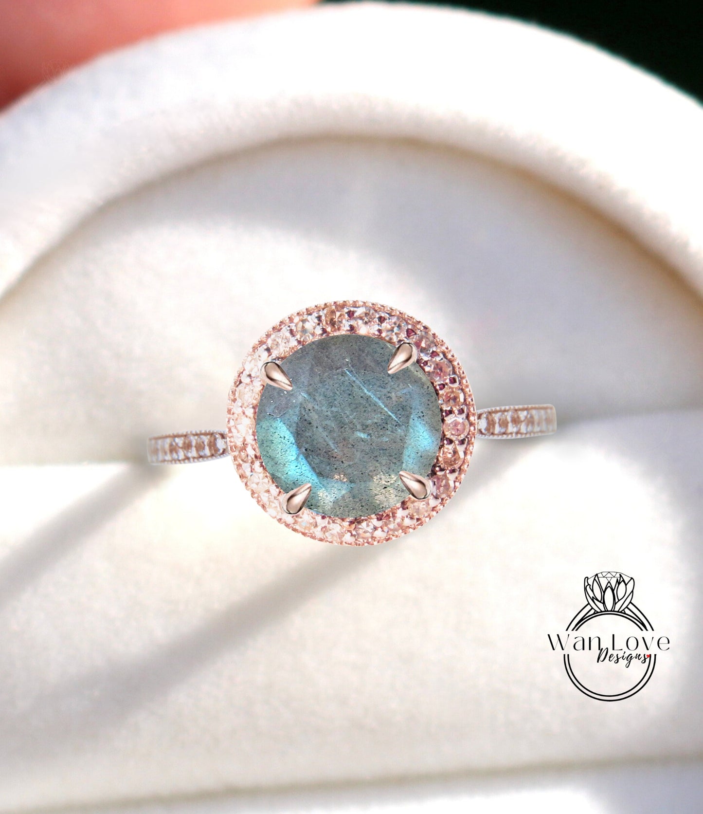 Diamond Halo Labradorite Gold Ring/ Round Labradorite Center Ring/ Engagement Ring/ Anniversary Ring/ Promise Ring/ Halo Milgrain Ring
