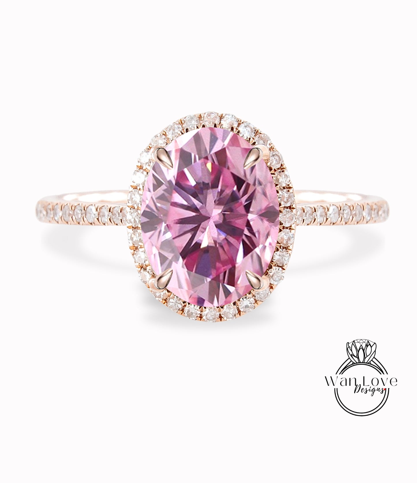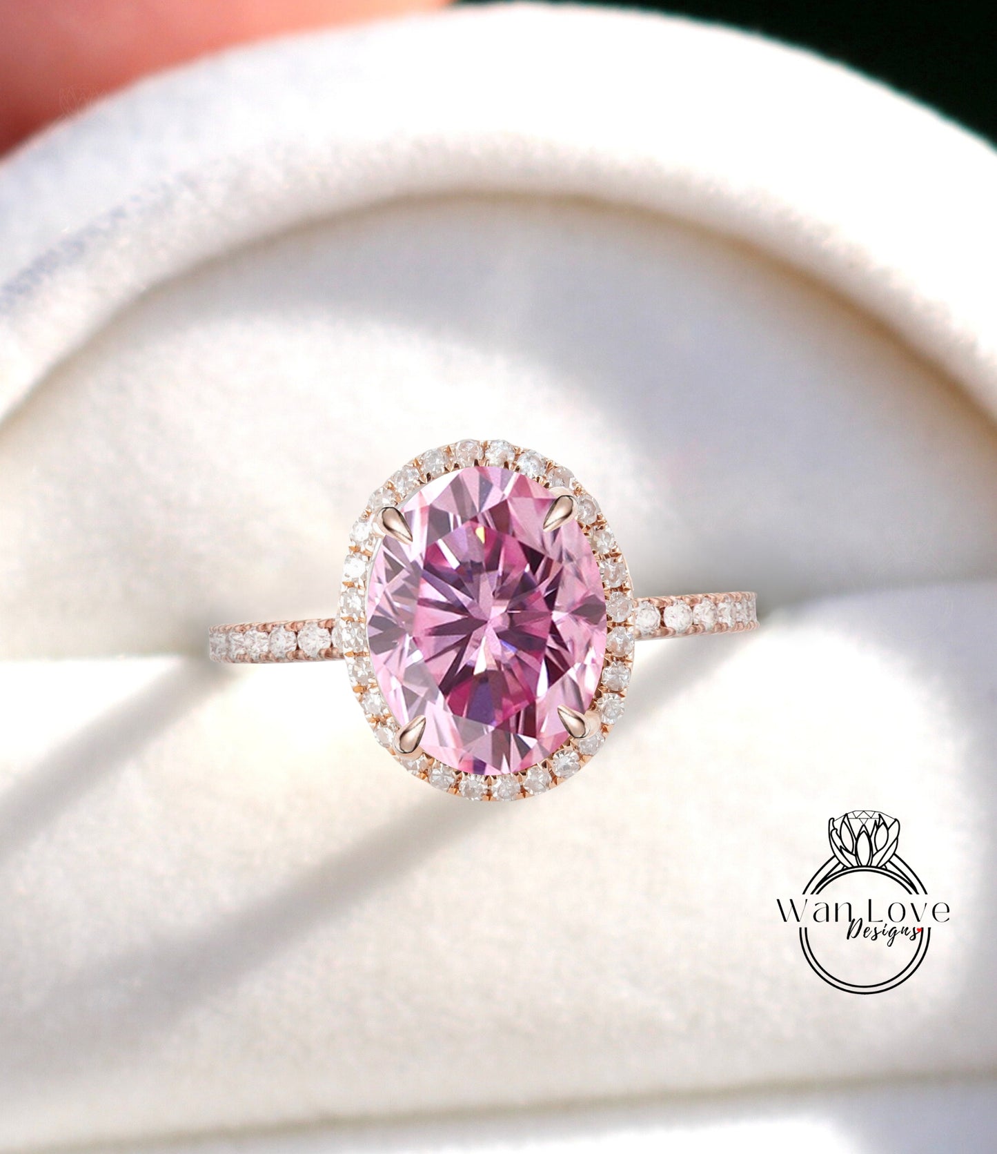 Diamond Halo Ring Pink Moissanite & Diamond Oval Halo Engagement Ring Art Deco Diamond Halo Ring wedding anniversary bridal promise ring