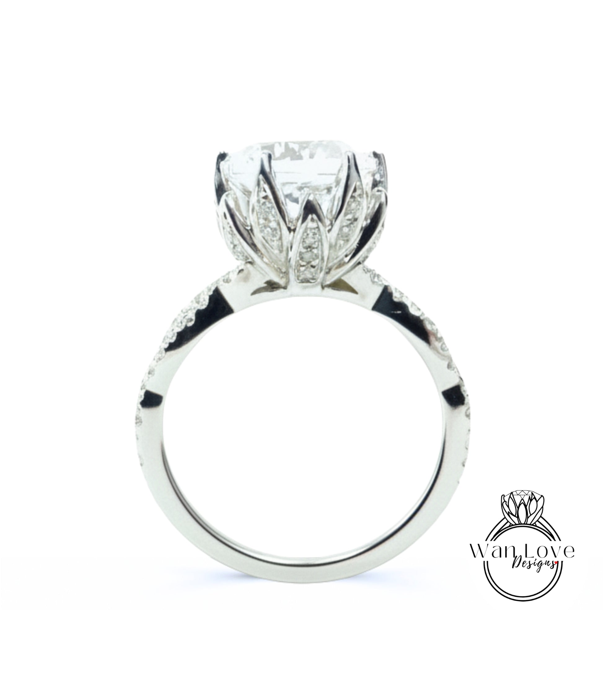 Diamond Lotus Flower Infinity Twist Shank Engagement Ring Set, Nesting Wedding Band, 14k 18k gold-Platinum-Custom Bridal ring Anniversary Gift