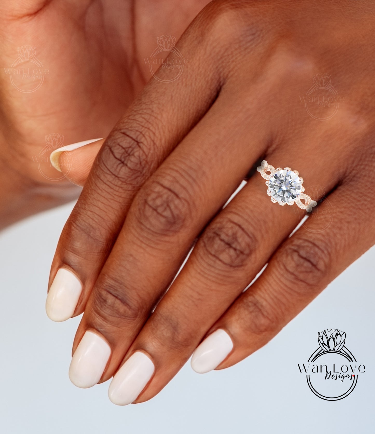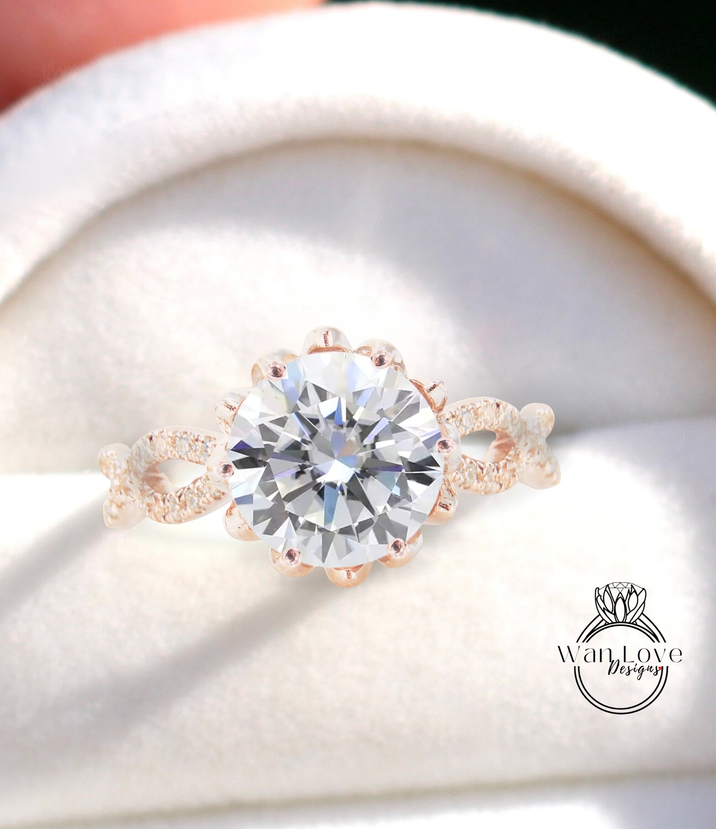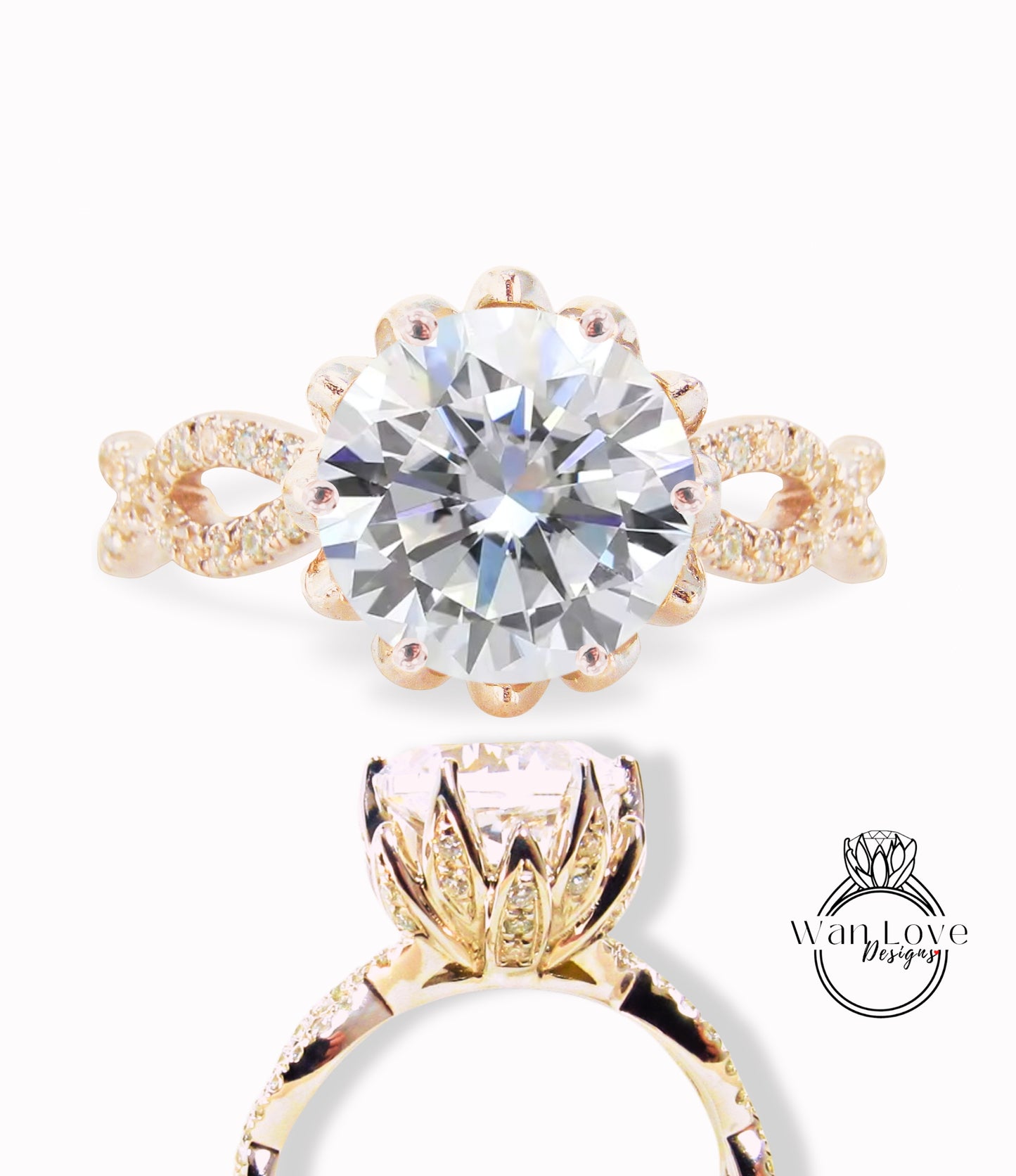 Diamond Lotus Flower Infinity Twisted Round Engagement Ring, 14kt 18kt Gold-Platinum-Custom-Certified Diamond Wedding ring-Anniversary Gift