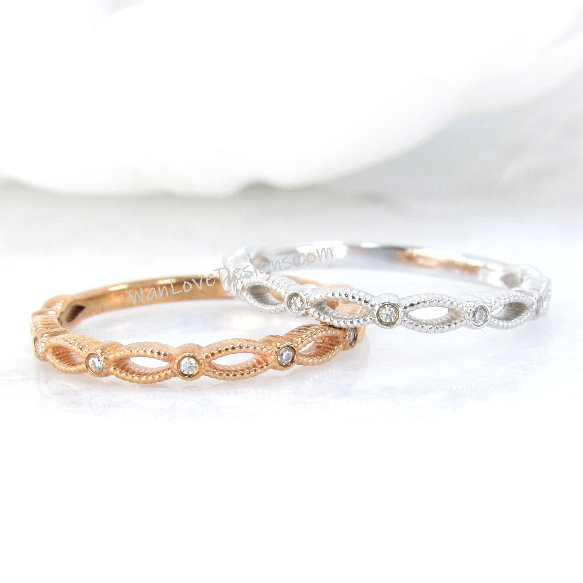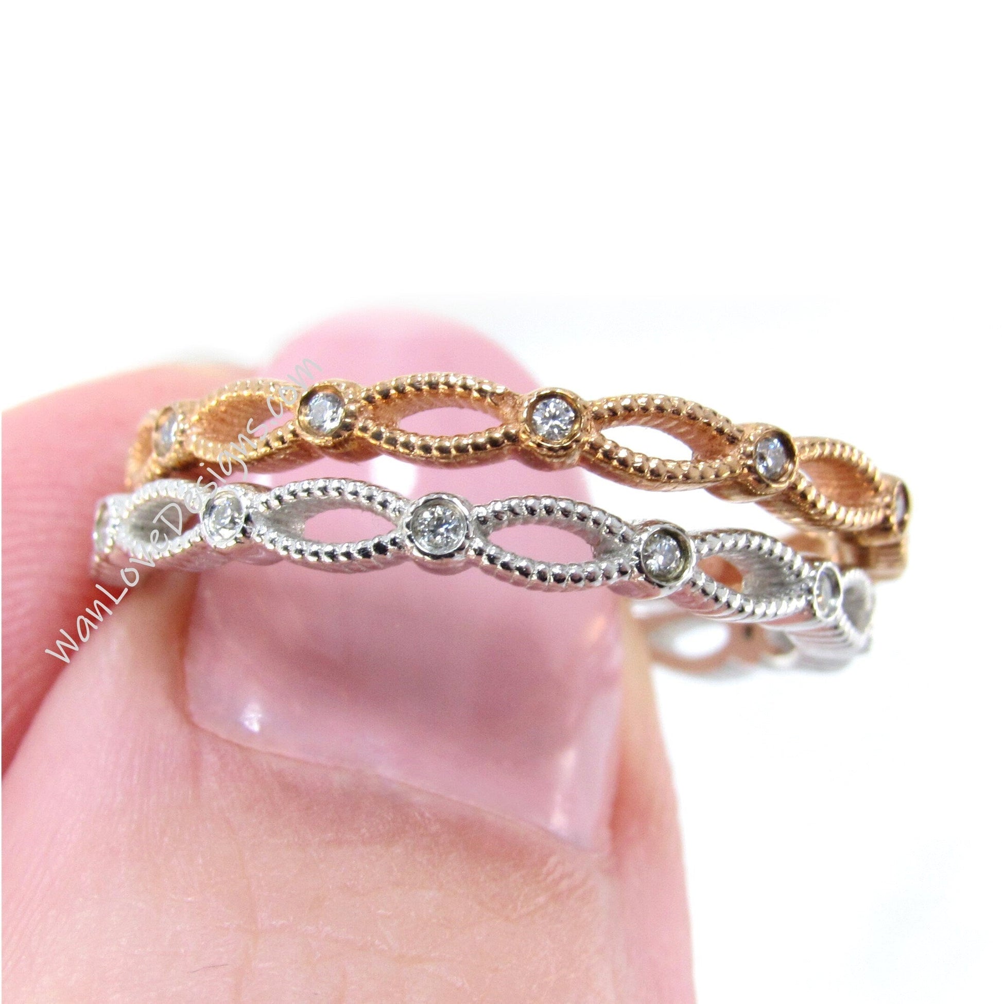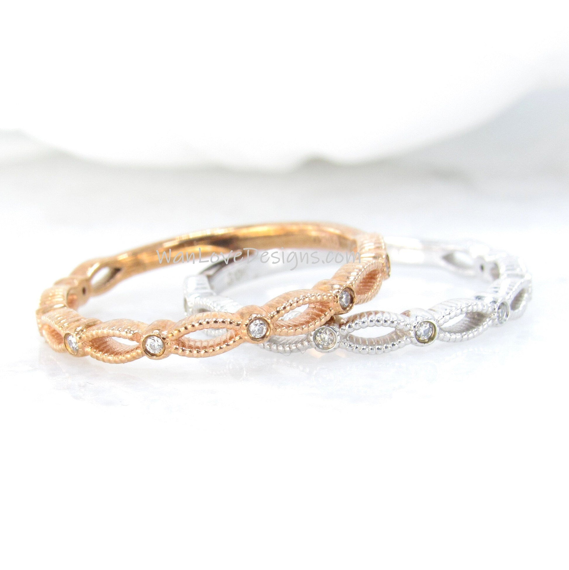 Diamond Rope Twist Stack Rings/ Dainty Moissanite Textured Bands/ 18K Rose Gold Bridal Rings/ Twisted Women Rings/ Minimalist Ring For Her