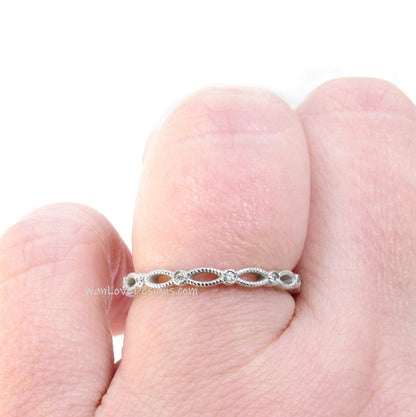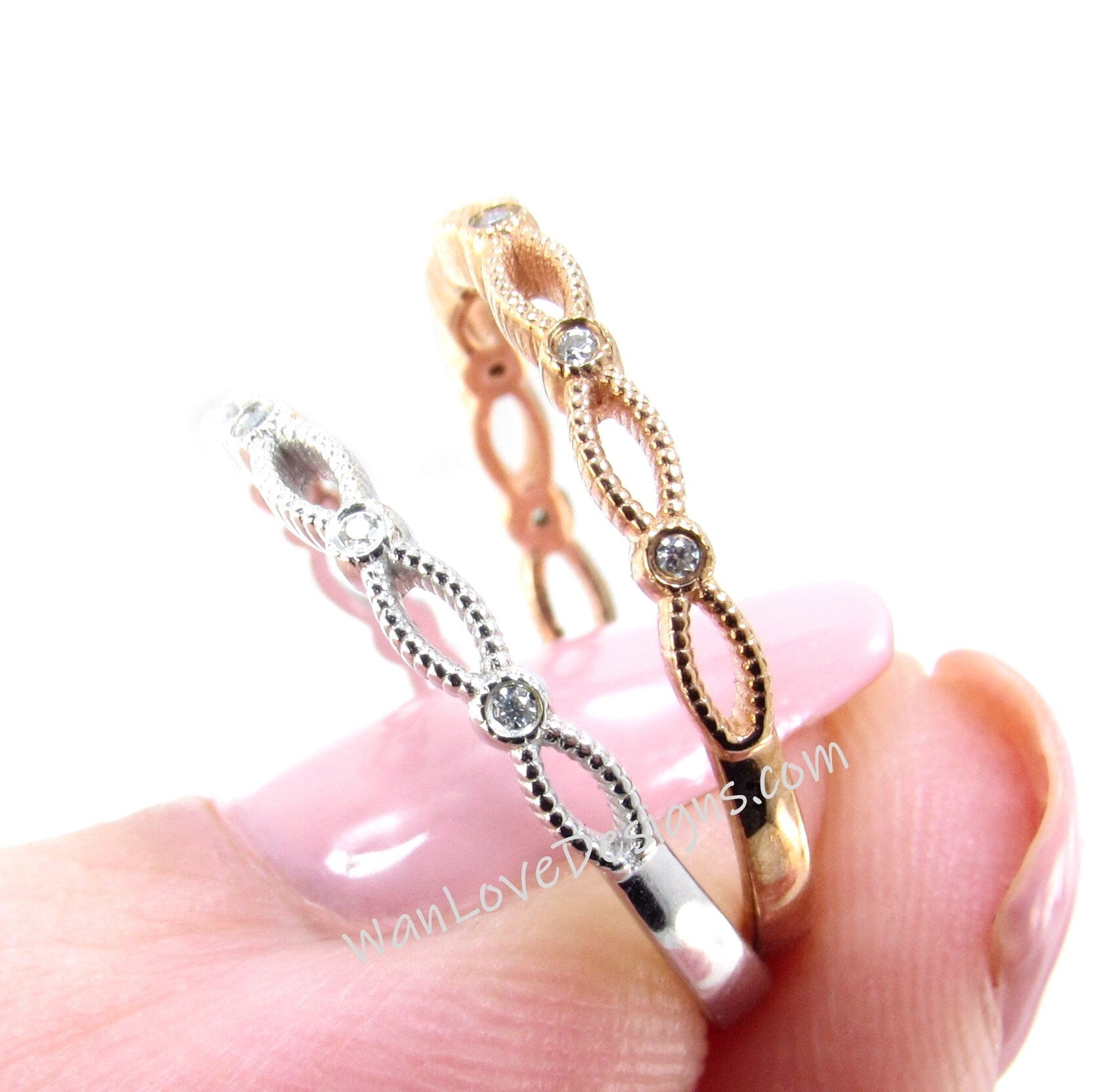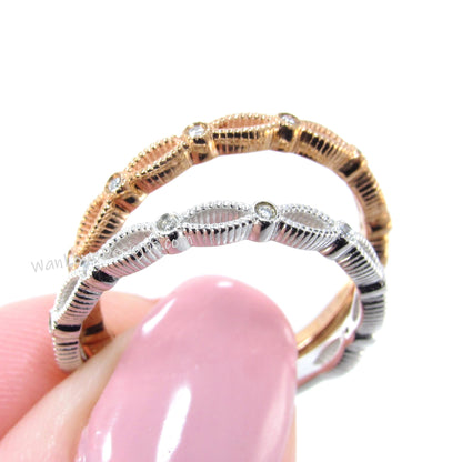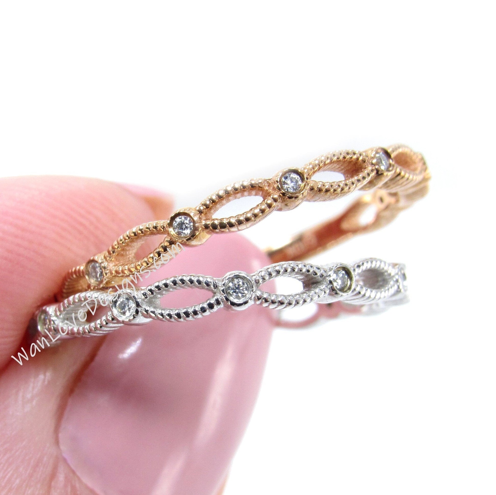 Diamond Rope Twist Stack Rings/ Dainty Moissanite Textured Bands/ 18K Rose Gold Bridal Rings/ Twisted Women Rings/ Minimalist Ring For Her