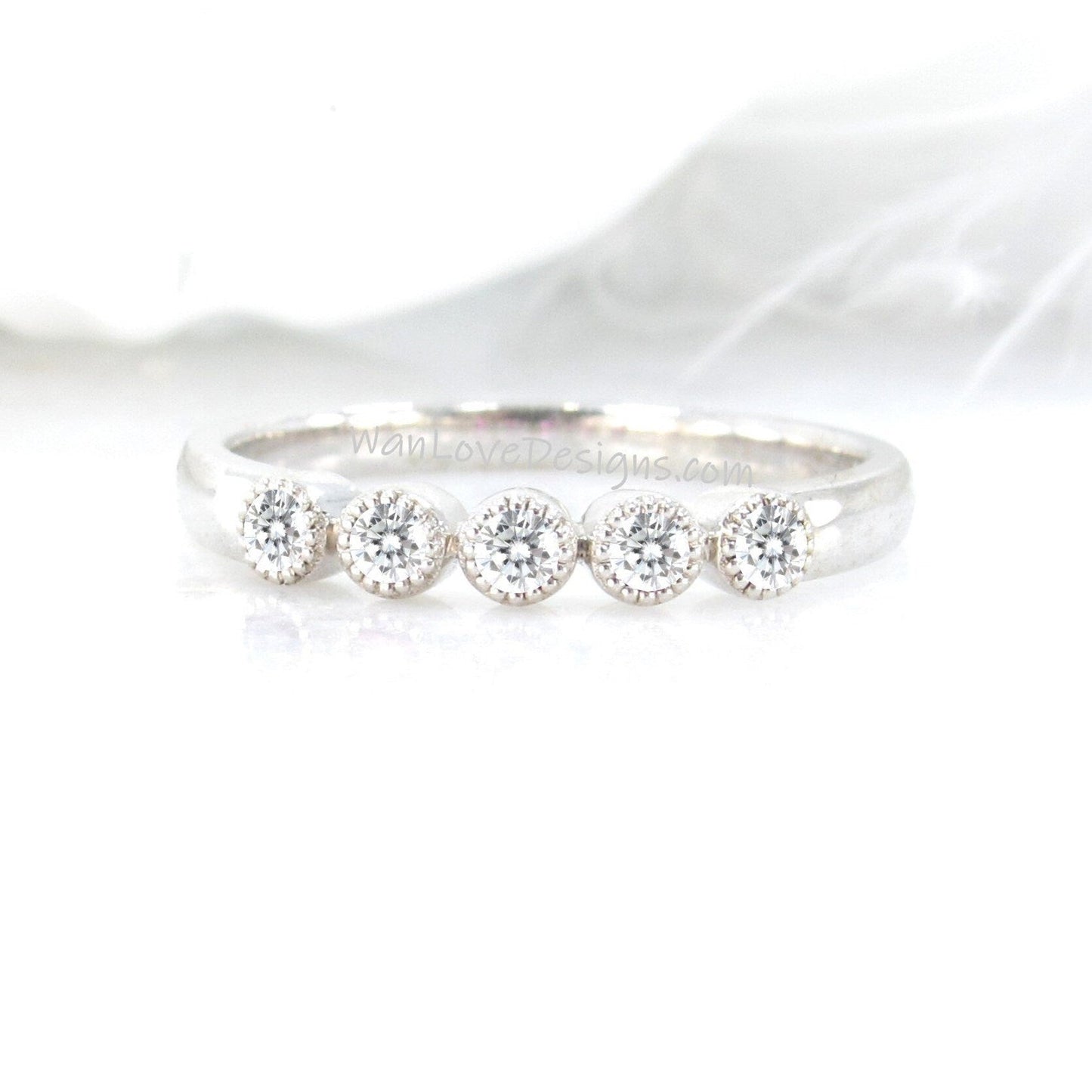 Moissanite Diamond Ring, Moissanite Lab Diamond Band, Anniversary Band, 5 Stone Anniversary Band, Gold Bezel Wedding Band, Art Deco Rings