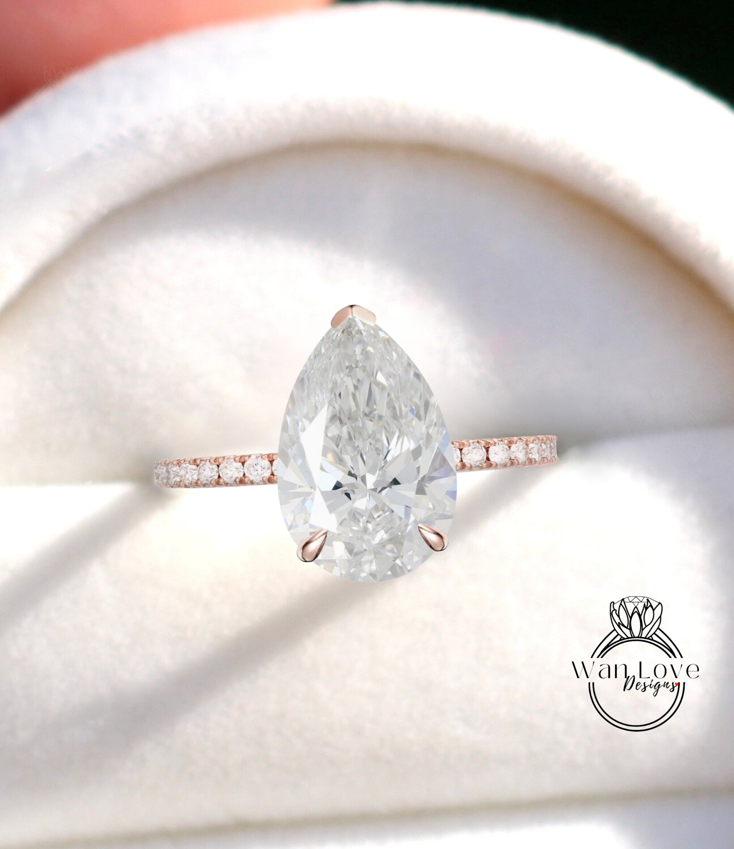 Diamond Pear engagement ring half eternity Lab Diamond ring white gold prong ring Art deco Solitaire wedding bridal Anniversary promise gift