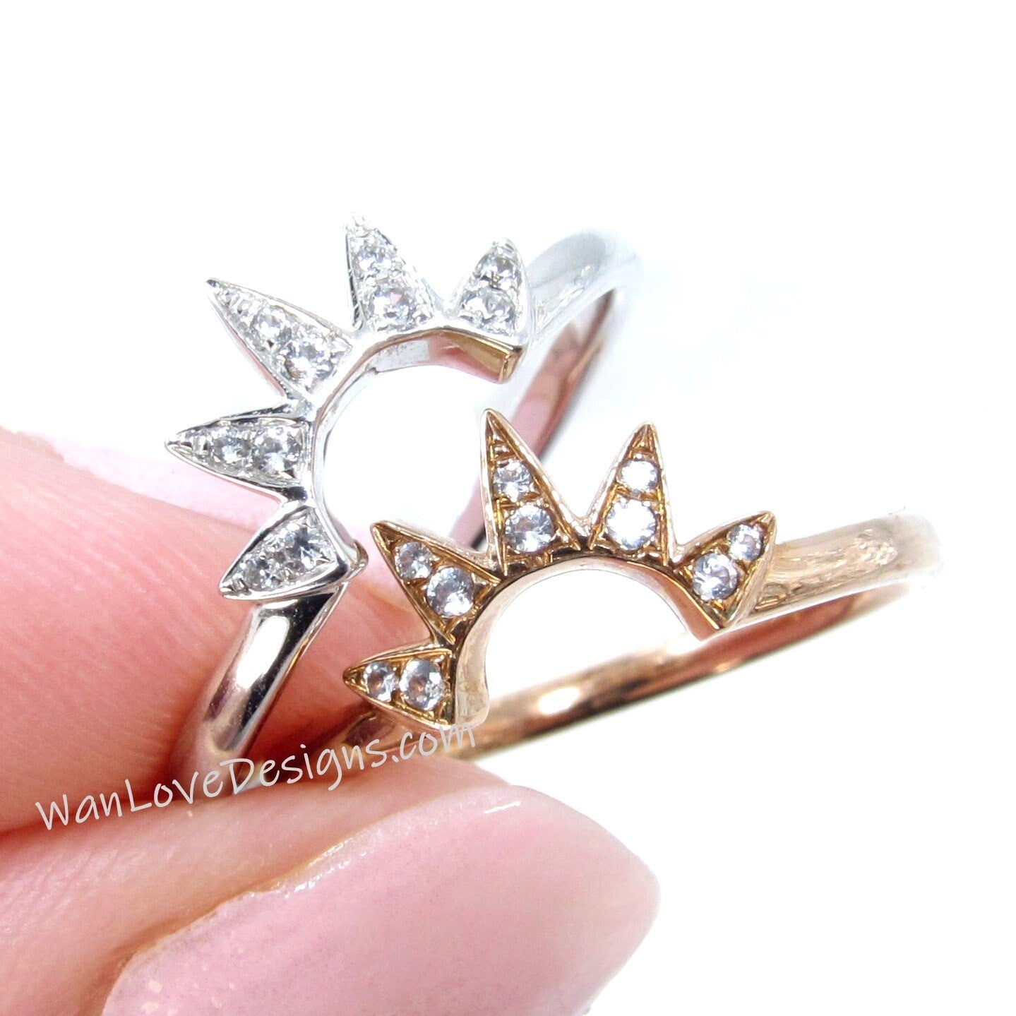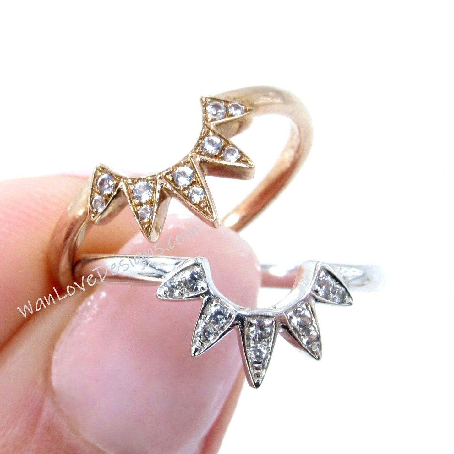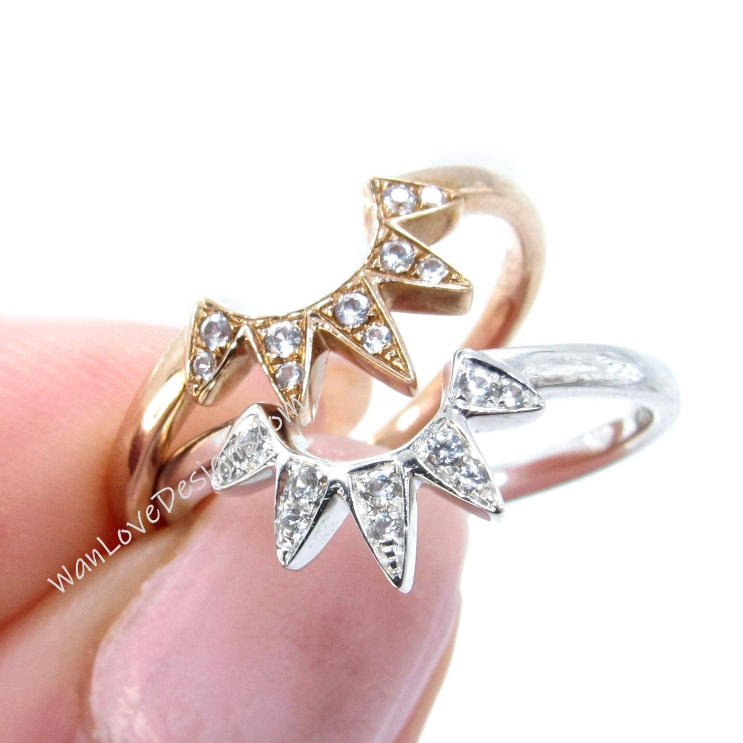 14K Gold Diamond Curved Tiara Ring/Diamond Shimmering Ring/Gold U Shape Ring/Perfect Matching Band/Stacking Ring/Wedding Band/Starburst Band