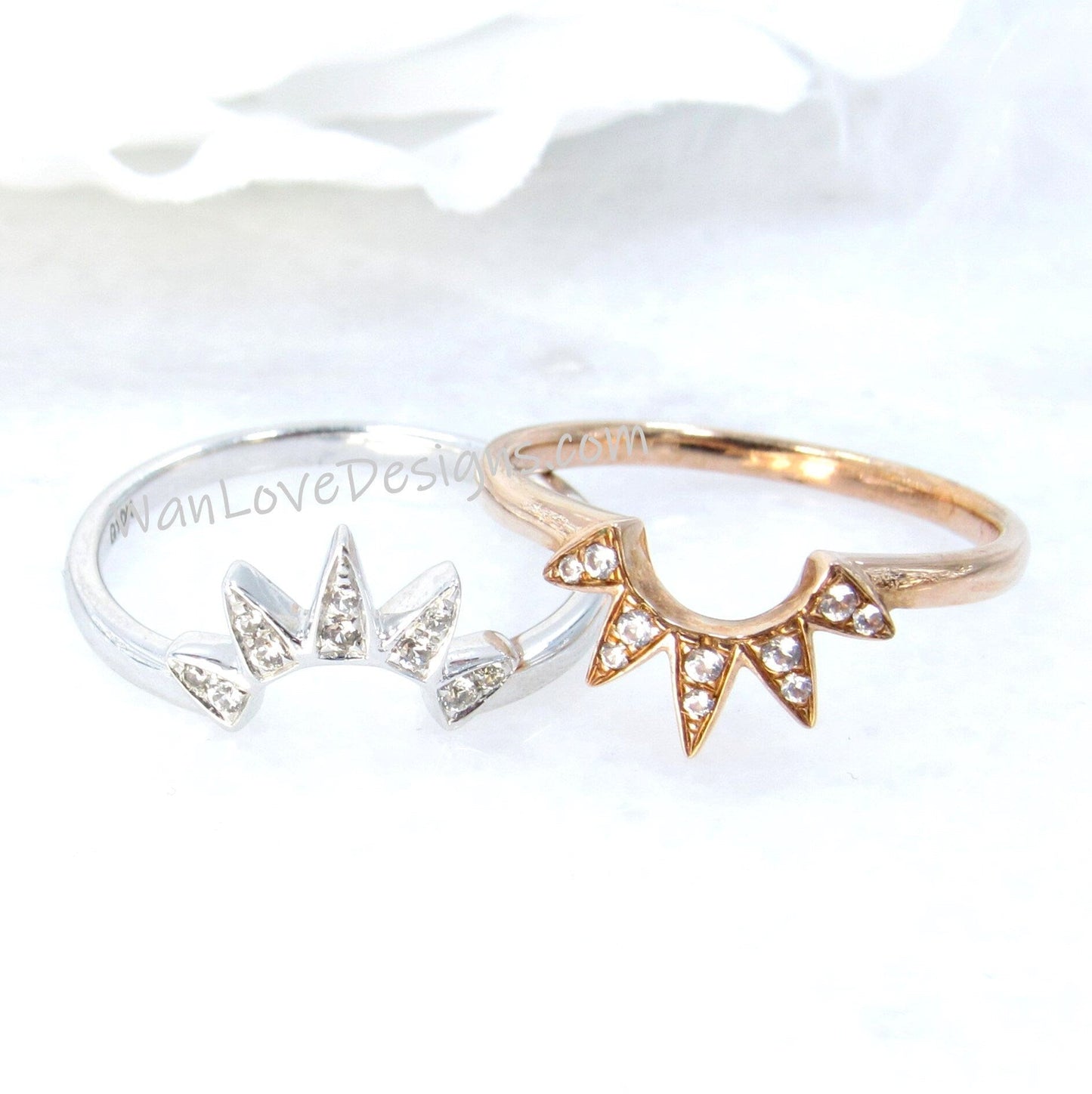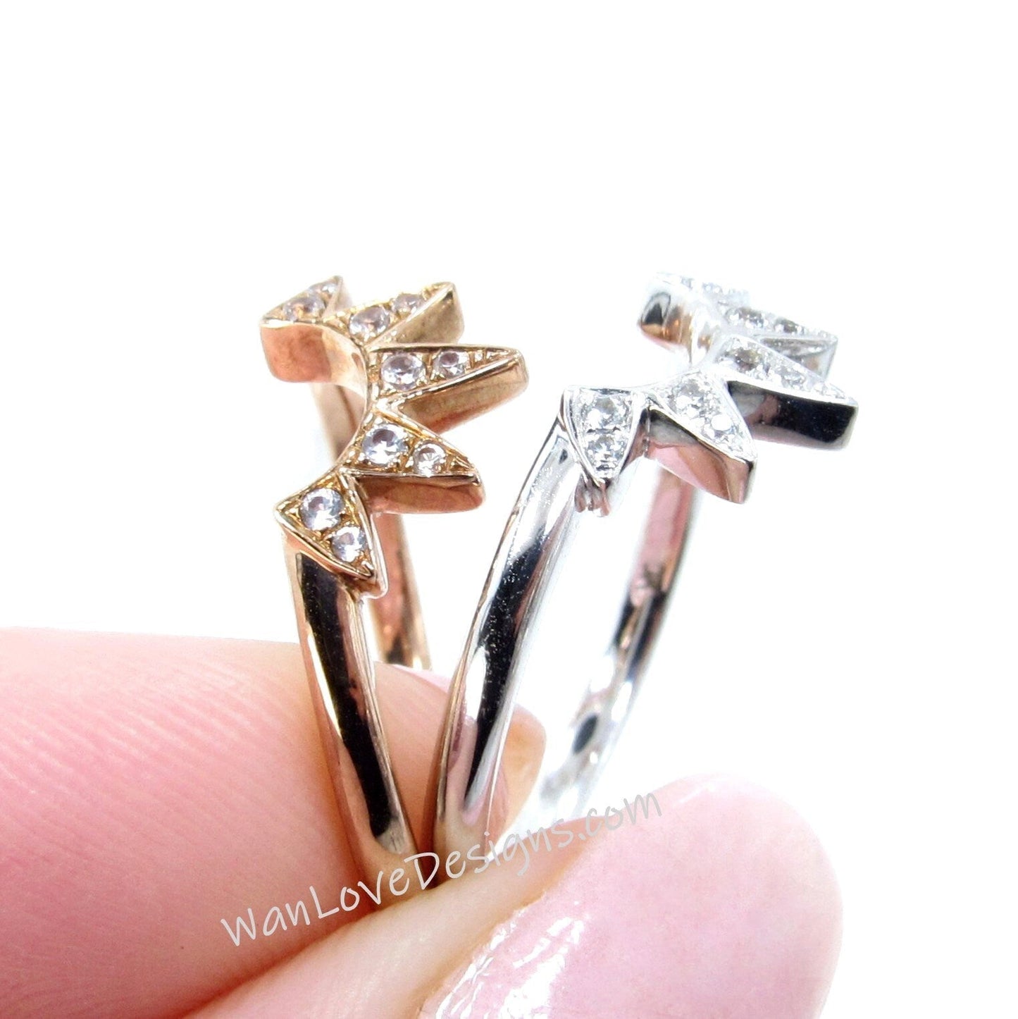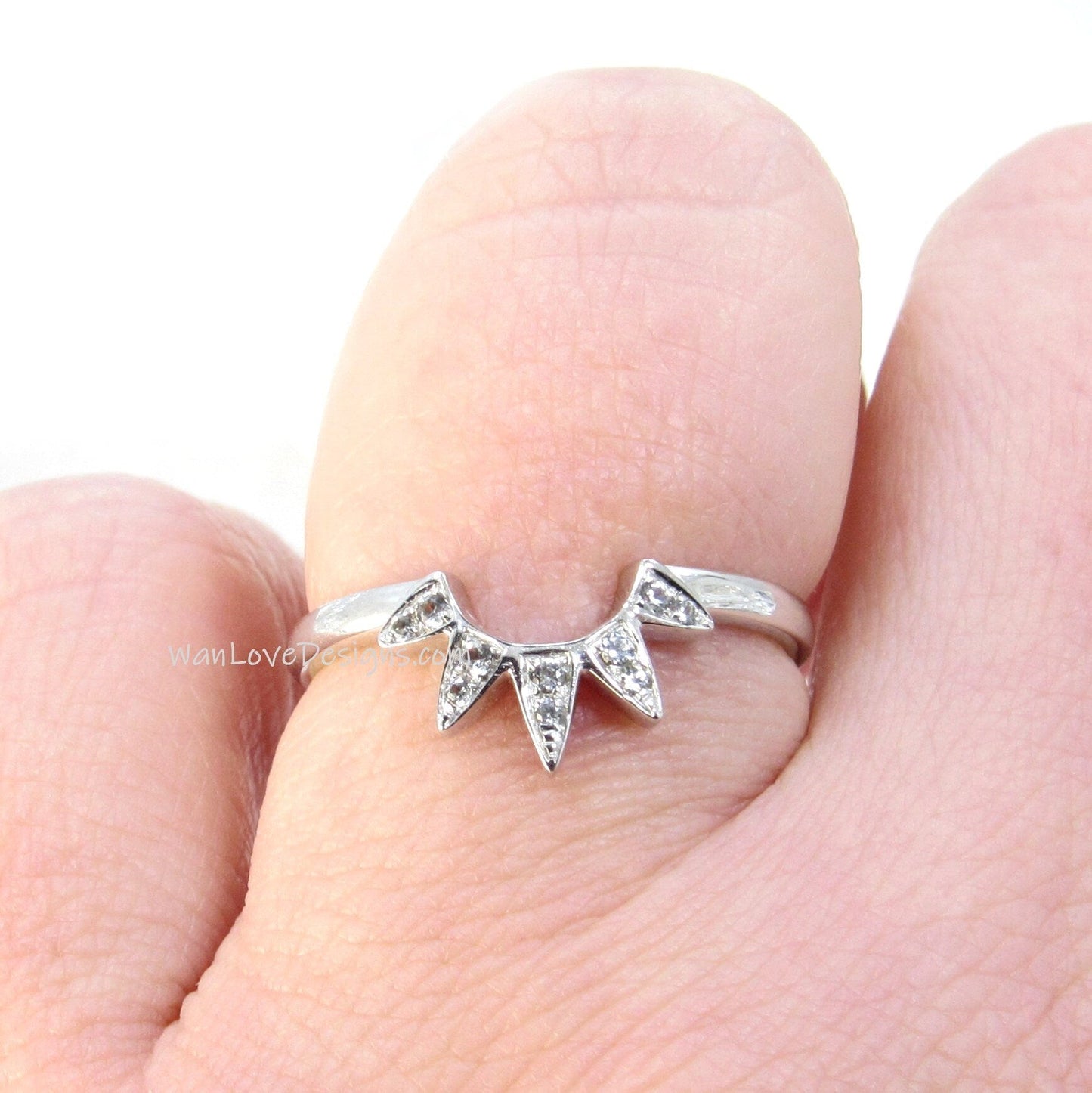 14K Gold Diamond Curved Tiara Ring/Diamond Shimmering Ring/Gold U Shape Ring/Perfect Matching Band/Stacking Ring/Wedding Band/Starburst Band
