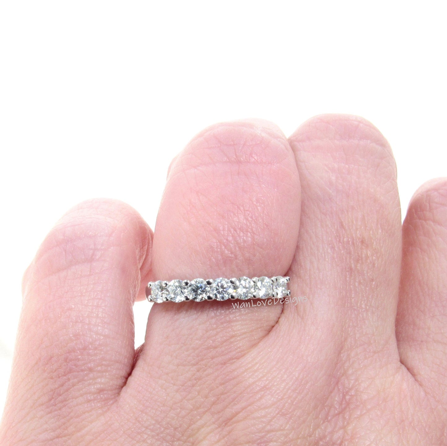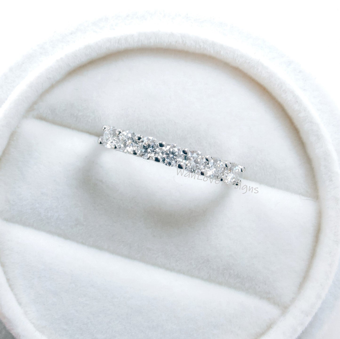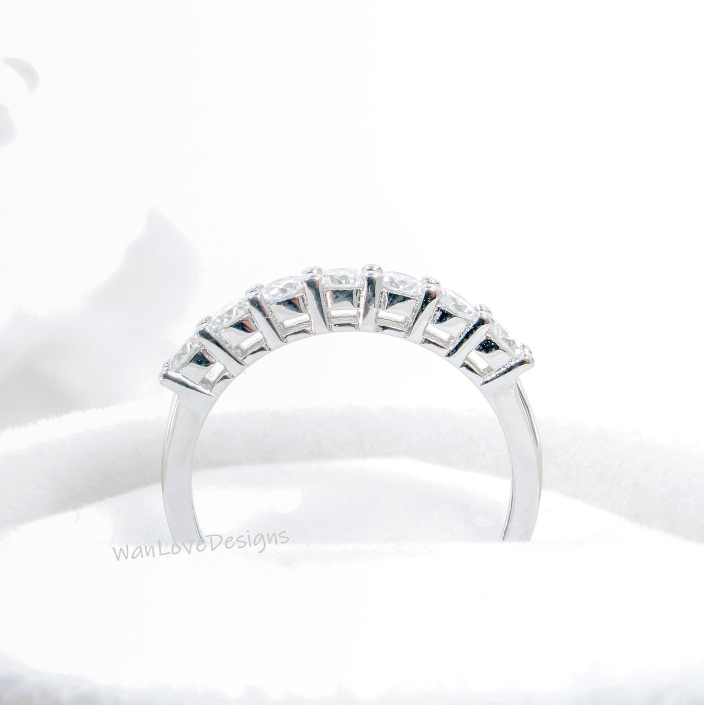 Diamond Wedding Band, 7 Gem Stone Ring, Moissanite Wedding Band, Stackable Bands, Shared prong Gold 14k Bridal Band, Birthstone Gem Choice