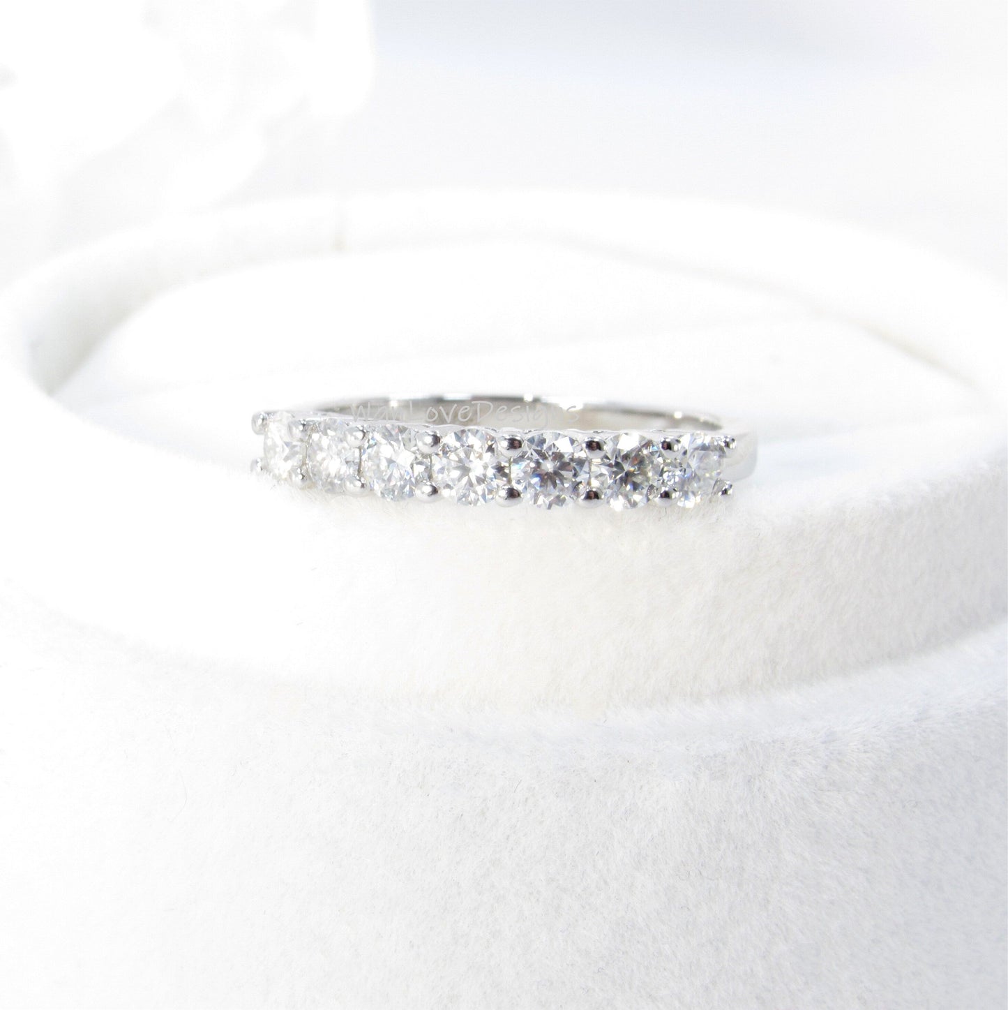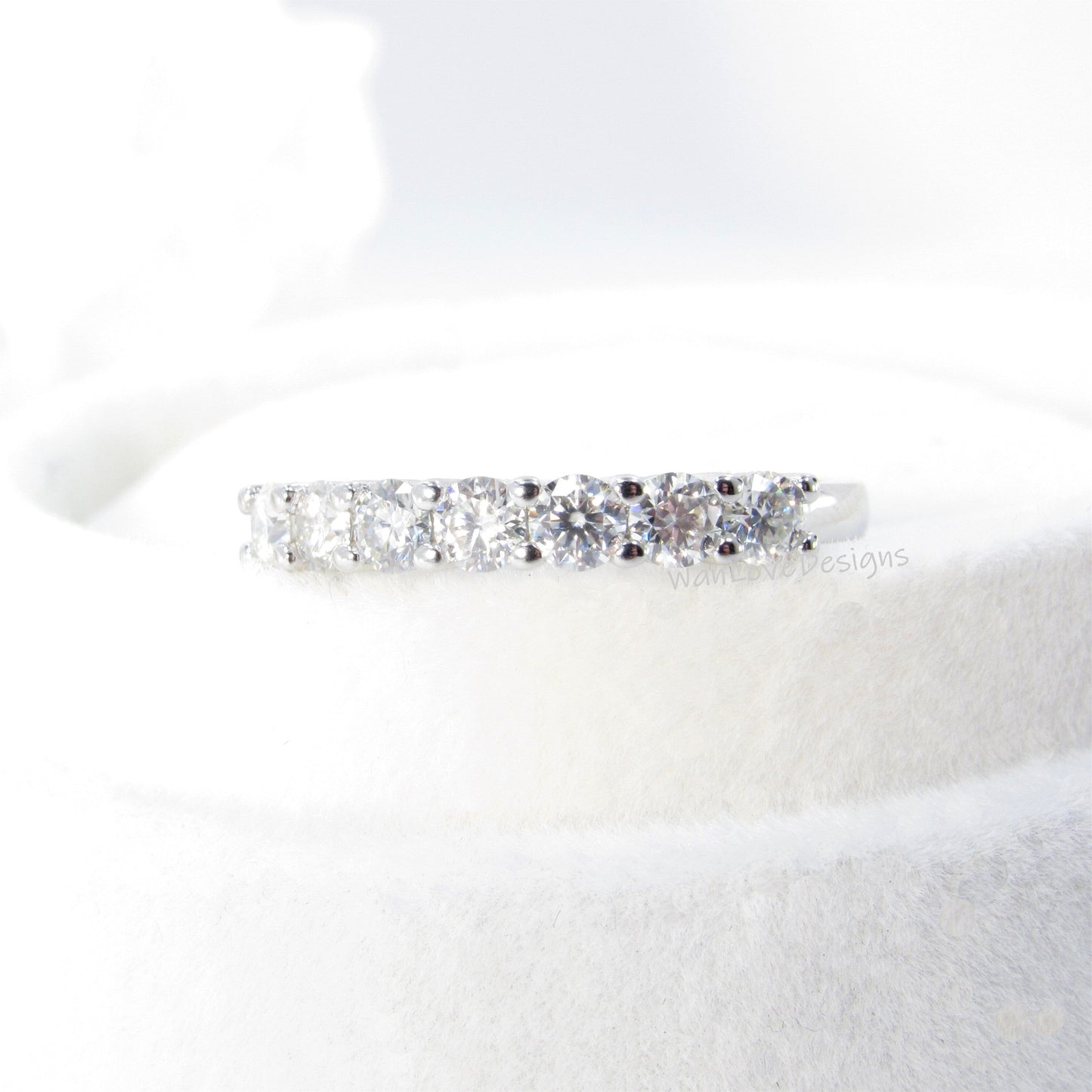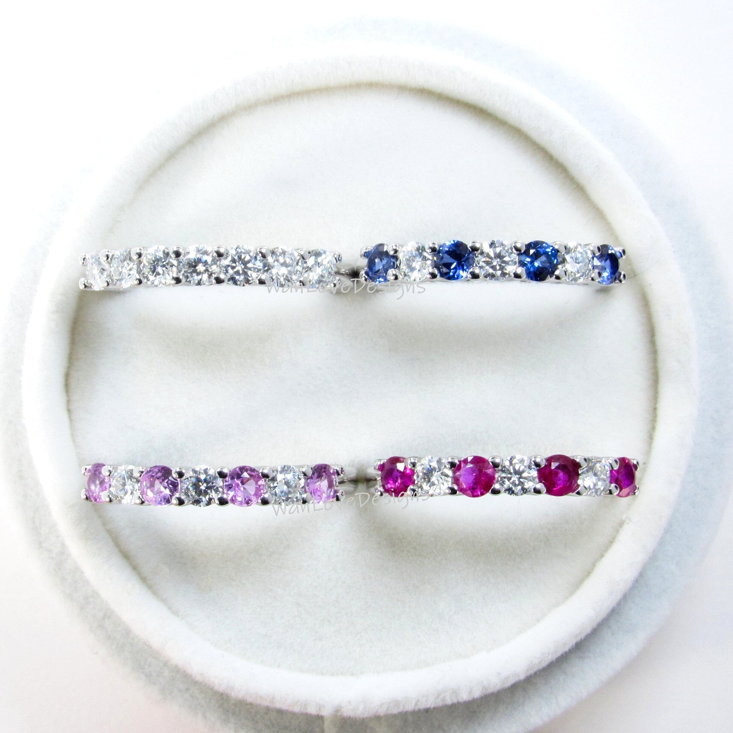 Diamond Wedding Band, 7 Gem Stone Ring, Moissanite Wedding Band, Stackable Bands, Shared prong Gold 14k Bridal Band, Birthstone Gem Choice