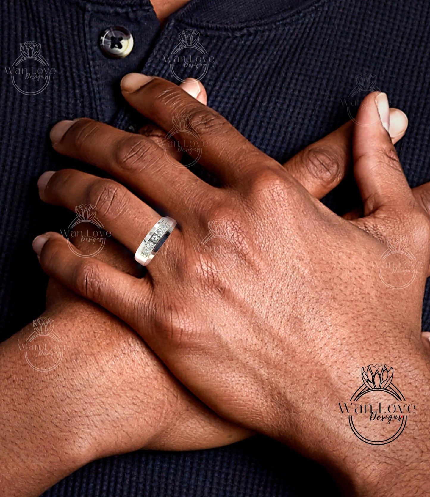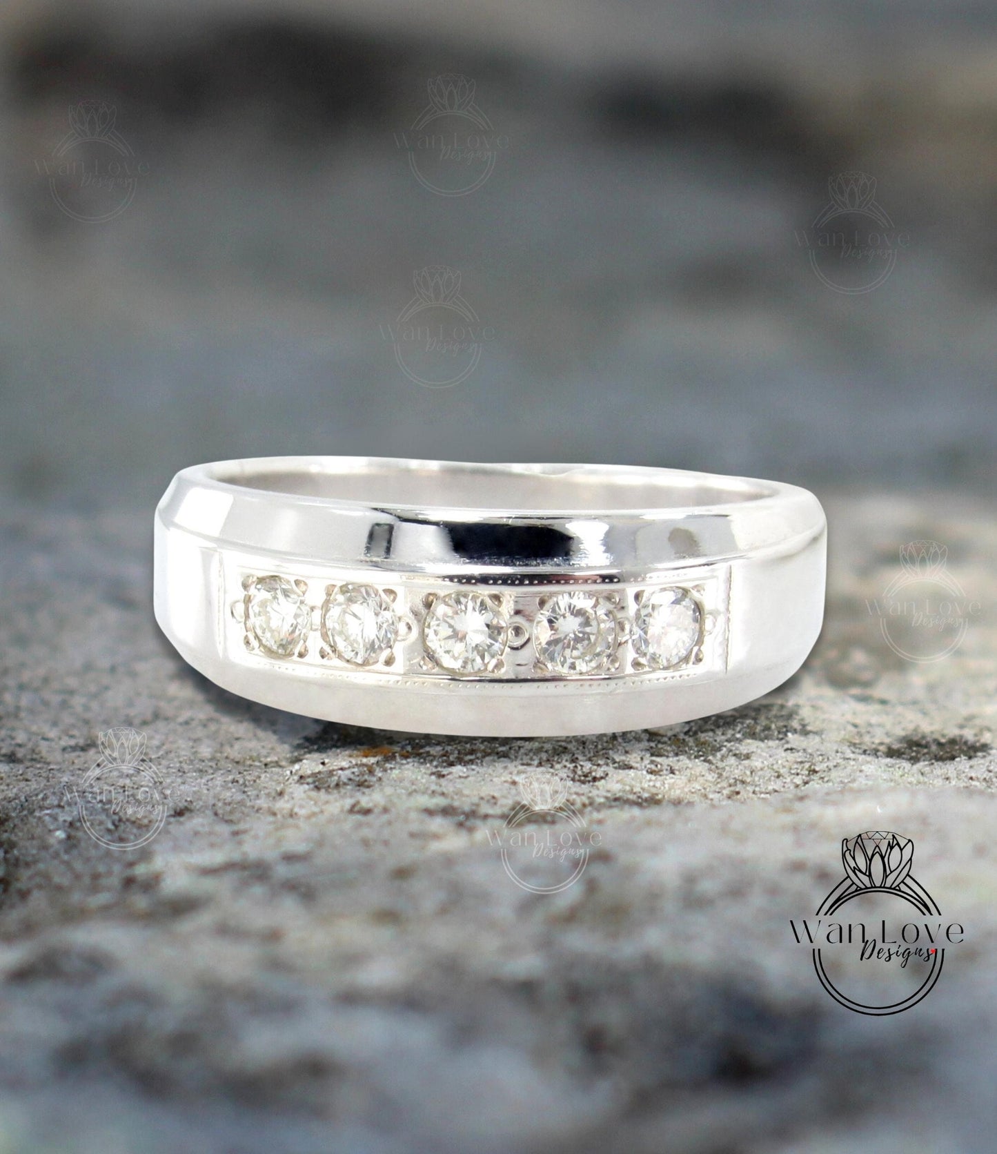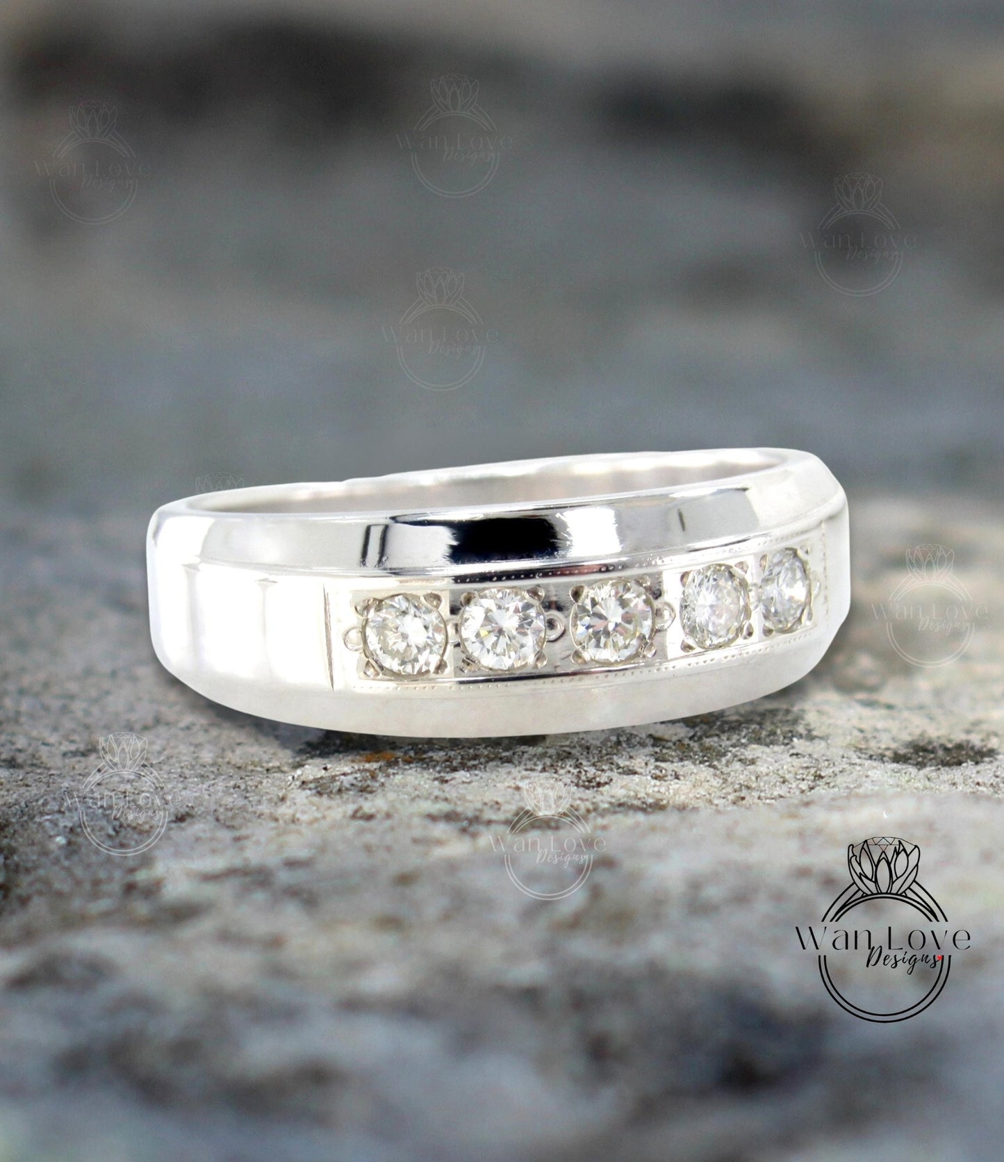 Diamond Wedding Band Mens Womens Unisex Ring .80ct 5 Diamonds Gem Stone Round 14k White gold Engagement Anniversary Gift-Ready to ship
