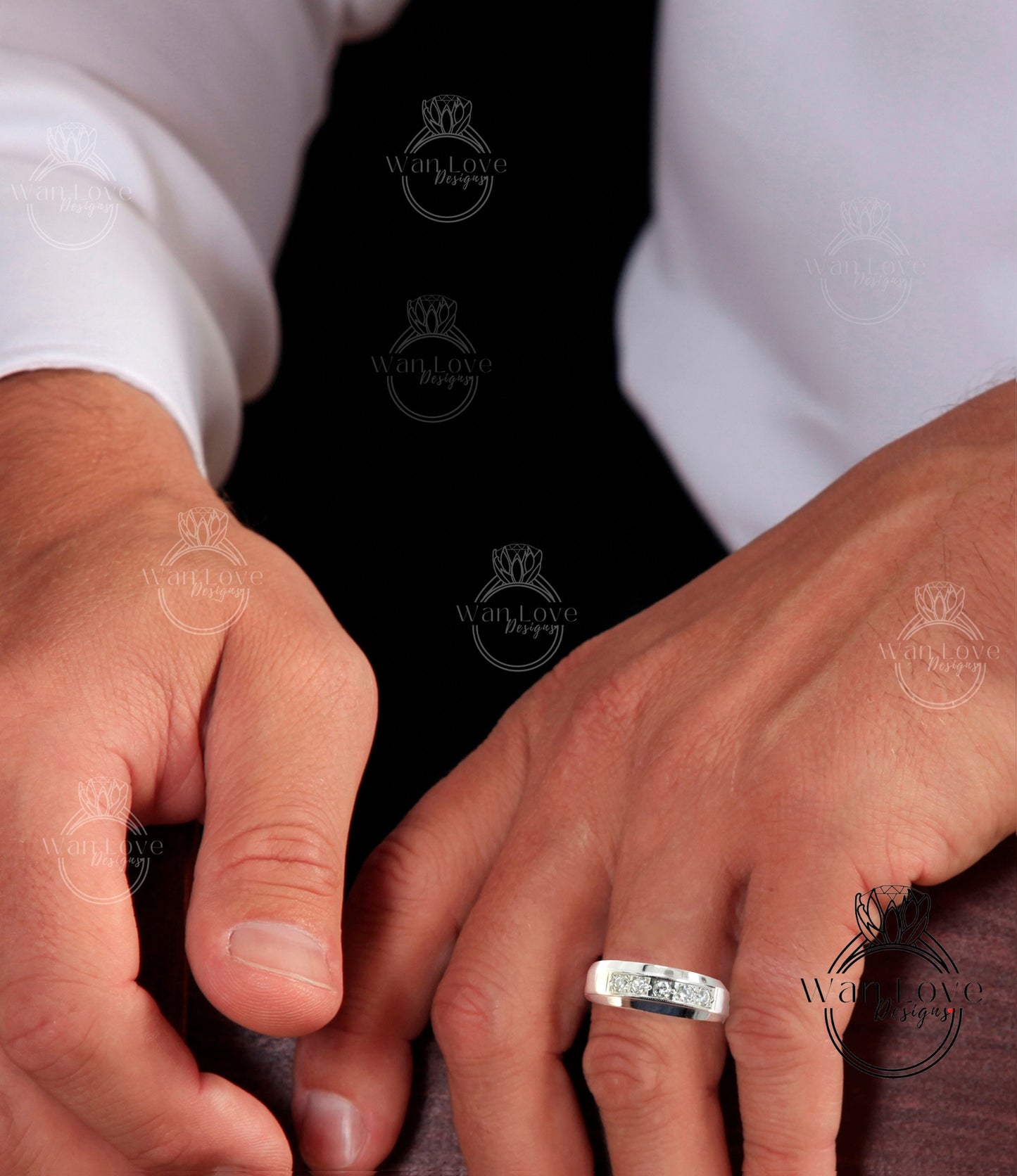 Diamond Wedding Band Mens Womens Unisex Ring .80ct 5 Diamonds Gem Stone Round 14k White gold Engagement Anniversary Gift-Ready to ship.
