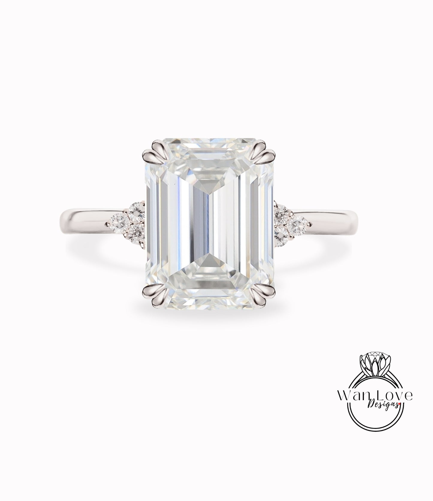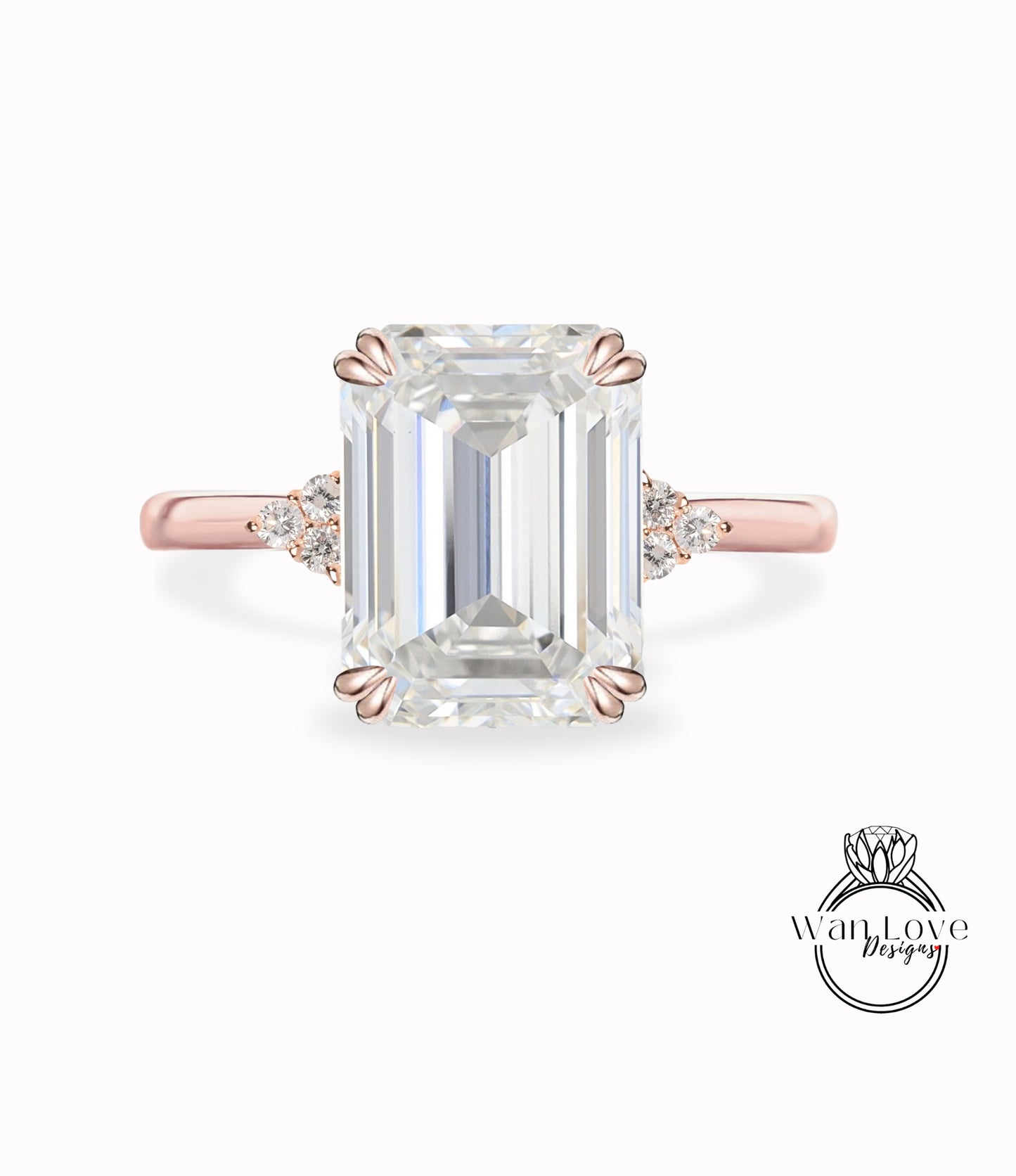 Emerald cut Diamond Cluster engagement ring Tapered plain band Lab Diamond ring rose gold prong ring Art deco wedding bridal Anniversary promise ring