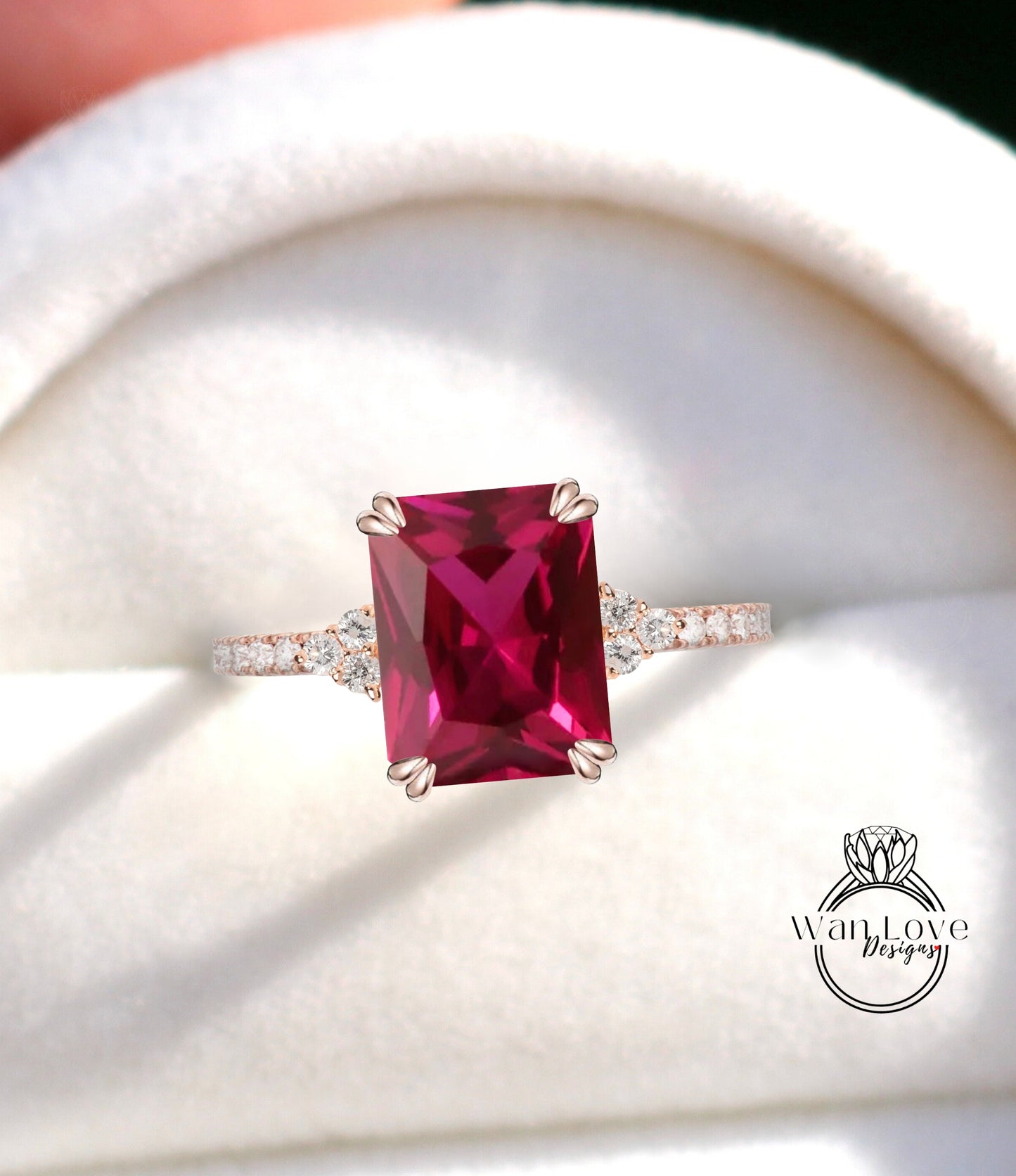 Emerald cut Ruby engagement ring vintage diamond Cluster gold engagement ring for women Bridal anniversary gift for her