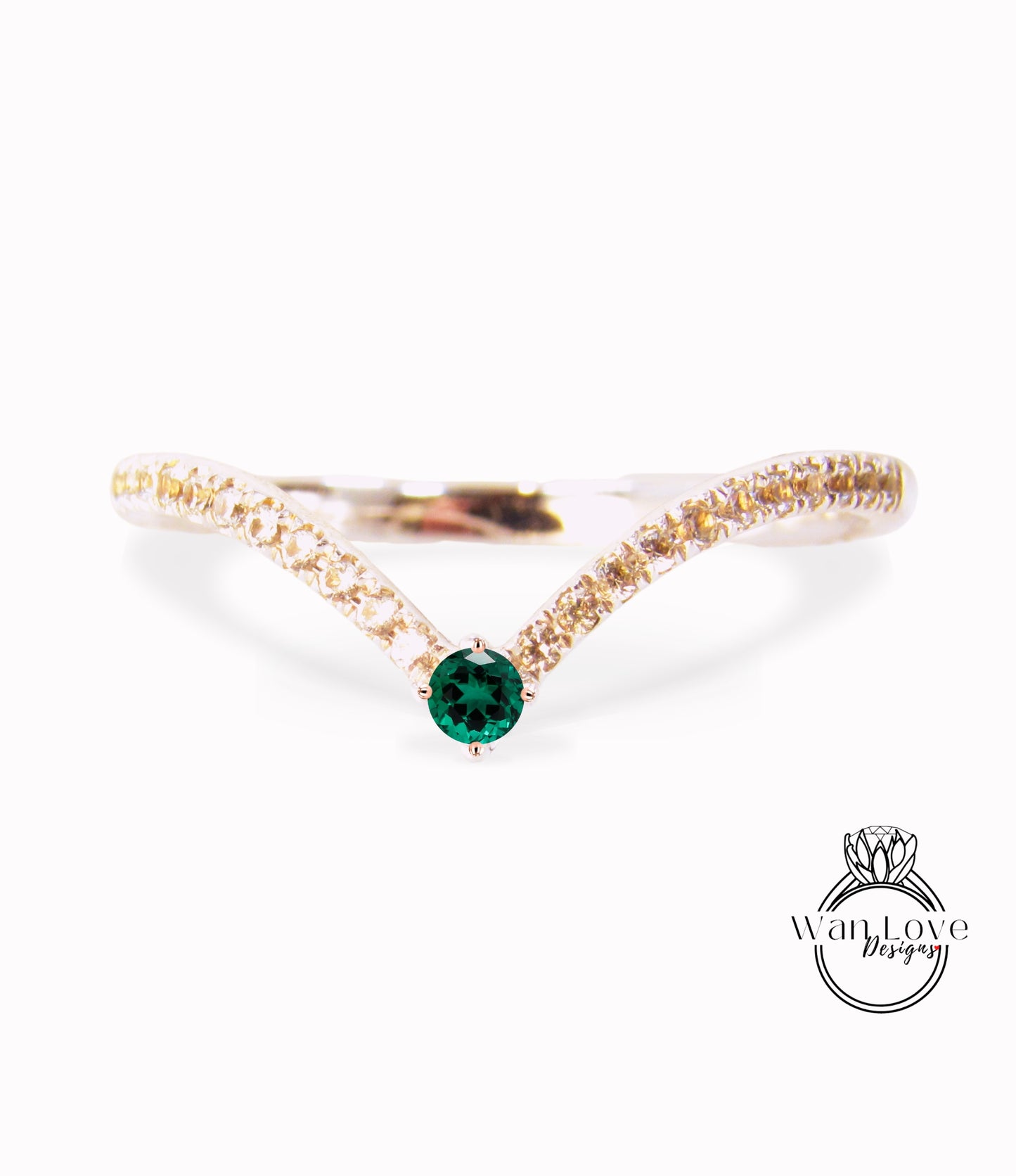 Emerald V Curved Stacking Ring • Diamond Chevron Ring, Thin Gold Minimalist Ring • Dainty Tiara Wedding Ring • Gift for Her