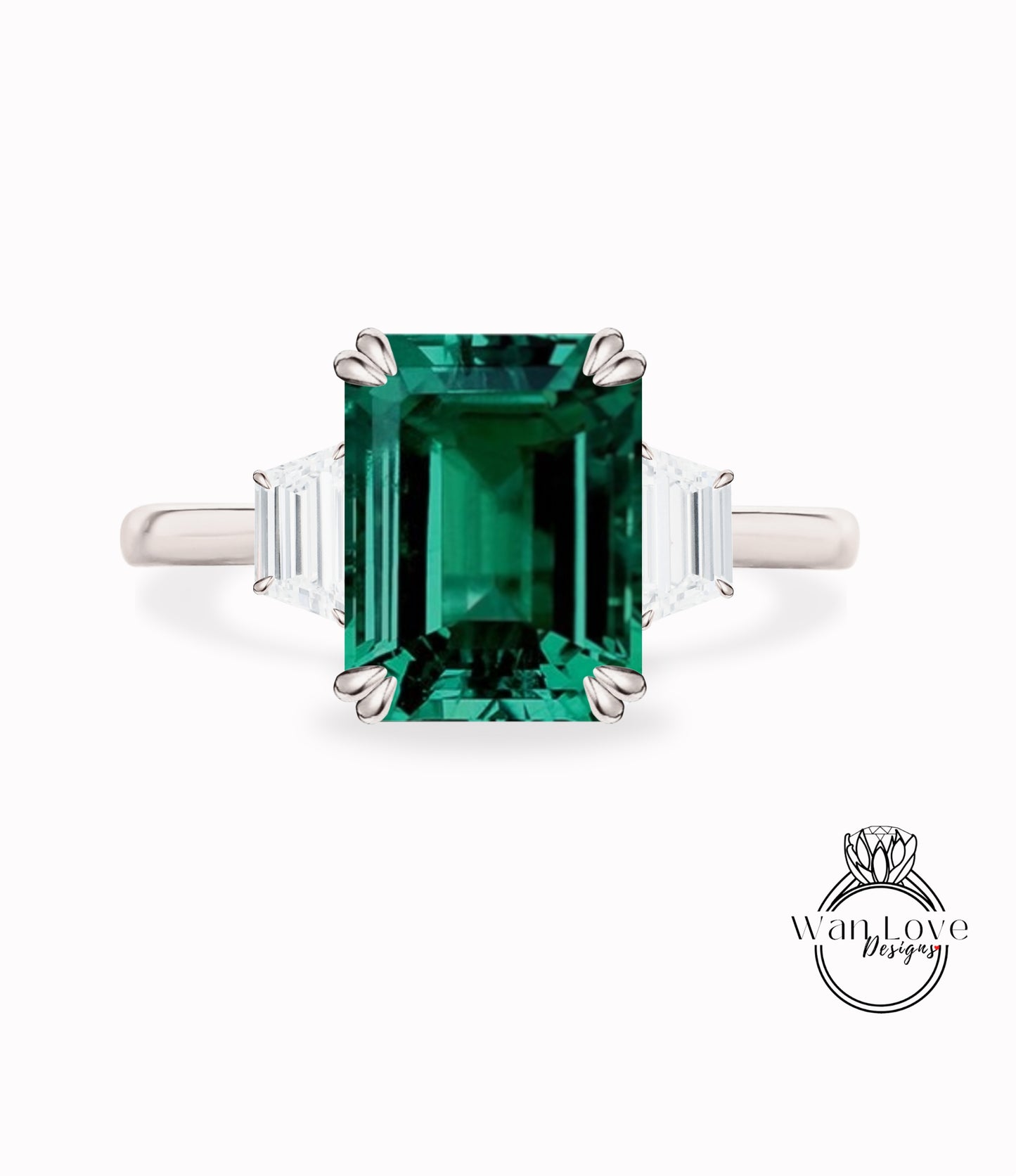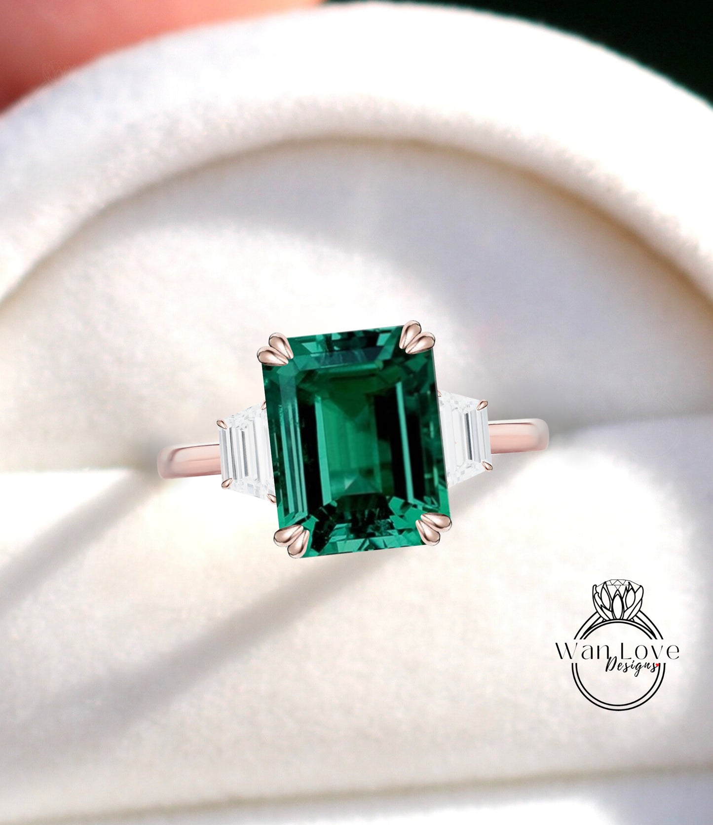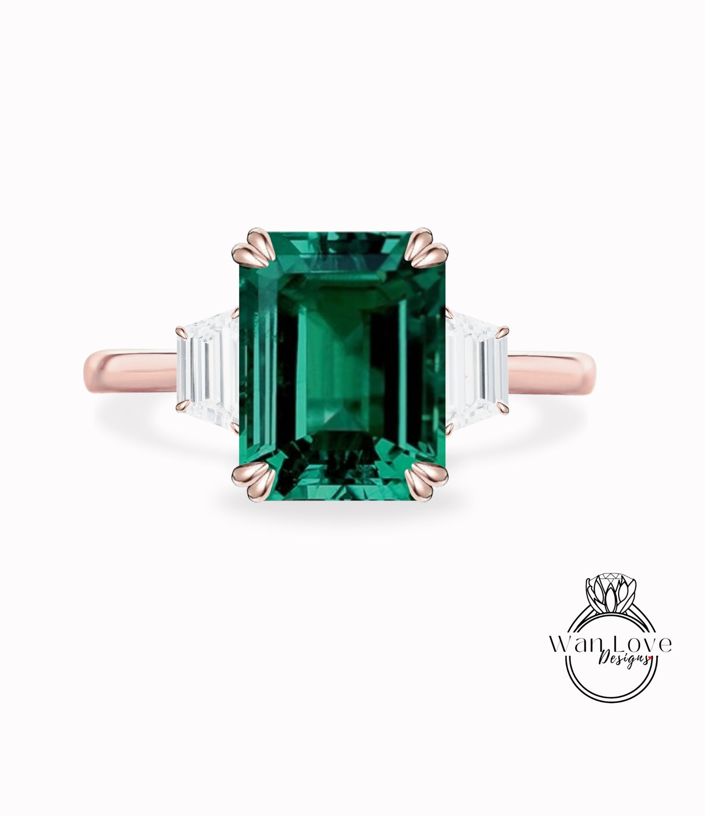 Emerald Moissanite Engagement Ring Emerald cut 14K/18K rose gold ring vintage trapezoid art deco ring wedding Bridal Anniversary gift