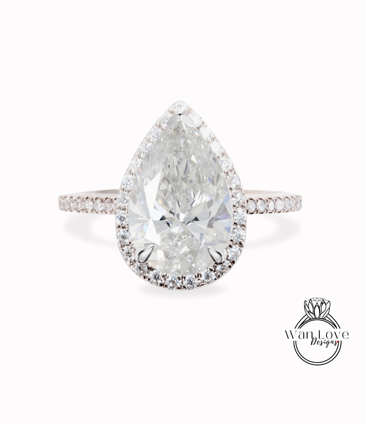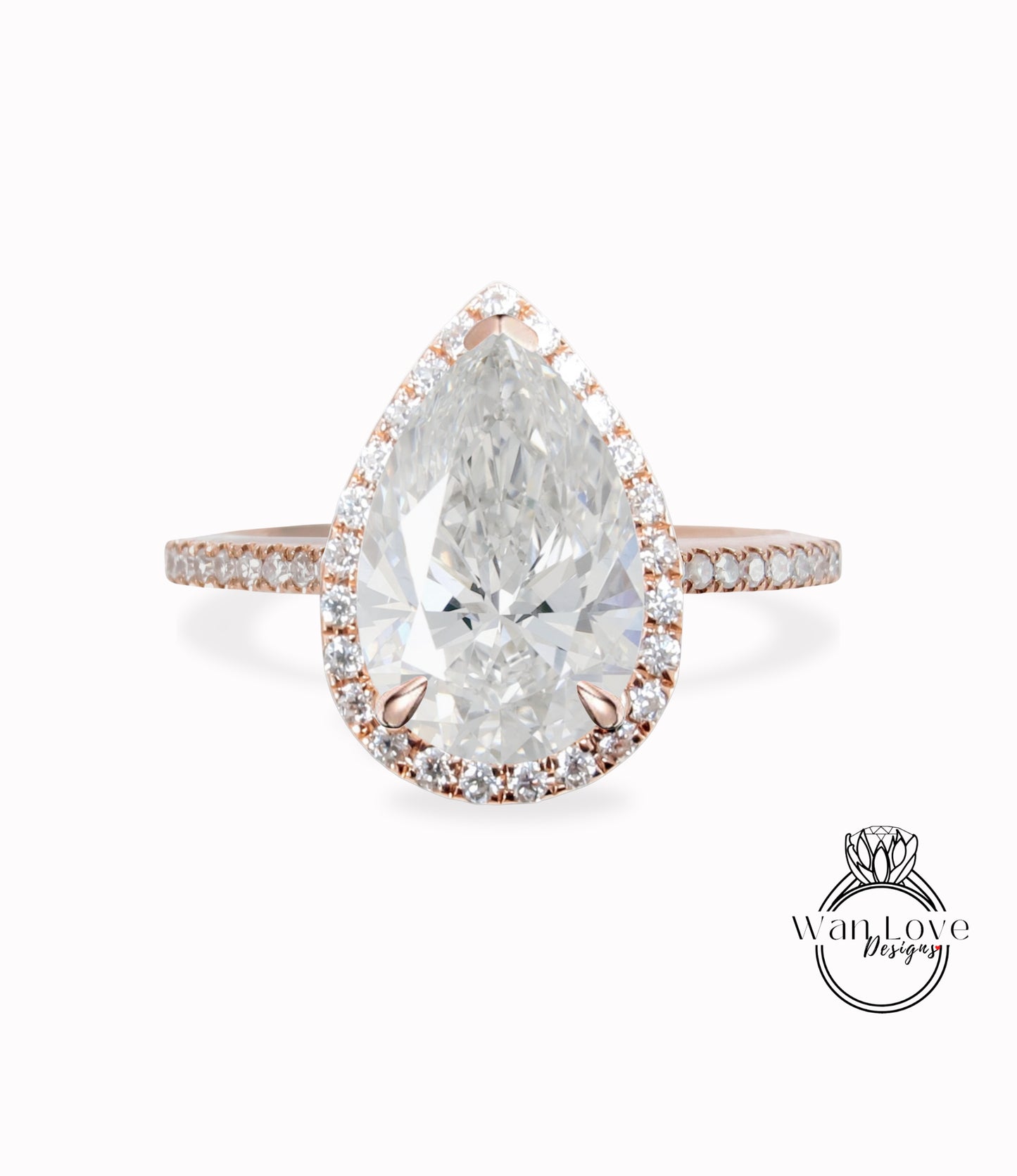 Pear Diamond engagement ring lab diamond halo ring half eternity vintage art deco 14K/18K rose gold ring anniversary promise ring gift her