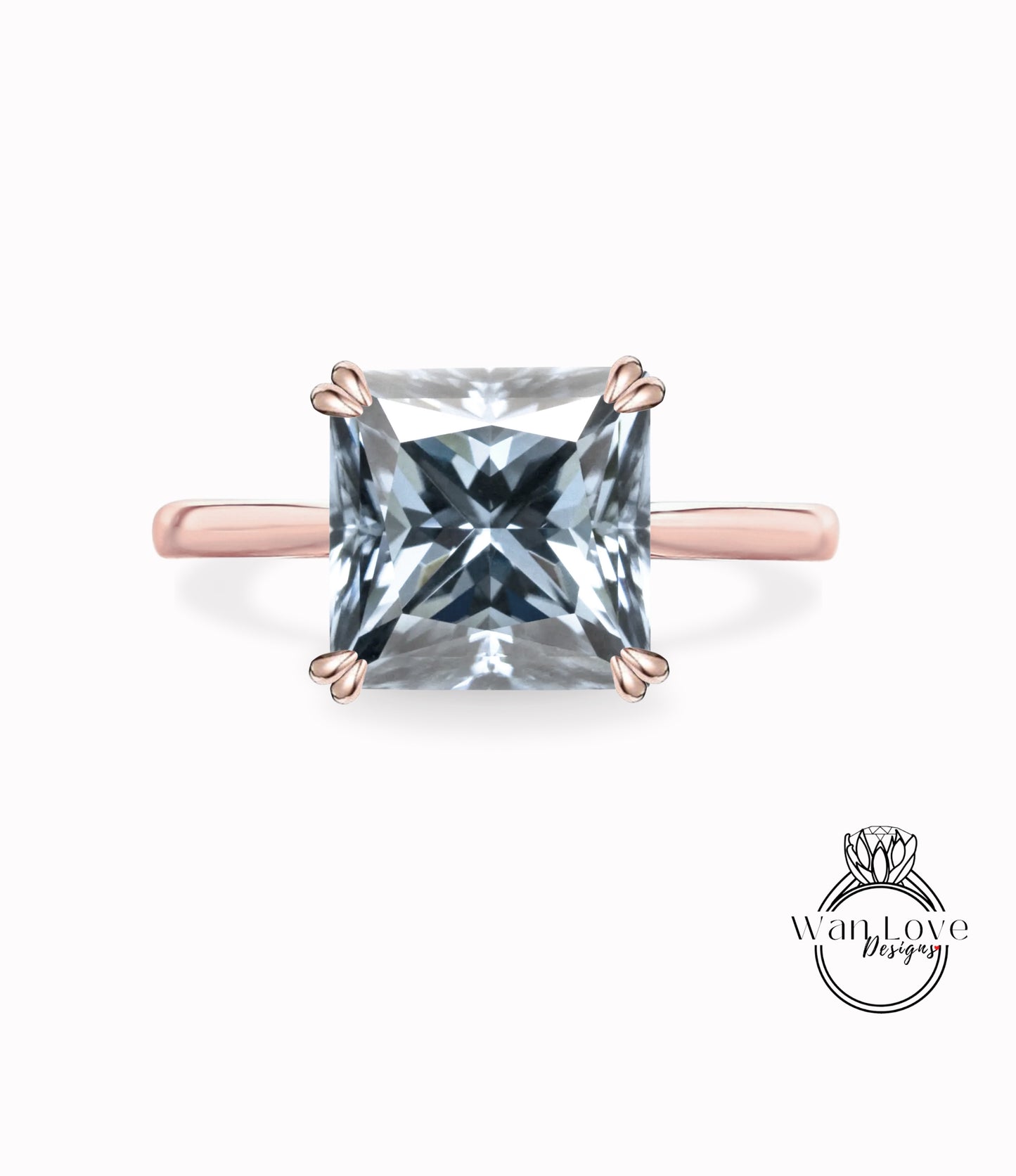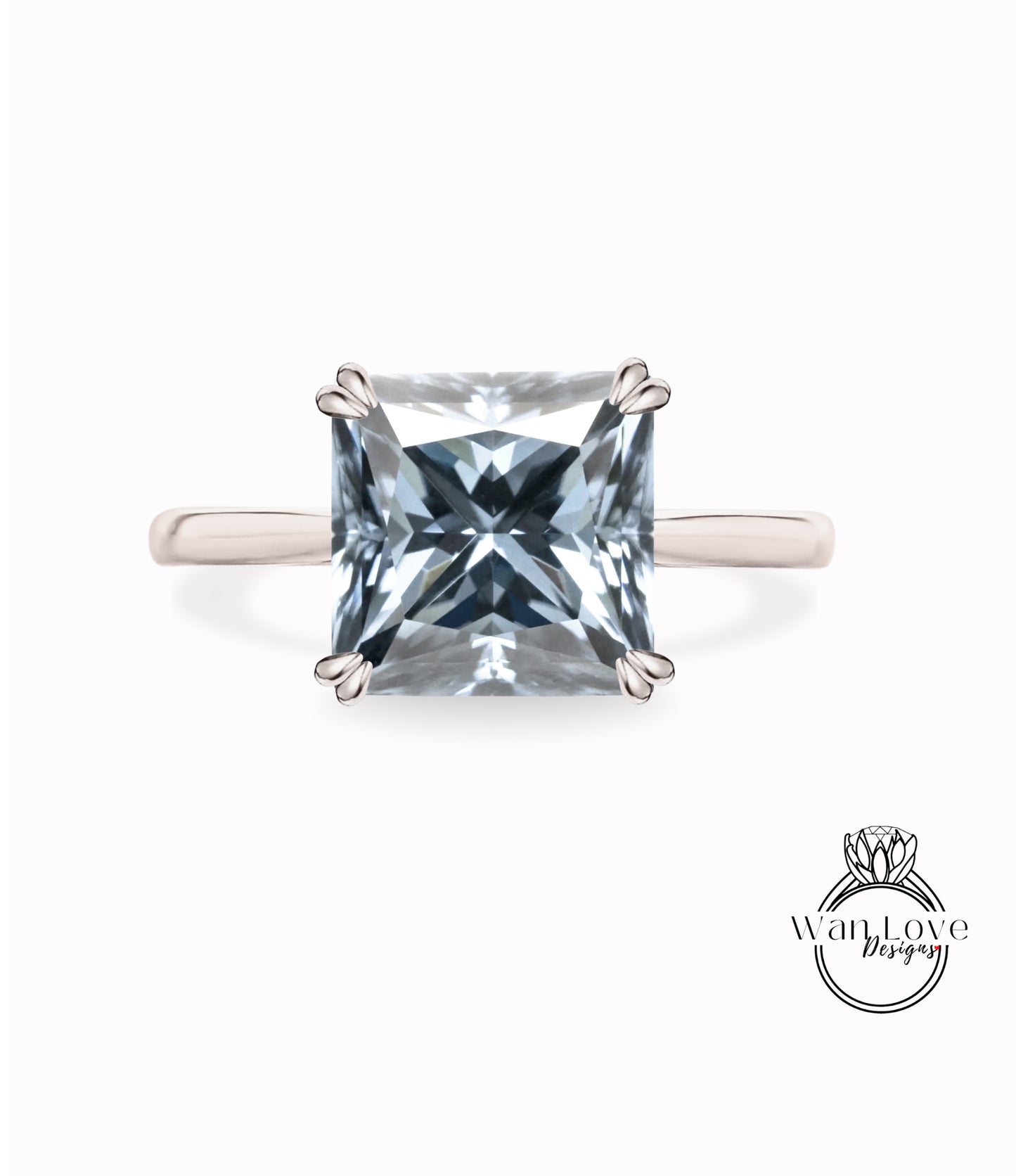Princess Gray Moissanite Solitaire Engagement Ring, 4 Prong Ring, Cathedral Ring, Custom-Wedding-Anniversary Gift, WanLoveDesigns.