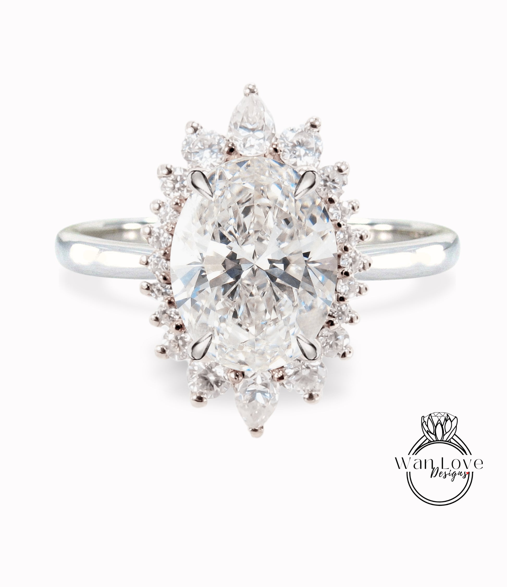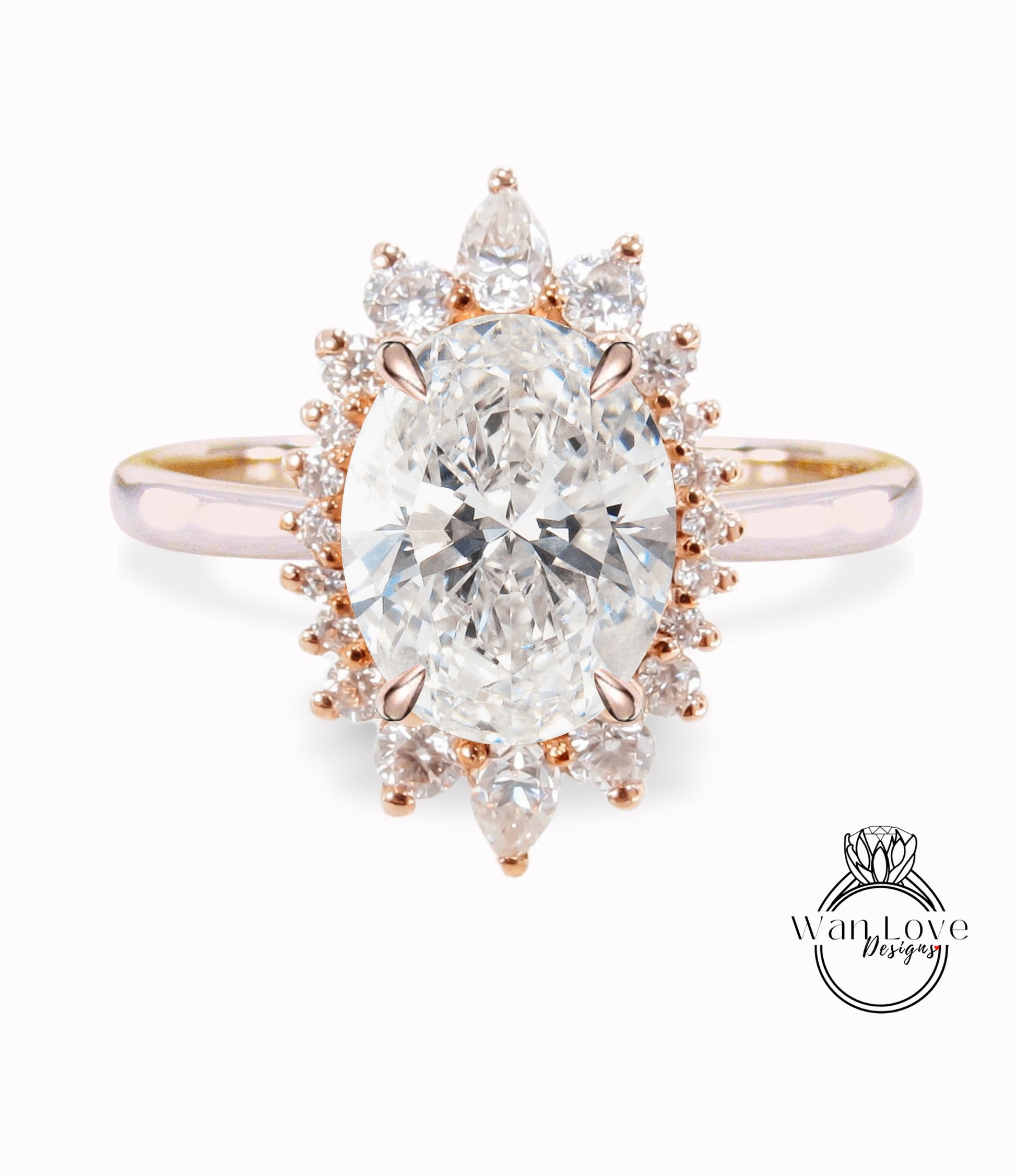 Halo Oval Diamond Engagement Ring, Halo Oval Diamond Engagement Ring, Rose Gold Oval Cluster floral Ring, Anniversary IGI Diamond Ring