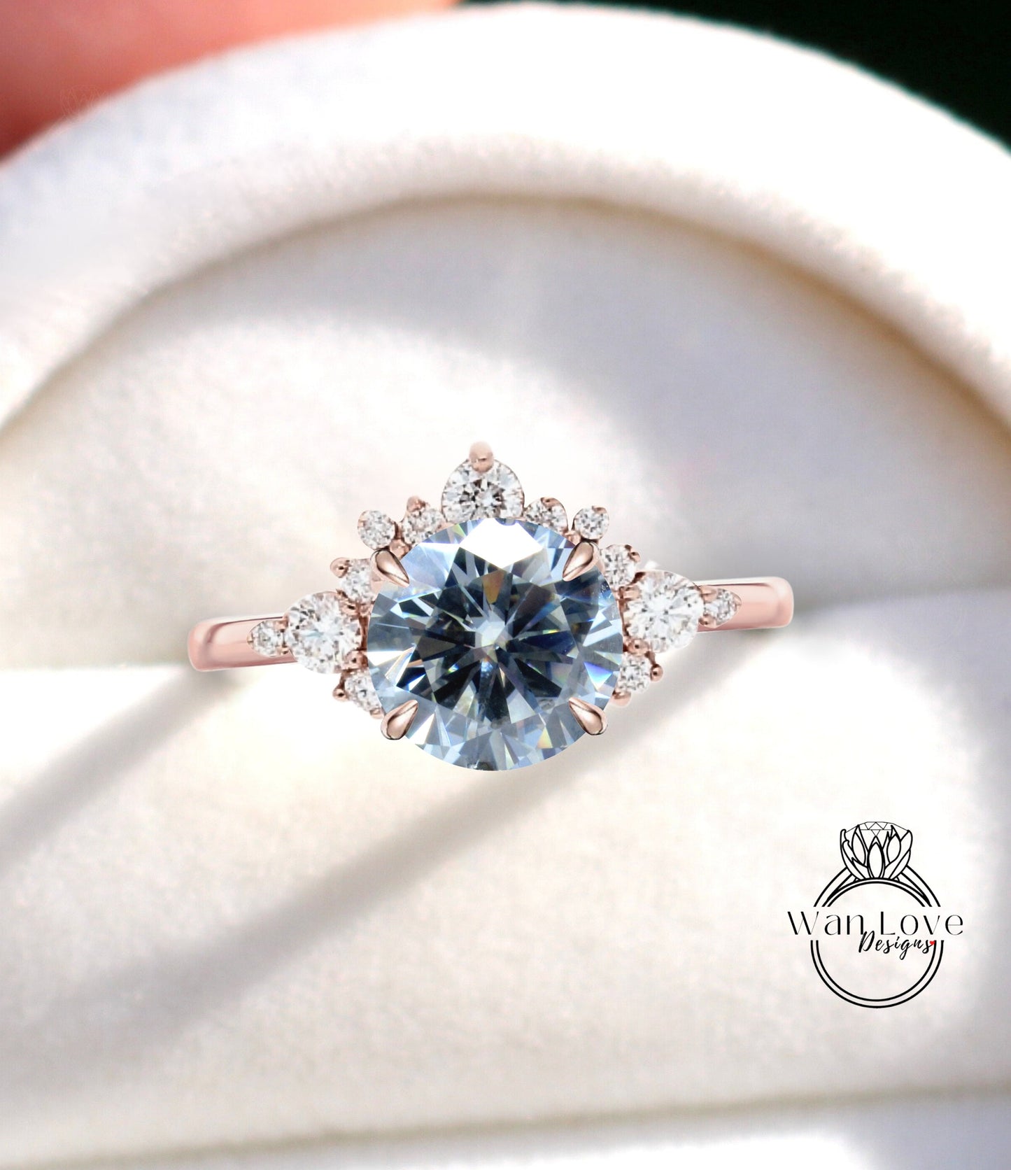 Grey Moissanite Cluster Half Halo engagement ring Diamonds Unique cluster round cut White Rose Gold Ring woman Promise Anniversary Gift