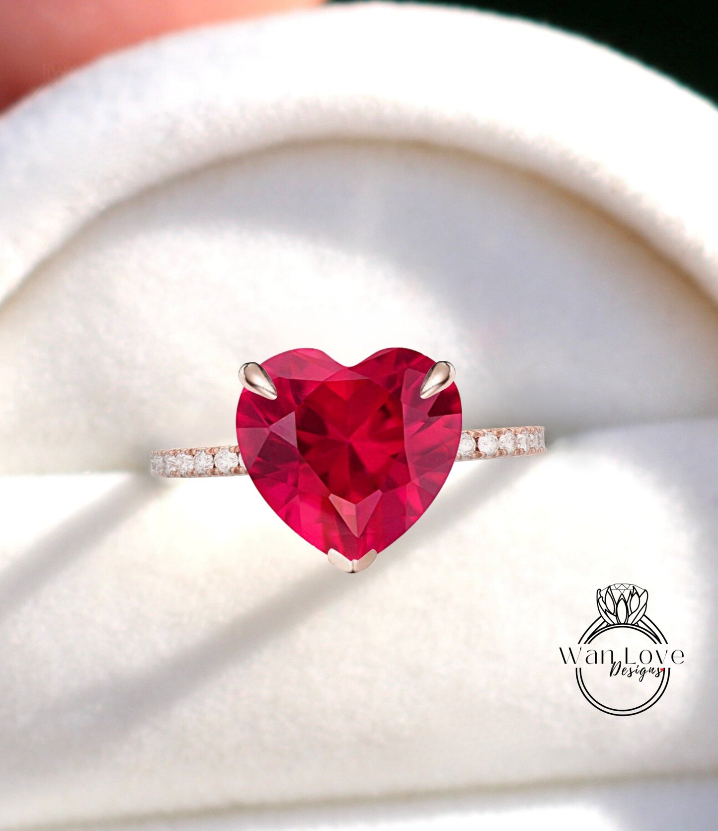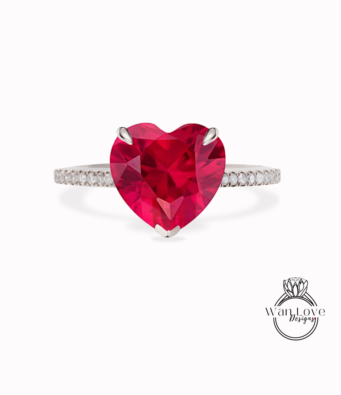 Heart cut Ruby Ring Heart Shaped Celebrity Engagement Ring 14k white Gold Ring Women Anniversary Gift Ring Bridal Gift Ring Promise ring