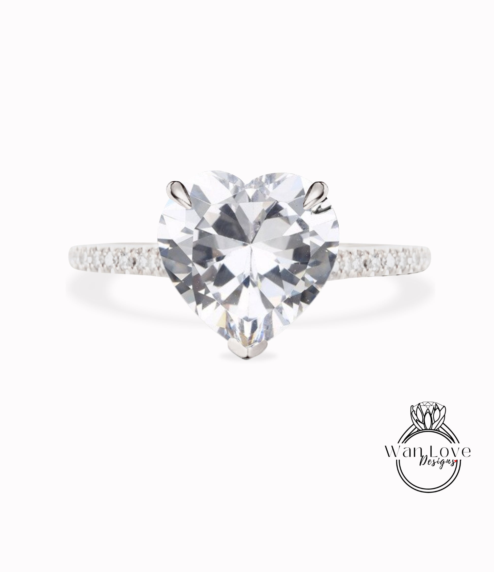 Heart cut White Sapphire Ring Heart Shaped Celebrity Engagement Ring 14k white Gold Ring Women Anniversary Gift Ring Bridal Gift Ring