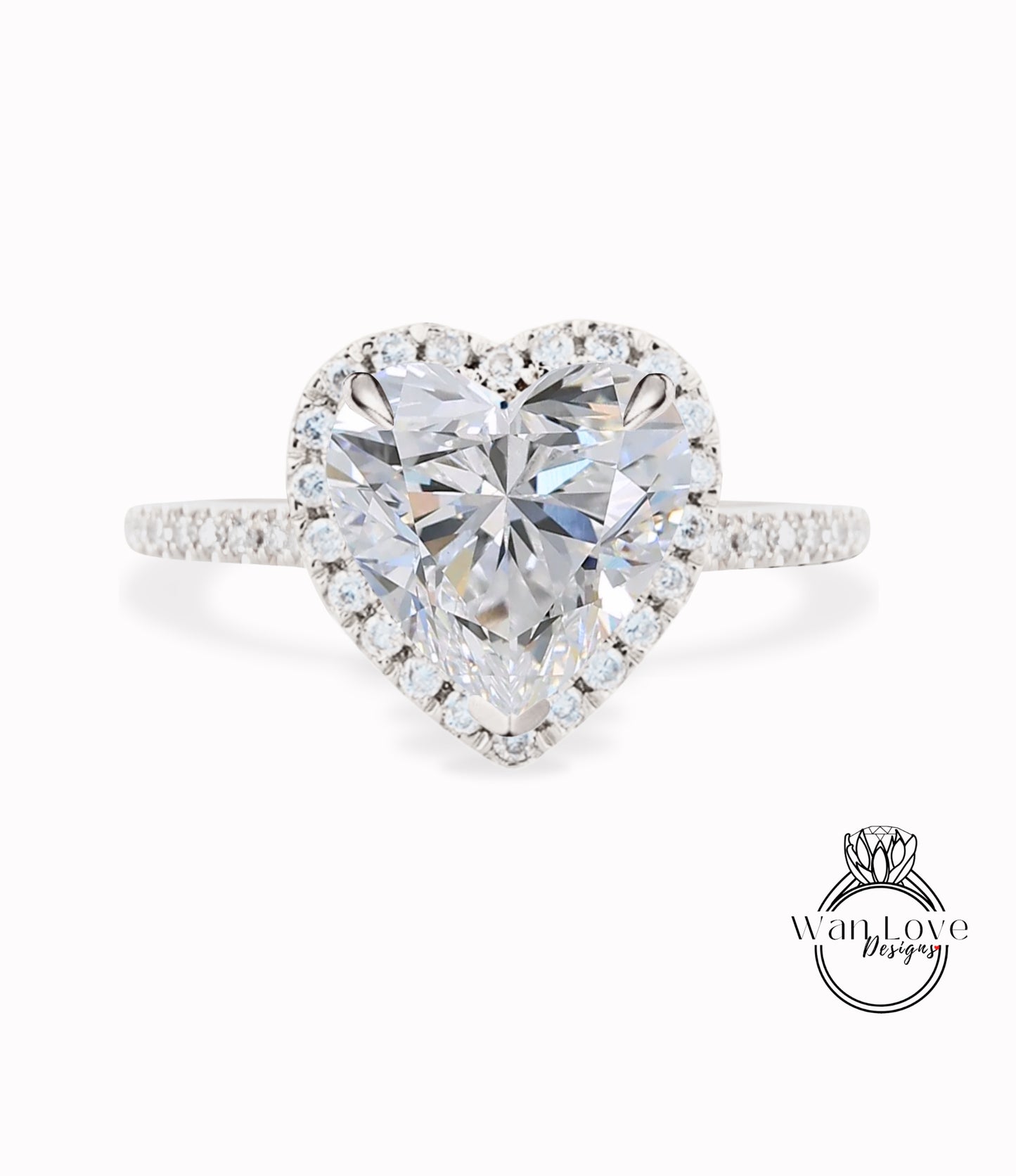 Heart Diamond Halo engagement ring unique diamond halo ring half eternity vintage art deco 14K/18K white gold ring anniversary promise ring
