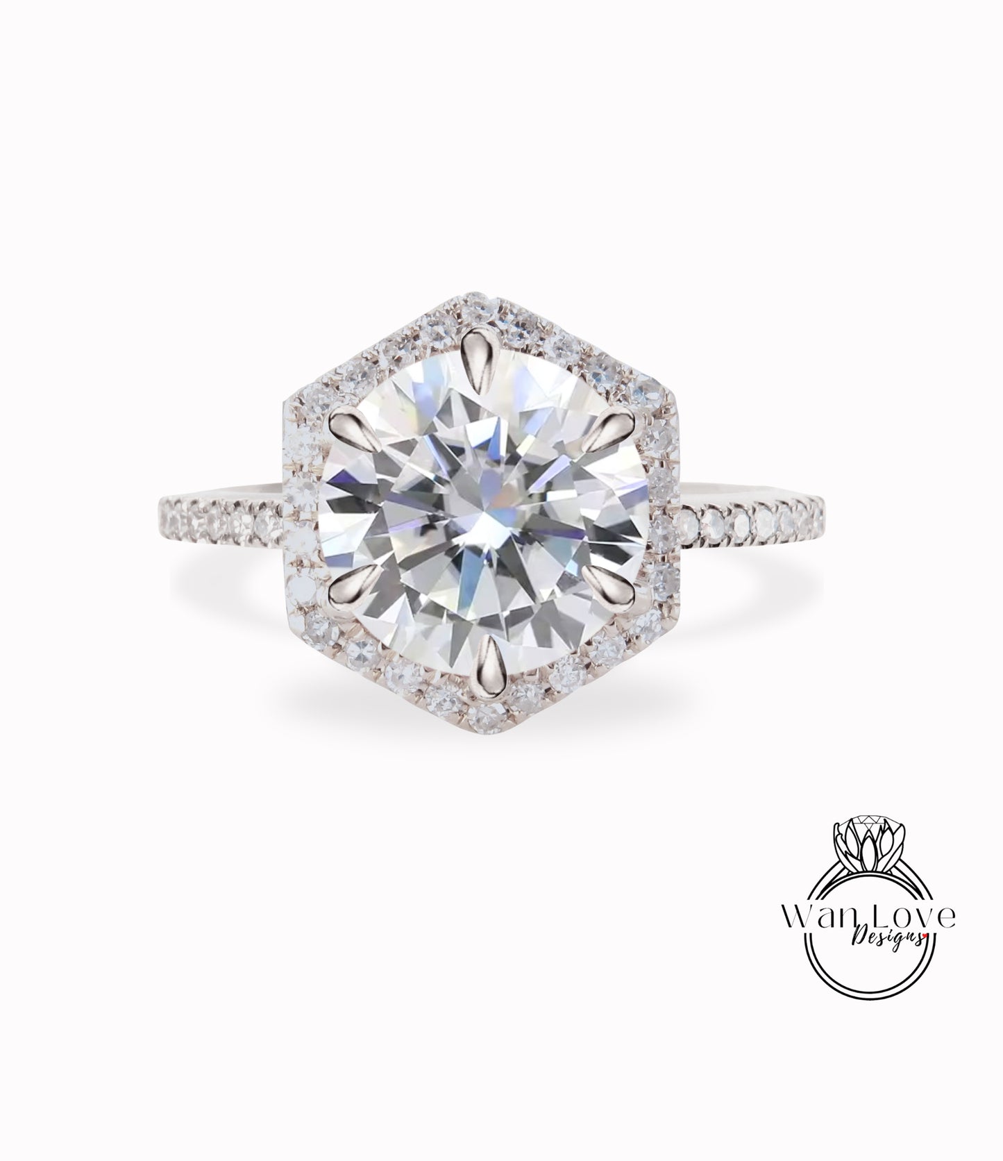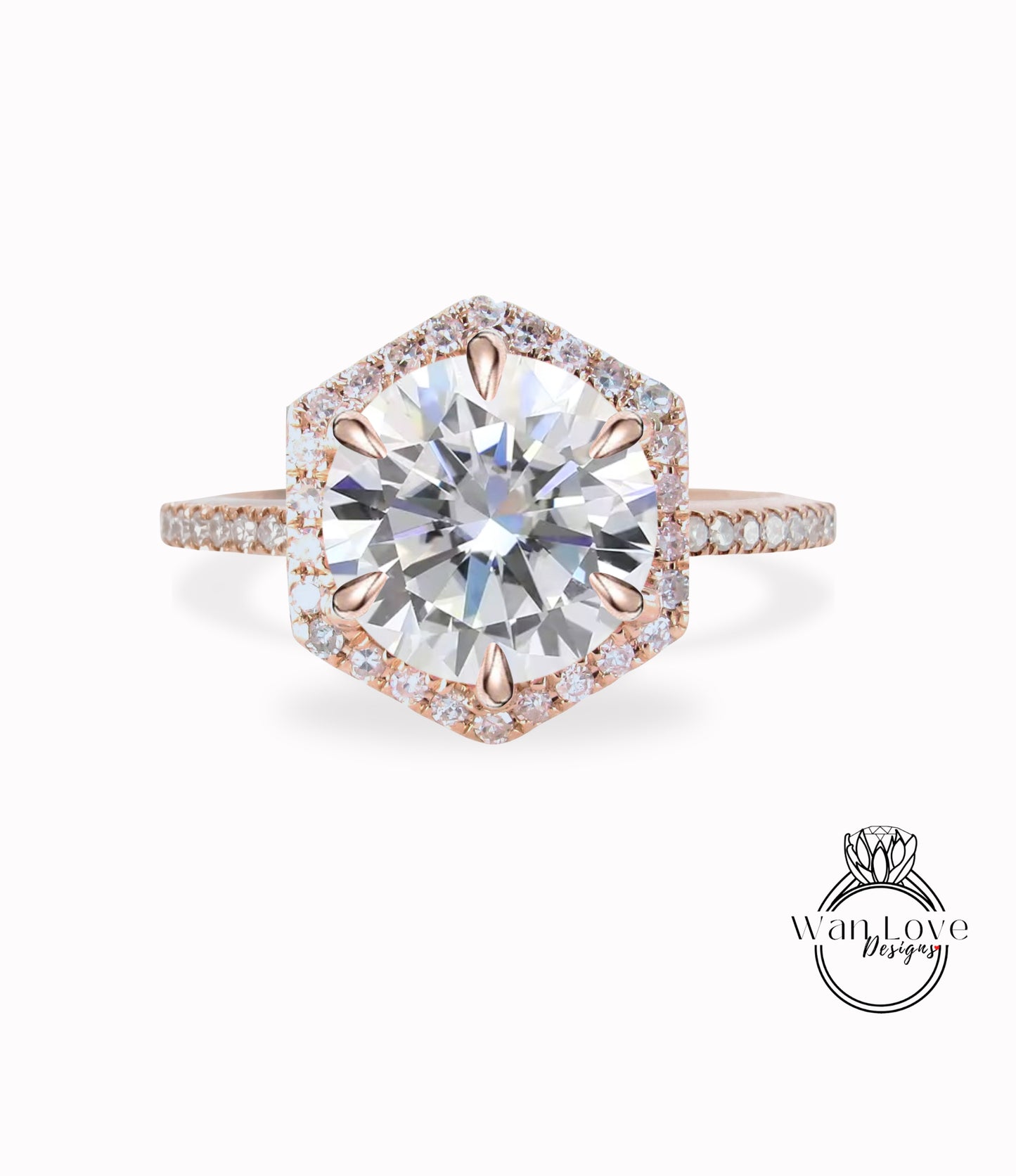 Hexagon Halo Diamond engagement ring Certified Round diamond ring half eternity vintage art deco rose gold ring anniversary promise ring