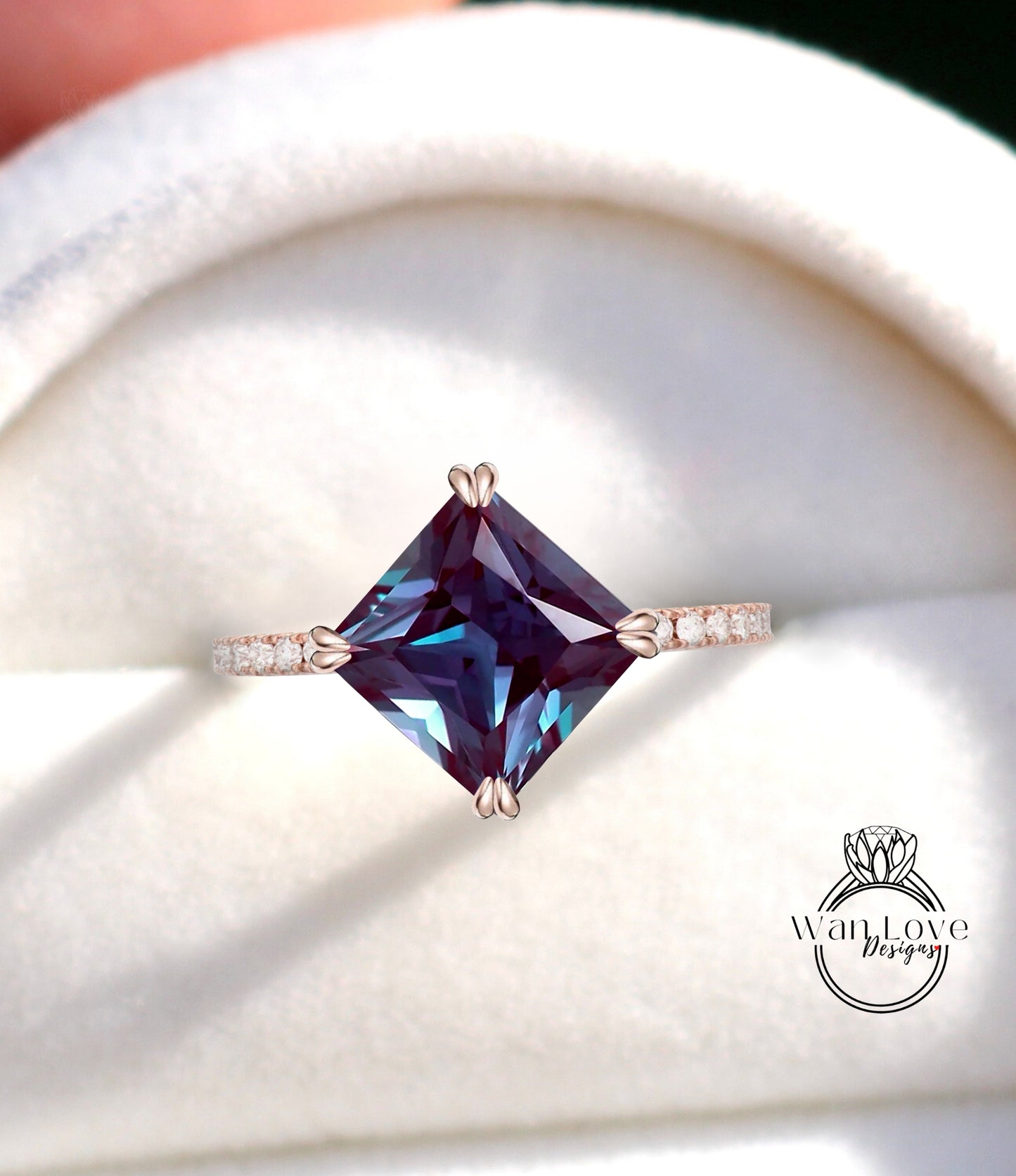 Kite Alexandrite Ring Alexandrite Princess Diamond Ring Geometric Engagement Ring Color Change Engagement Ring Kite Moissanite Gemstone Ring