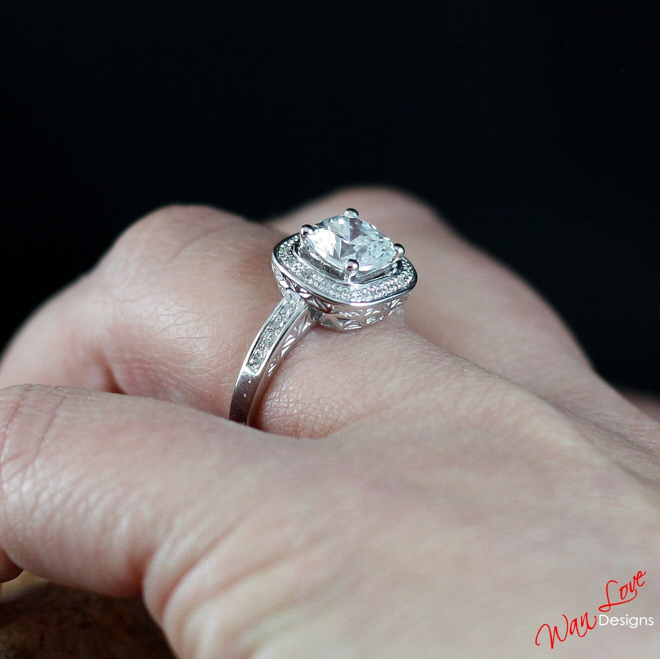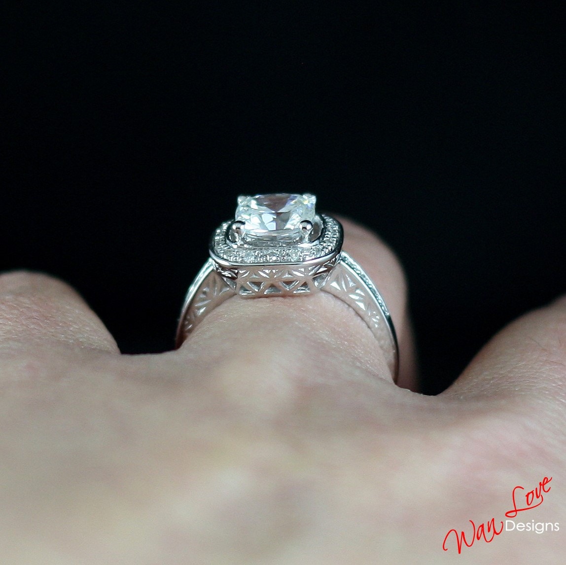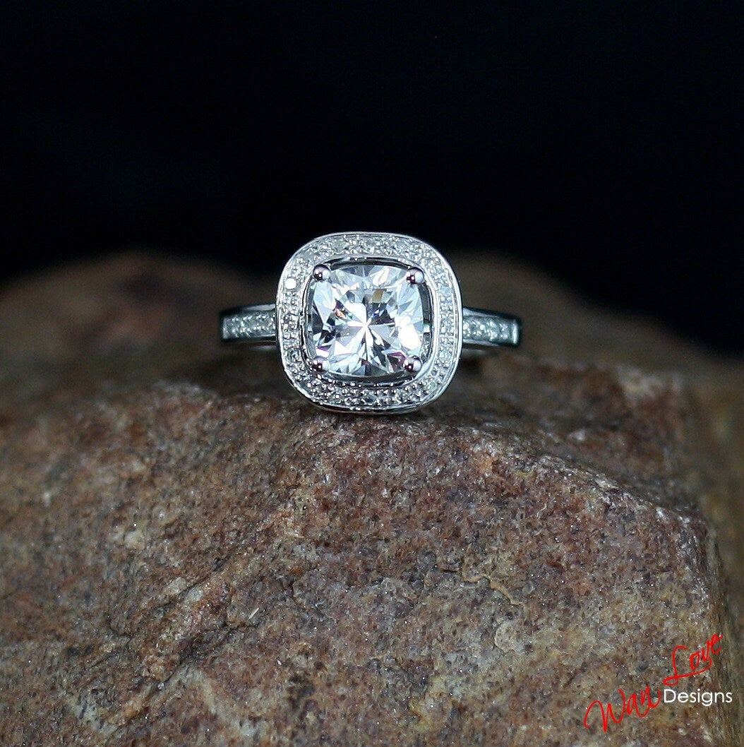 Lab & Natural Diamond Cushion Halo Ring CZ Cubic Zirconia Antique Filigree Engagement Ring 2ct 7mm Wedding Anniversary Gift Ready to ship.
