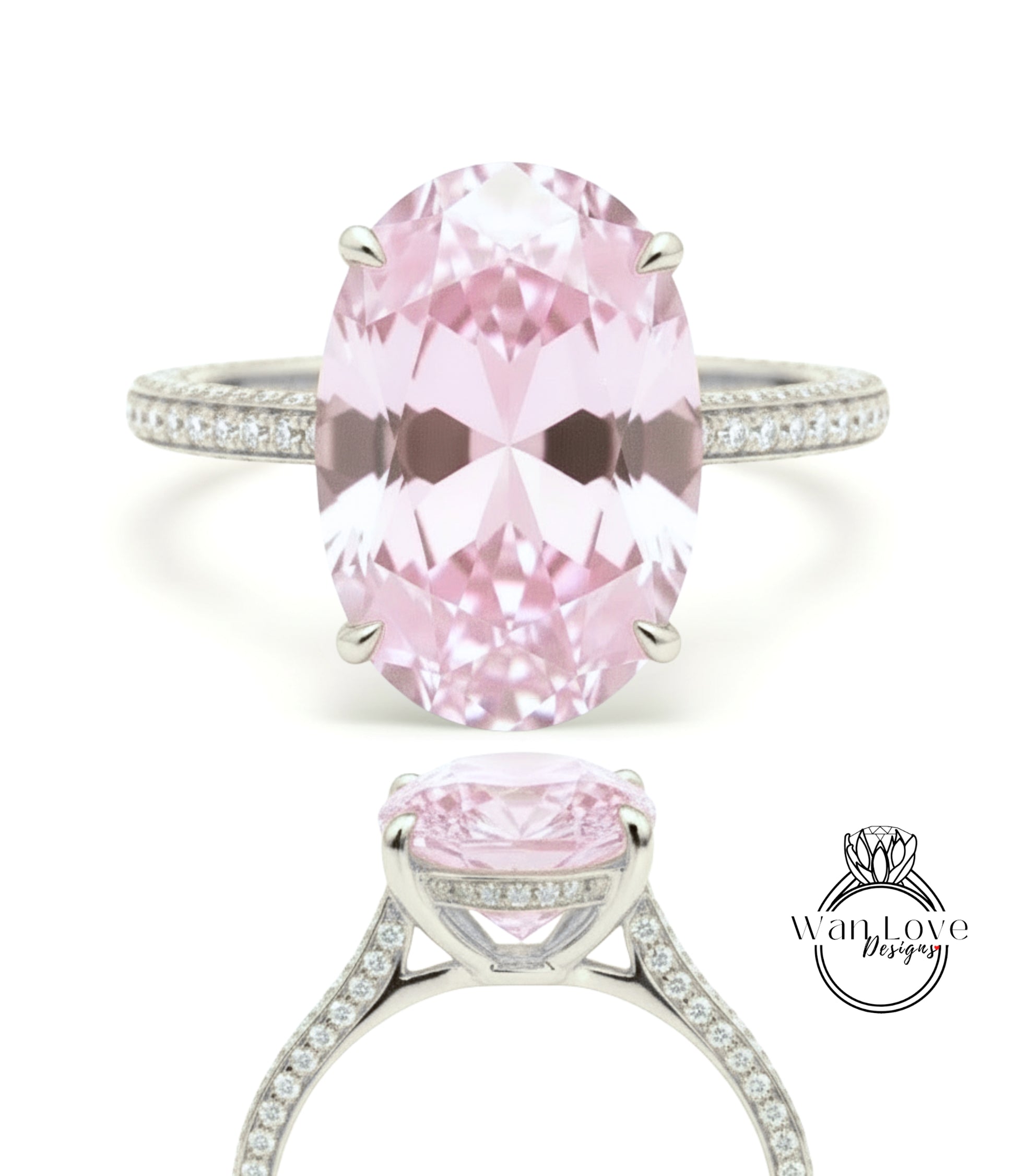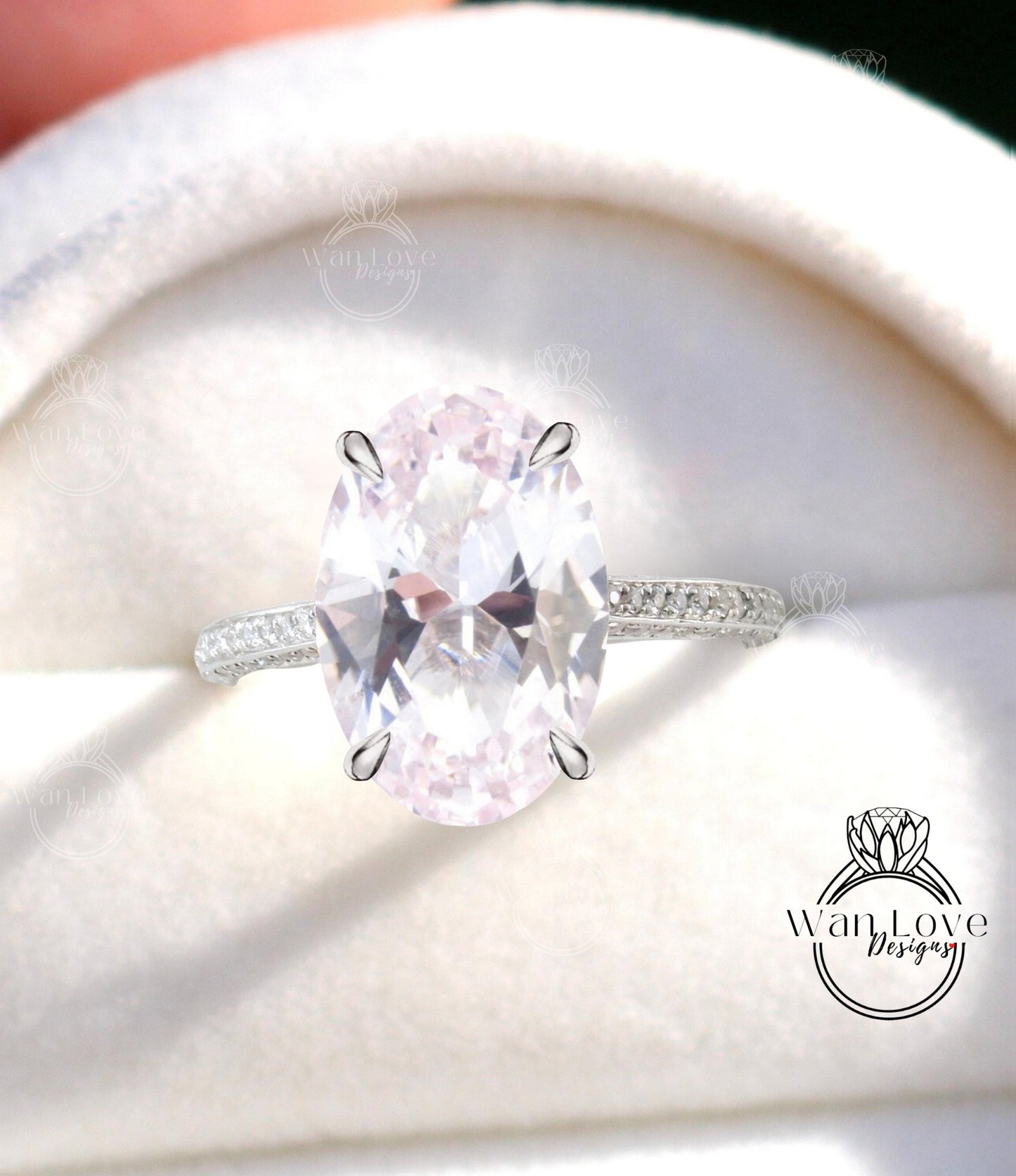 Oval cut Light Pink Sapphire diamond engagement ring art deco 9ct bridal ring antique diamond side hidden halo ring wedding anniversary ring