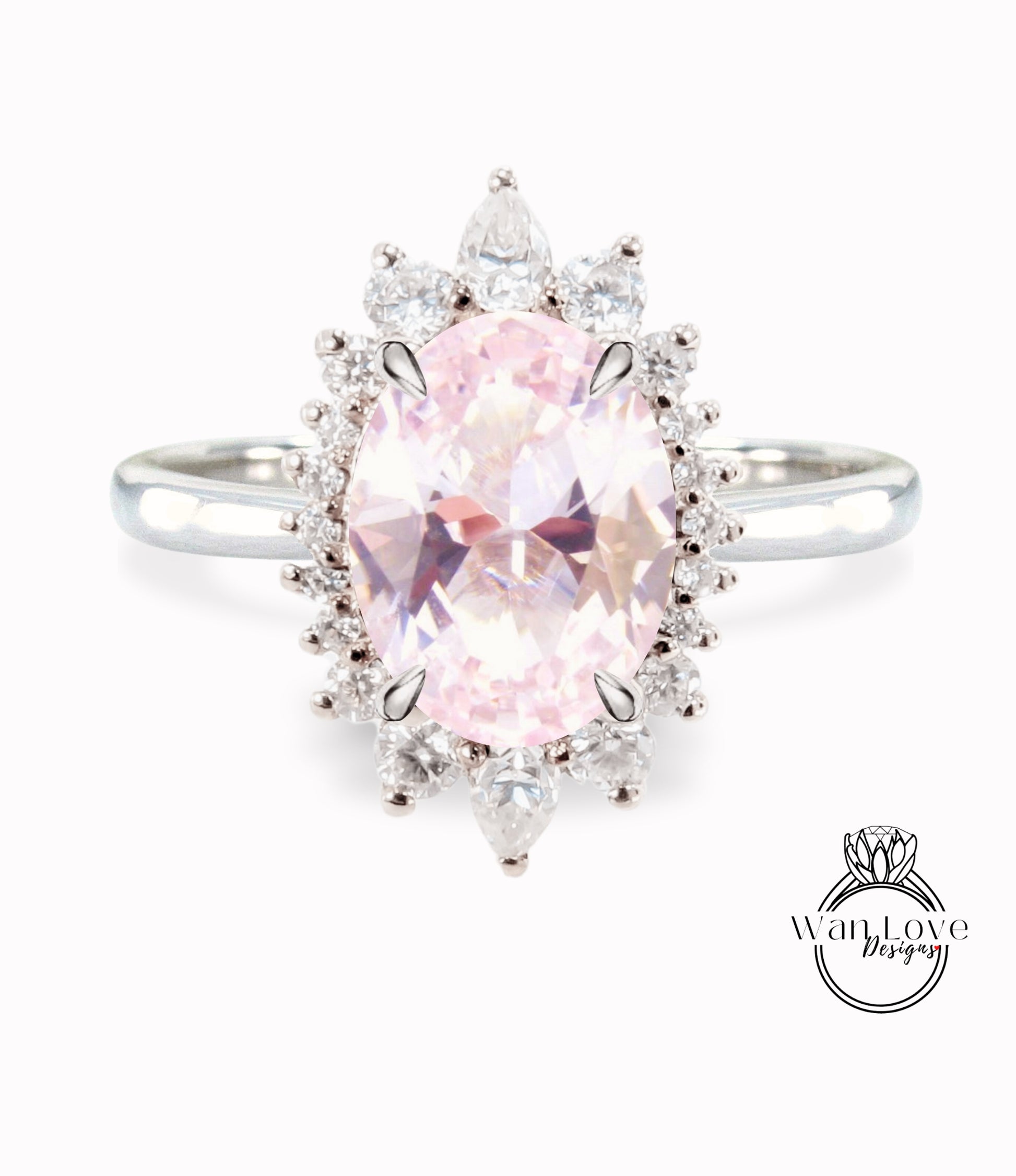 Light Pink Sapphire & Diamond Oval Cluster Halo Engagement Ring, Rose Gold Bridal Wedding Ring, Anniversary Gift
