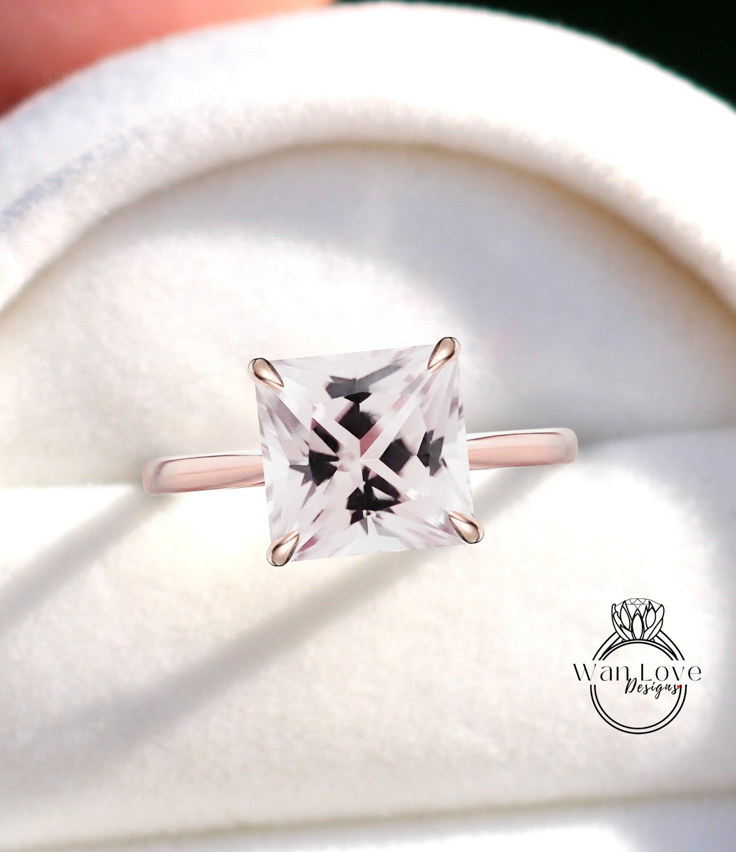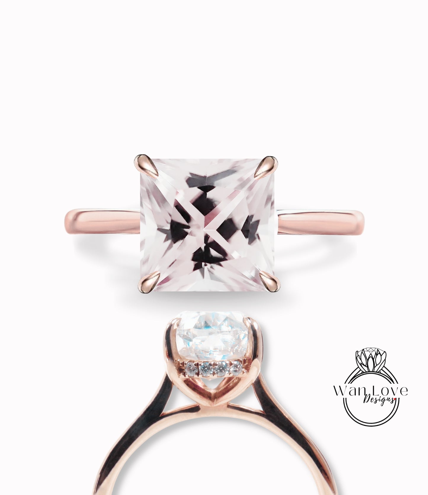 Light Pink Sapphire & Diamond Princess side halo plain band Engagement Ring, Cathedral Basket 14kt 18kt Gold-Platinum-Custom-Wedding, Anniversary Gift