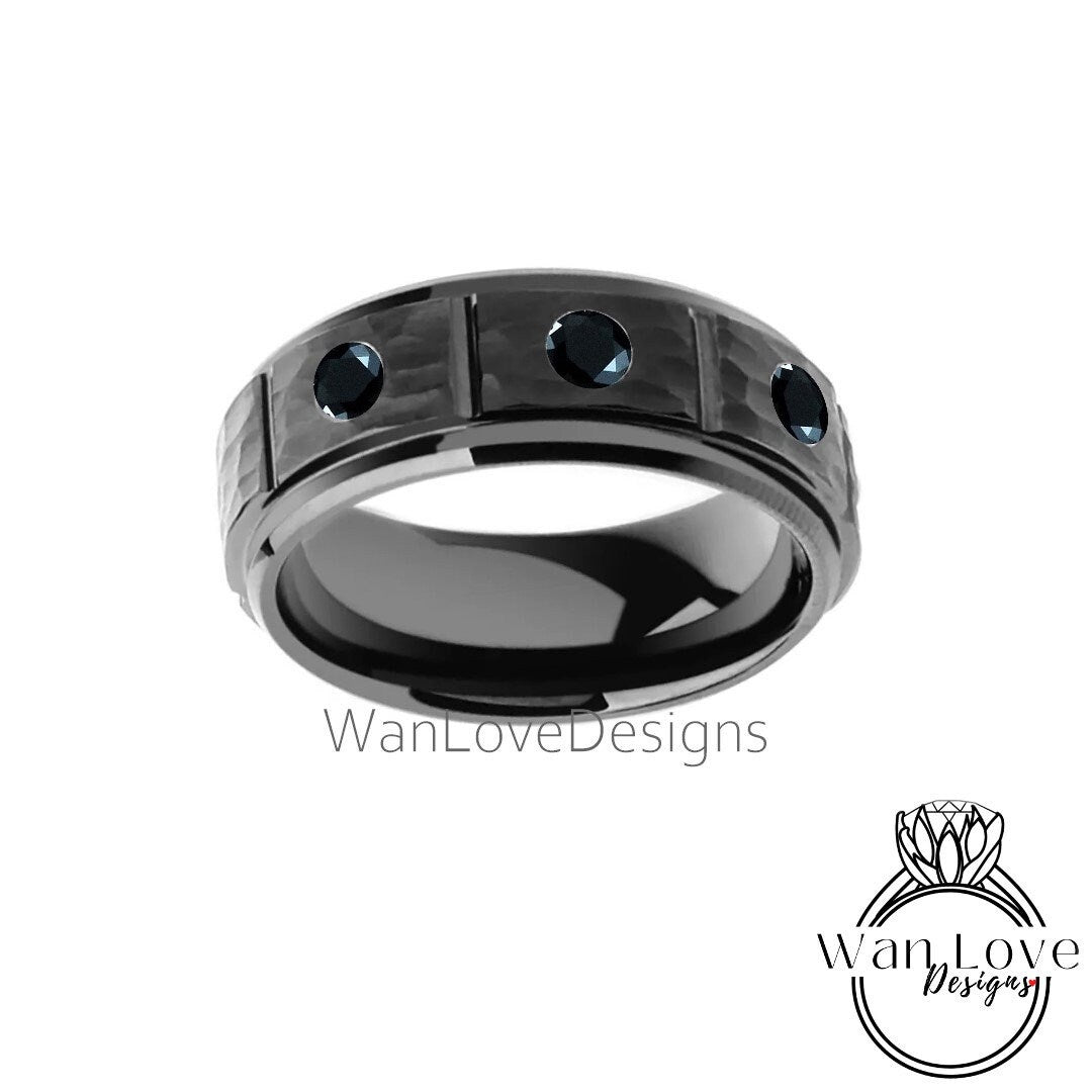 Black Tungsten Moissanite Diamonds Men's Wedding Ring, Grooved Tungsten Wedding Ring, Mens Engagement Ring Birthstone Band, Man Anniversary