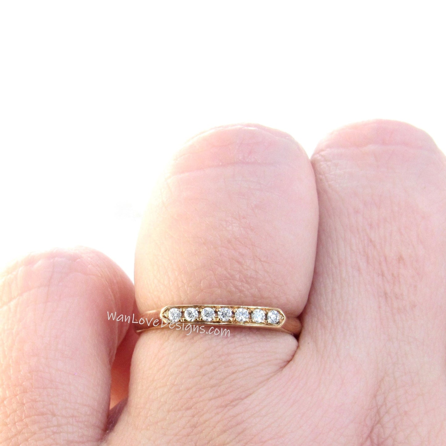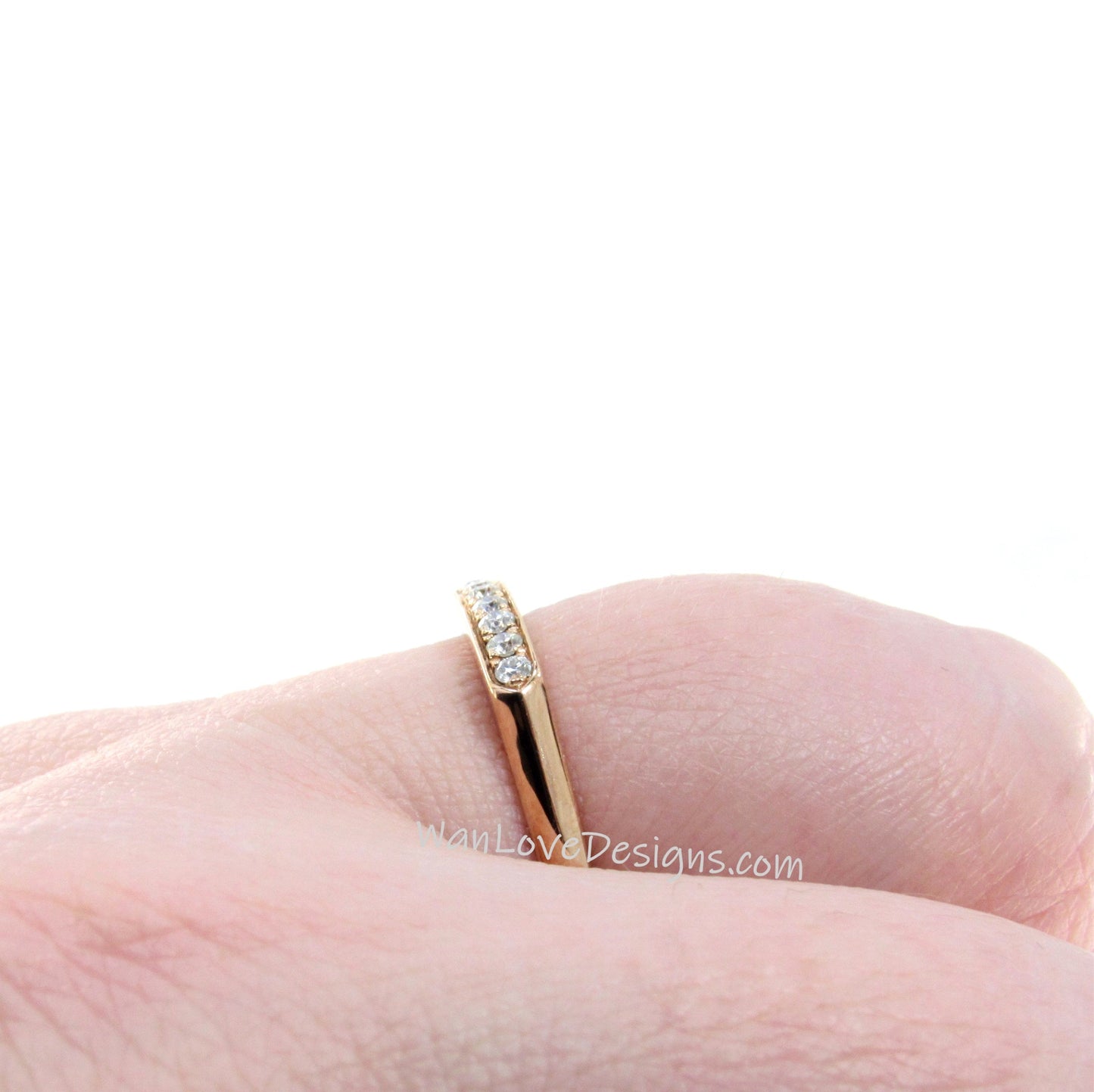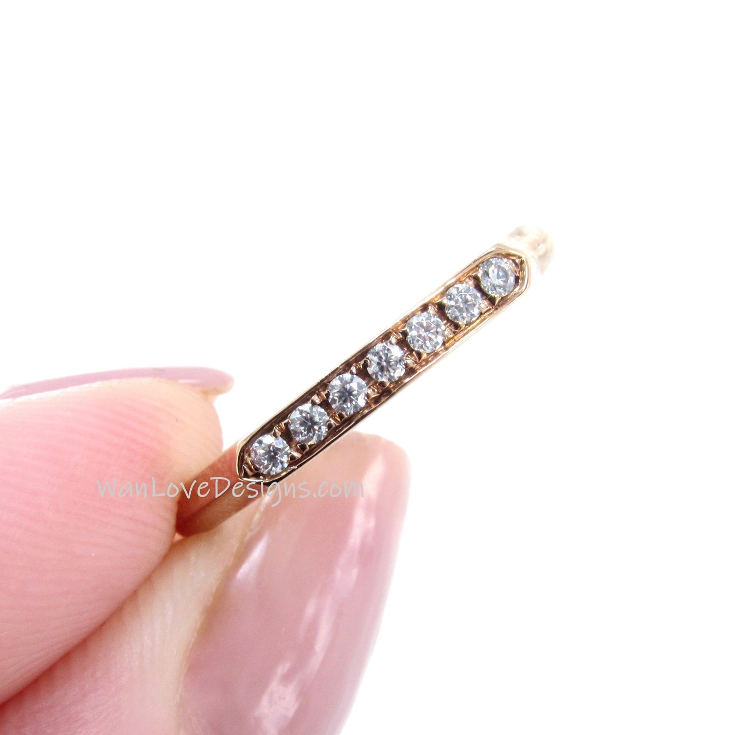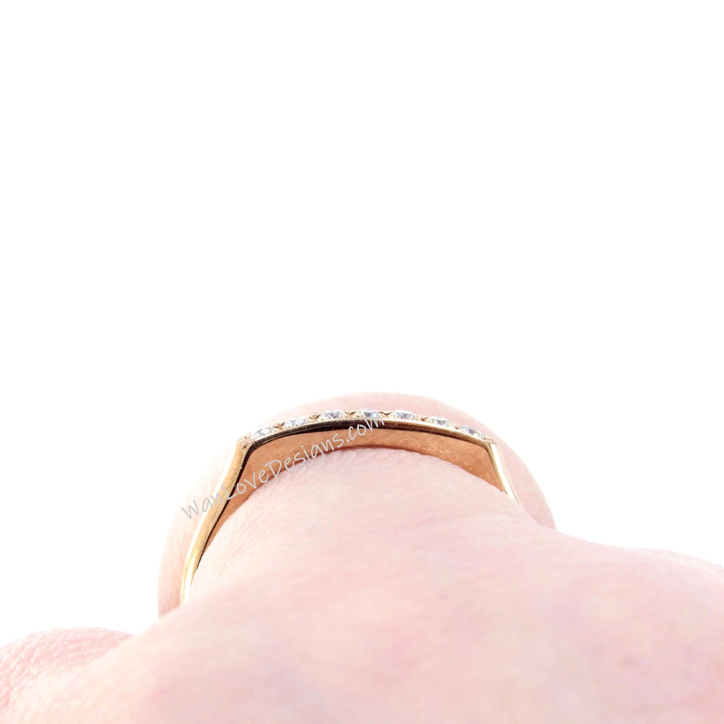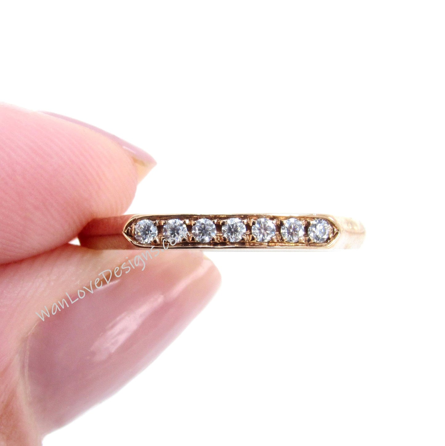 Modern Moissanite Ring, Modern Wedding Band, Rose Gold Moissanite Ring, Flat Top Art Deco Ring with Round Moissanite bridal band-Ready