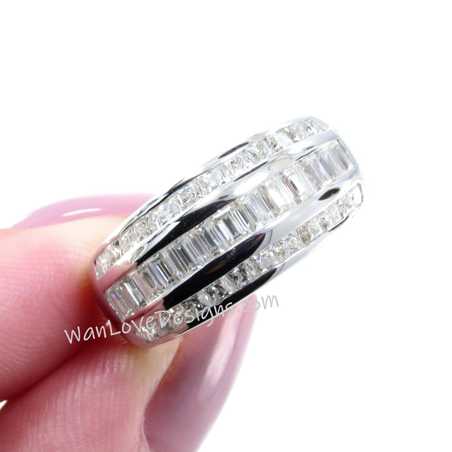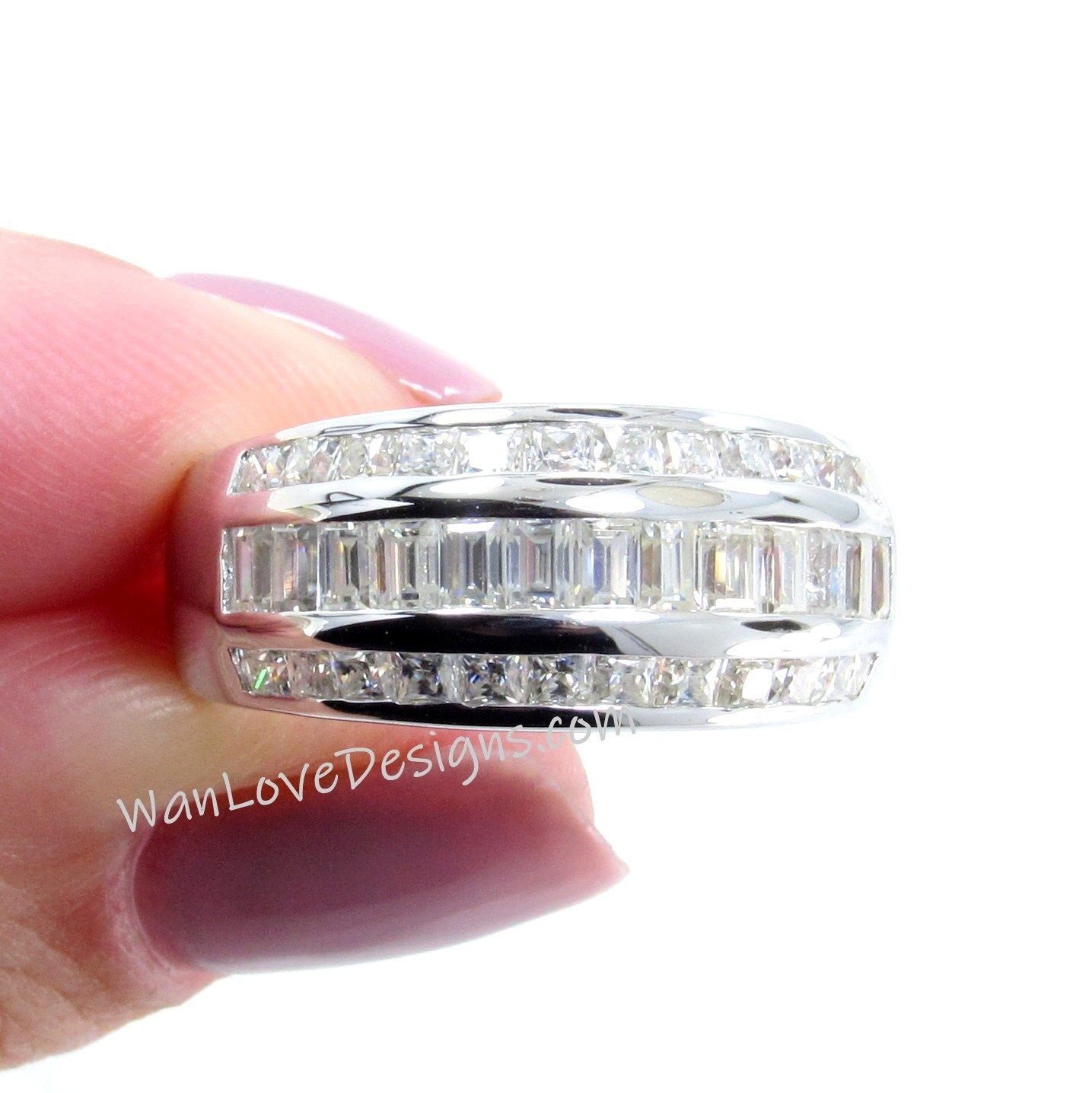 Moissanite Channel set Baguette Princess Wedding Band,Mans Ring,Custom,Engagement,Pinky,White Gold,Commitment,Anniversary Gift-Ready to Ship