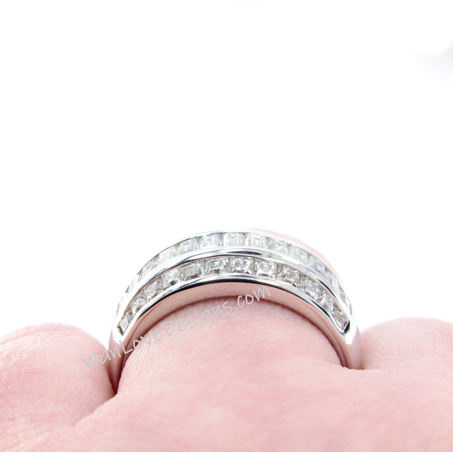 Moissanite Channel set Baguette Princess Wedding Band,Mans Ring,Custom,Engagement,Pinky,White Gold,Commitment,Anniversary Gift-Ready to Ship.
