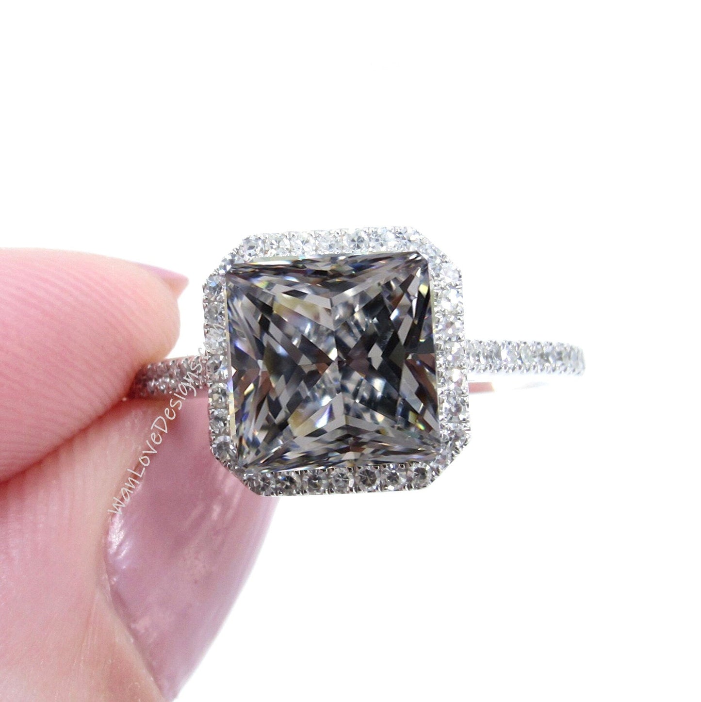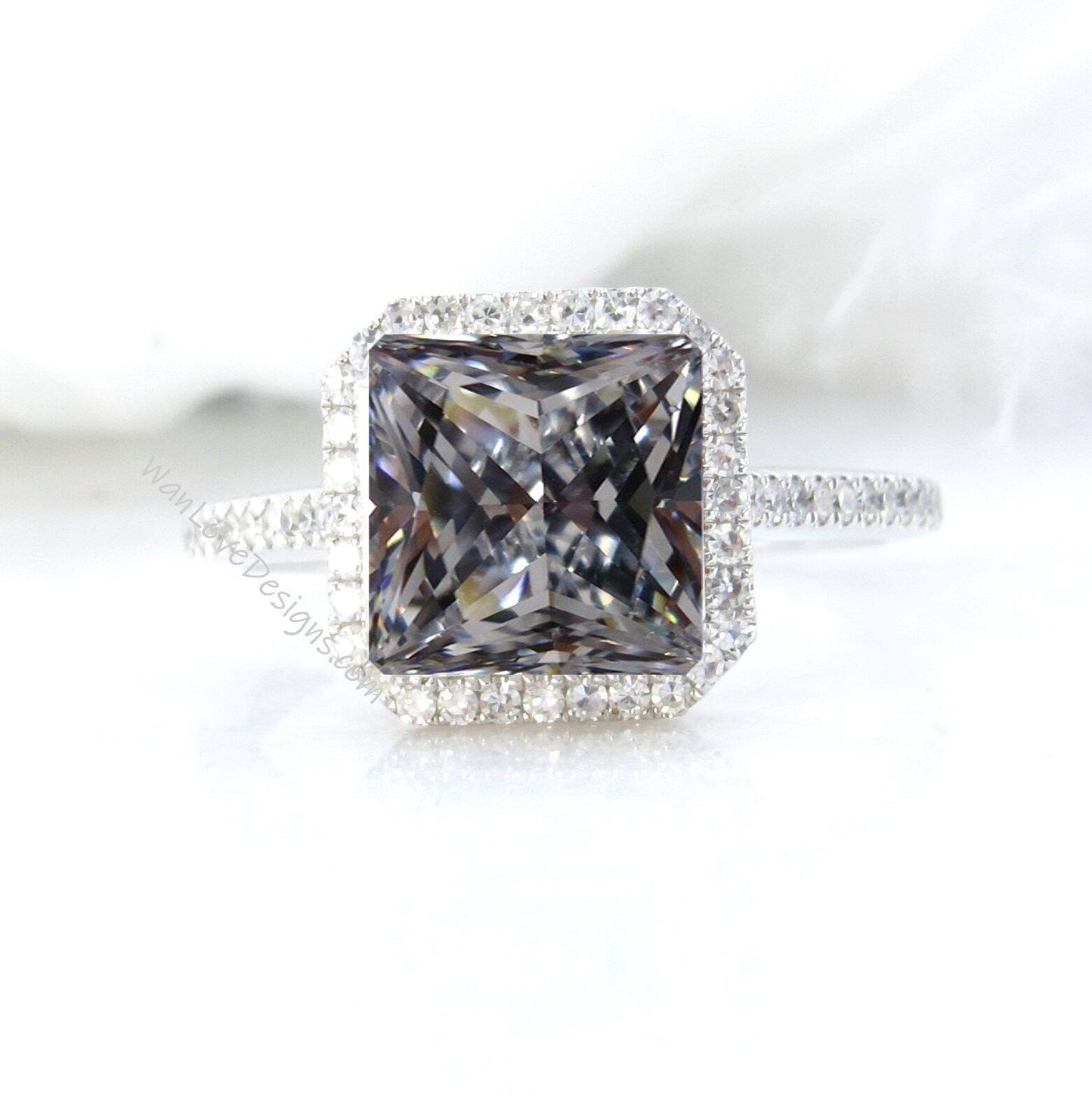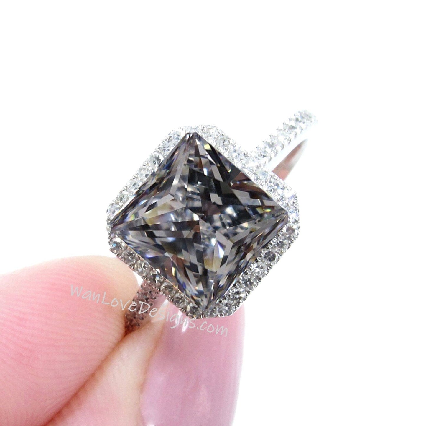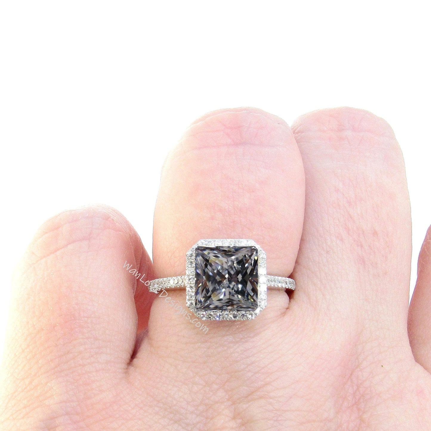 Gray Moissanite Art deco Asscher Engagement Ring white gold Antique diamond halo bridal ring Unique Moissanite wedding Anniversary gift